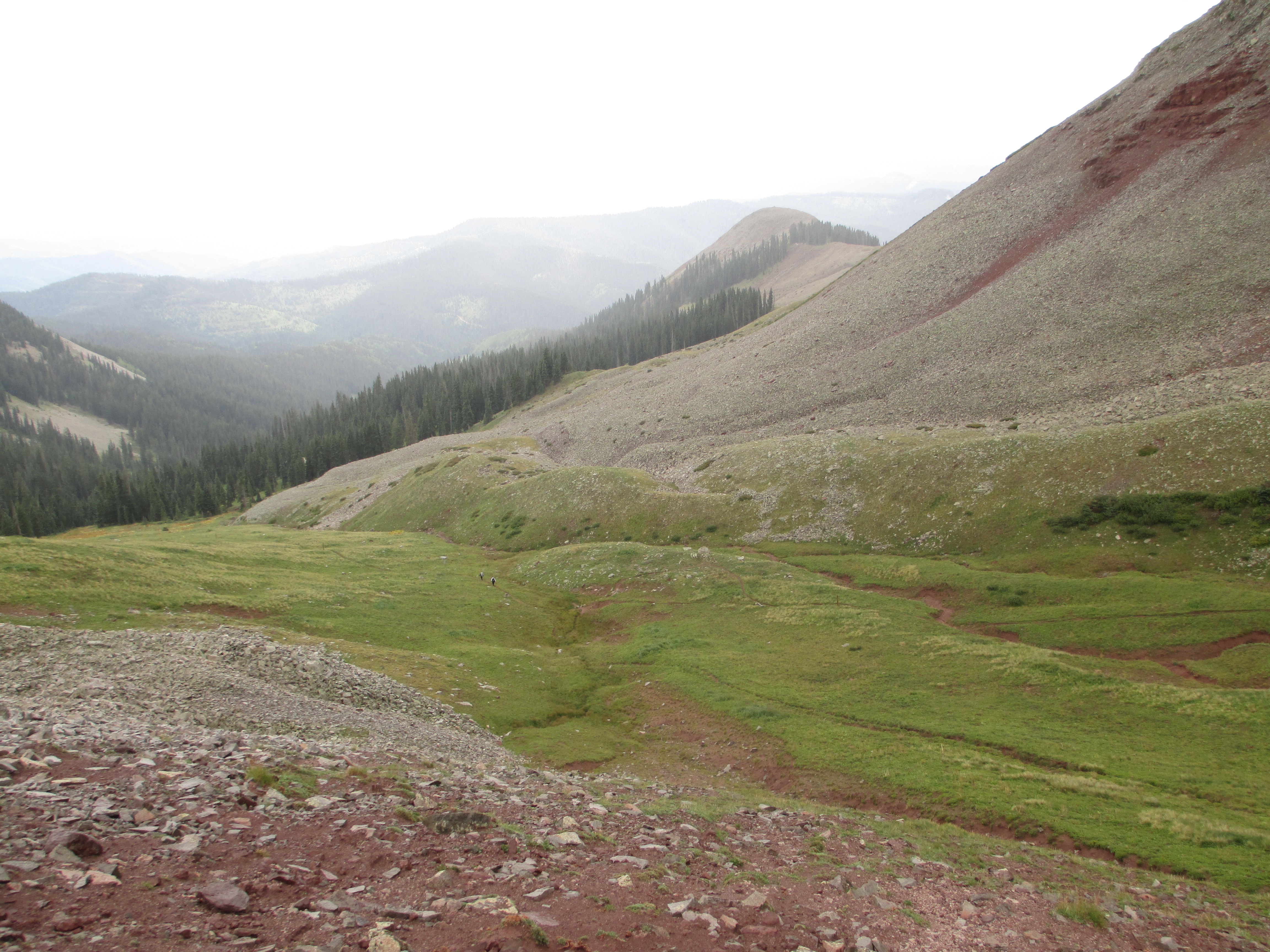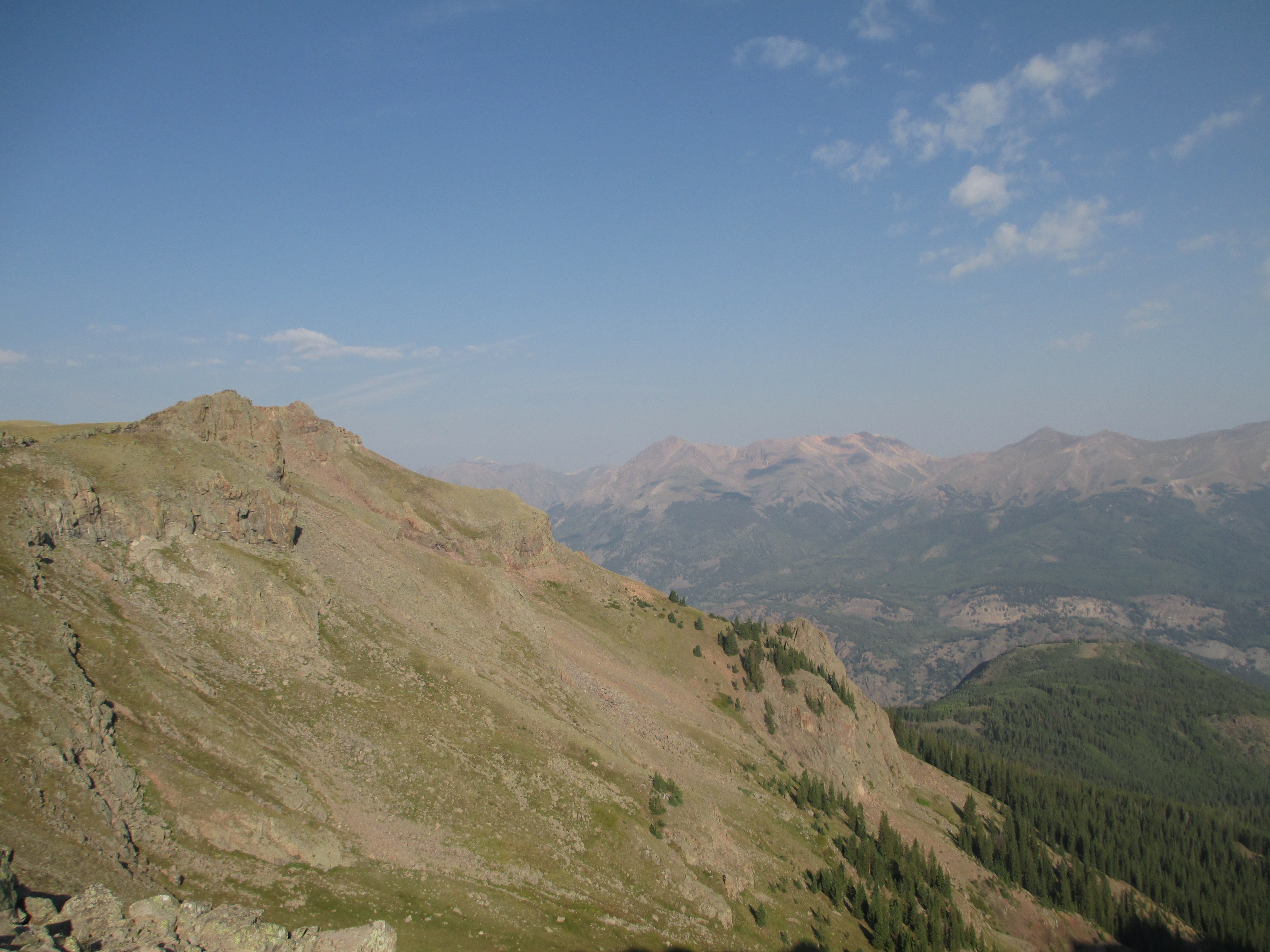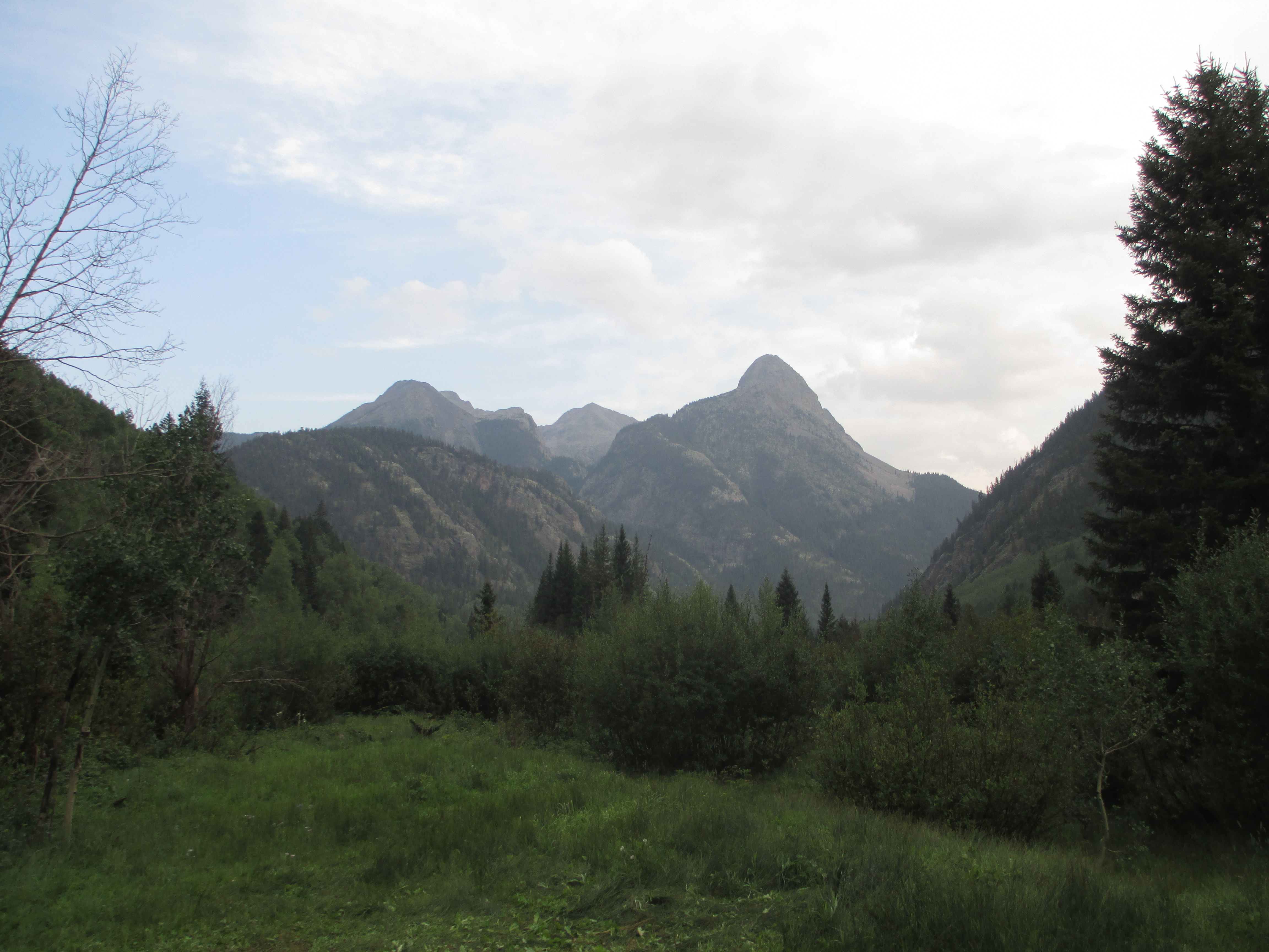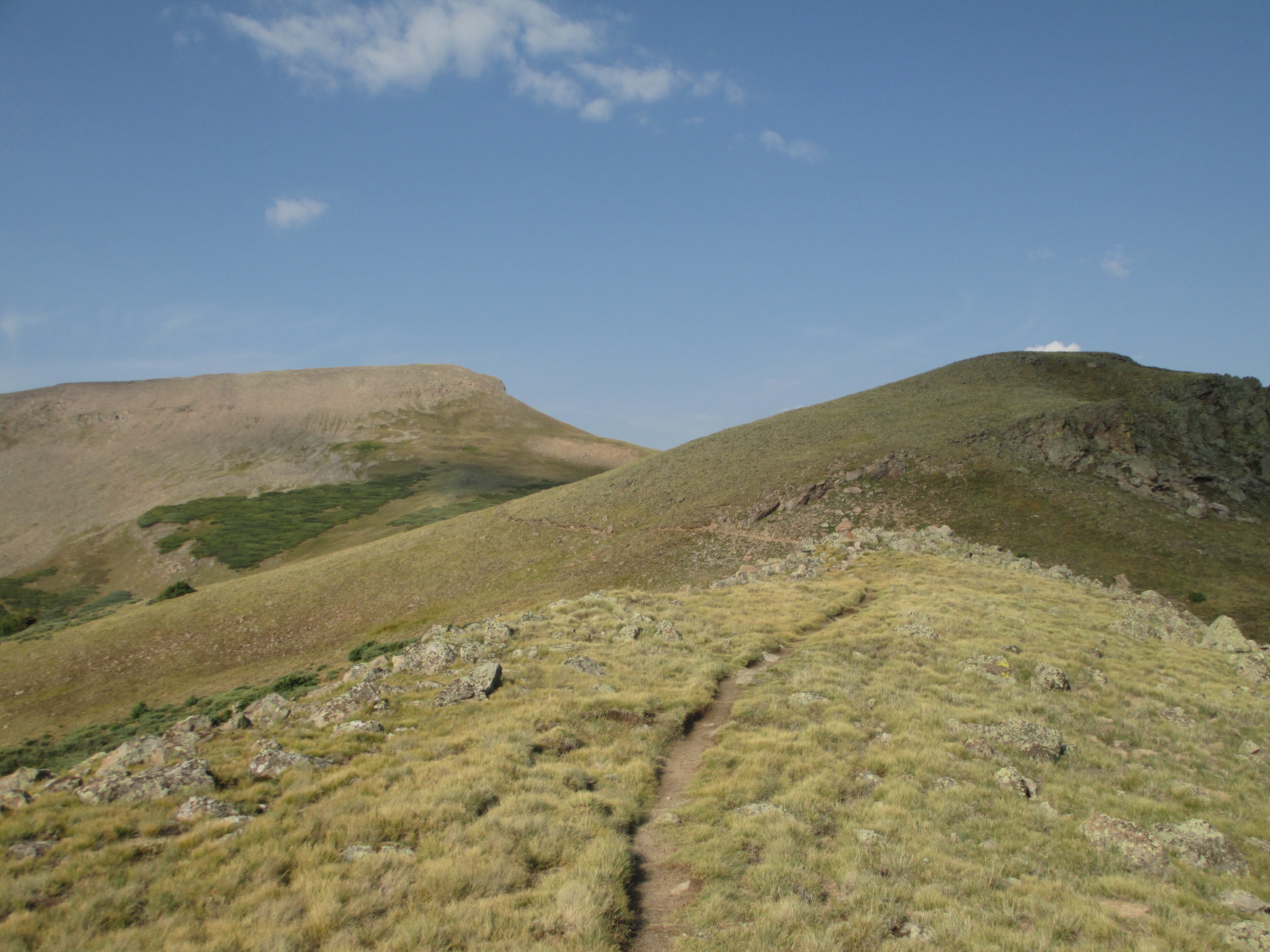 At 1:30, I started up the trail. It was gentle, easy walking to begin with. My pack didn’t even feel heavy and I felt like I had plenty of time. The views weren’t the best, but I could see San Luis peak behind me.