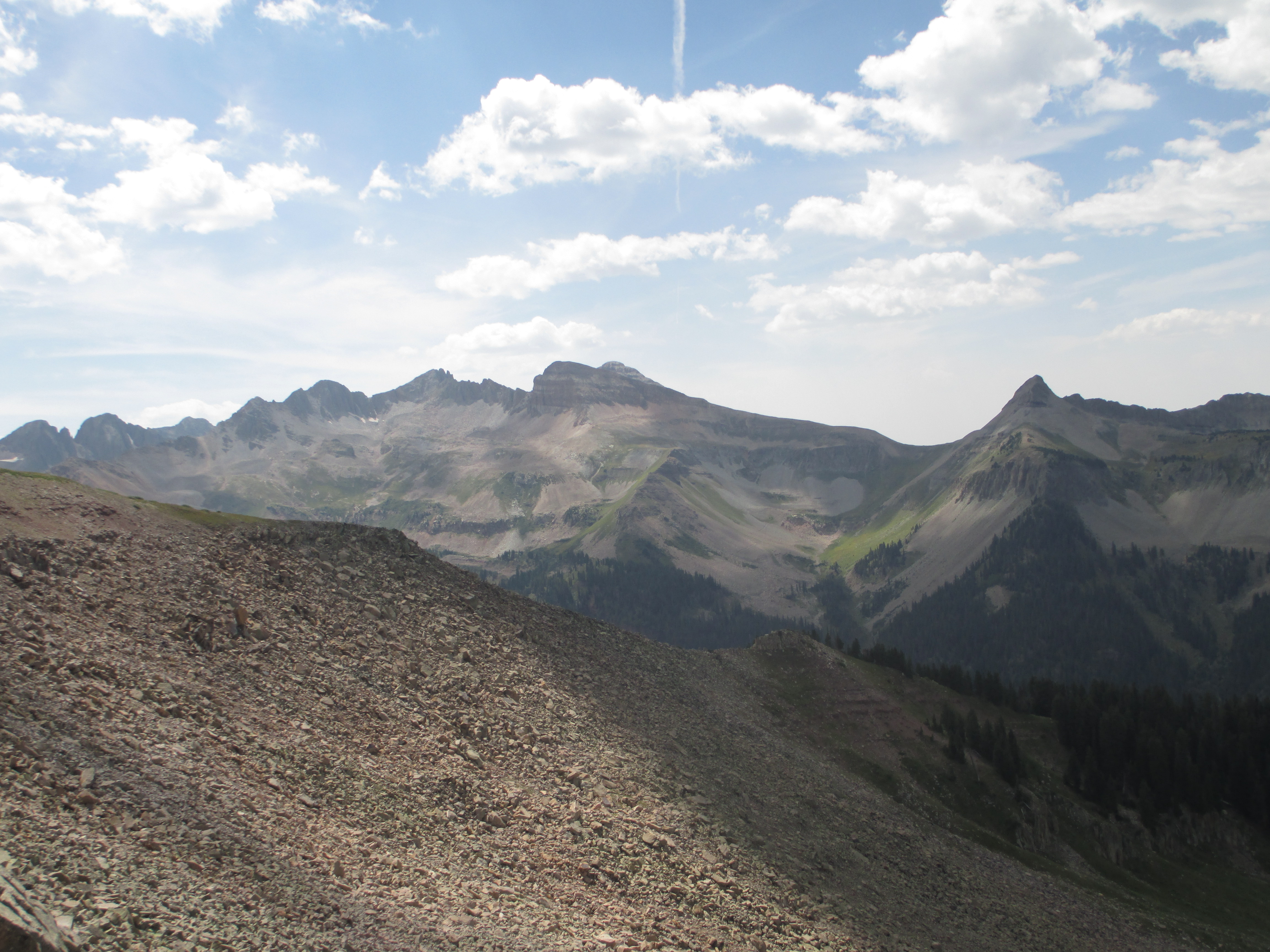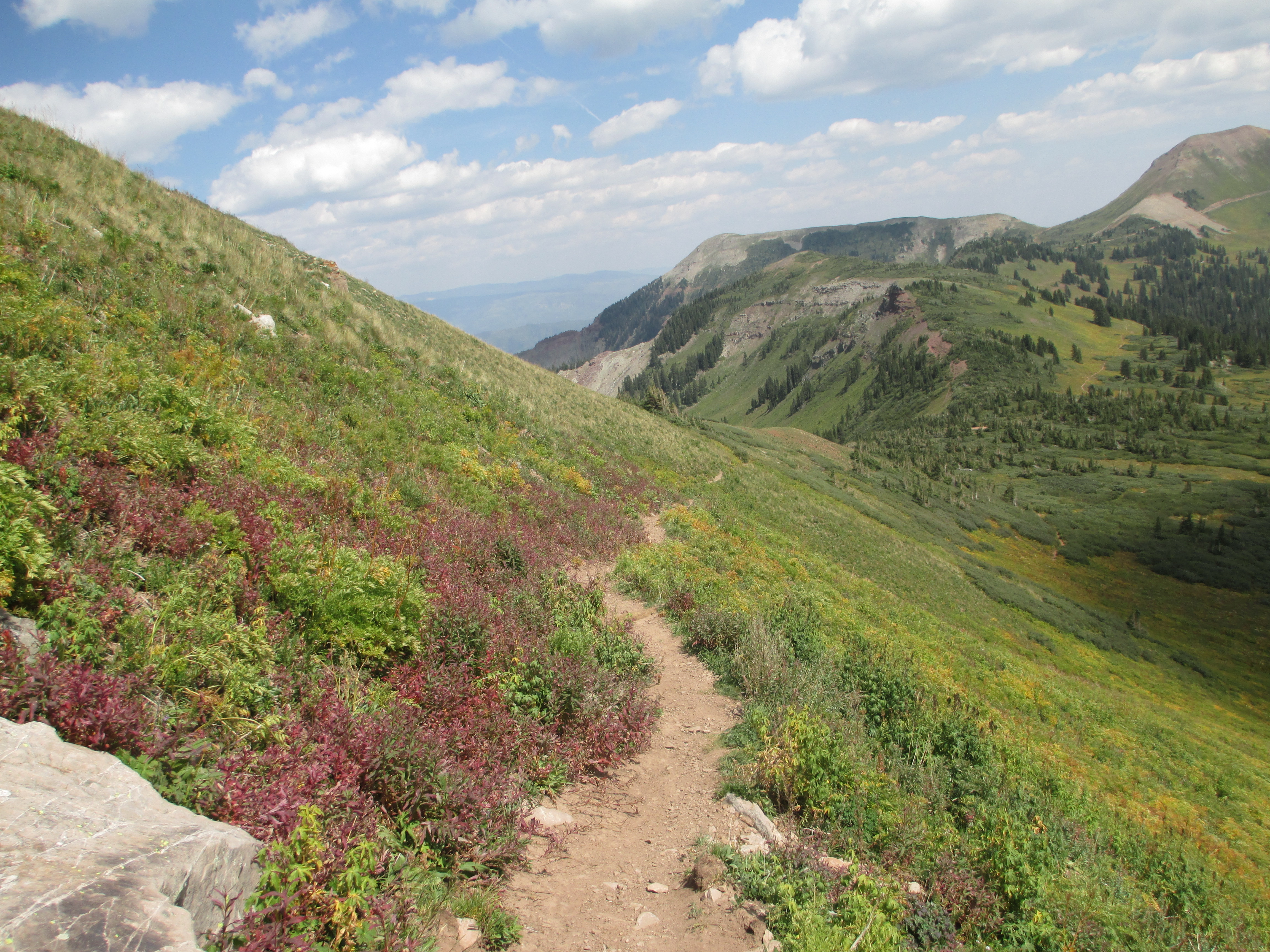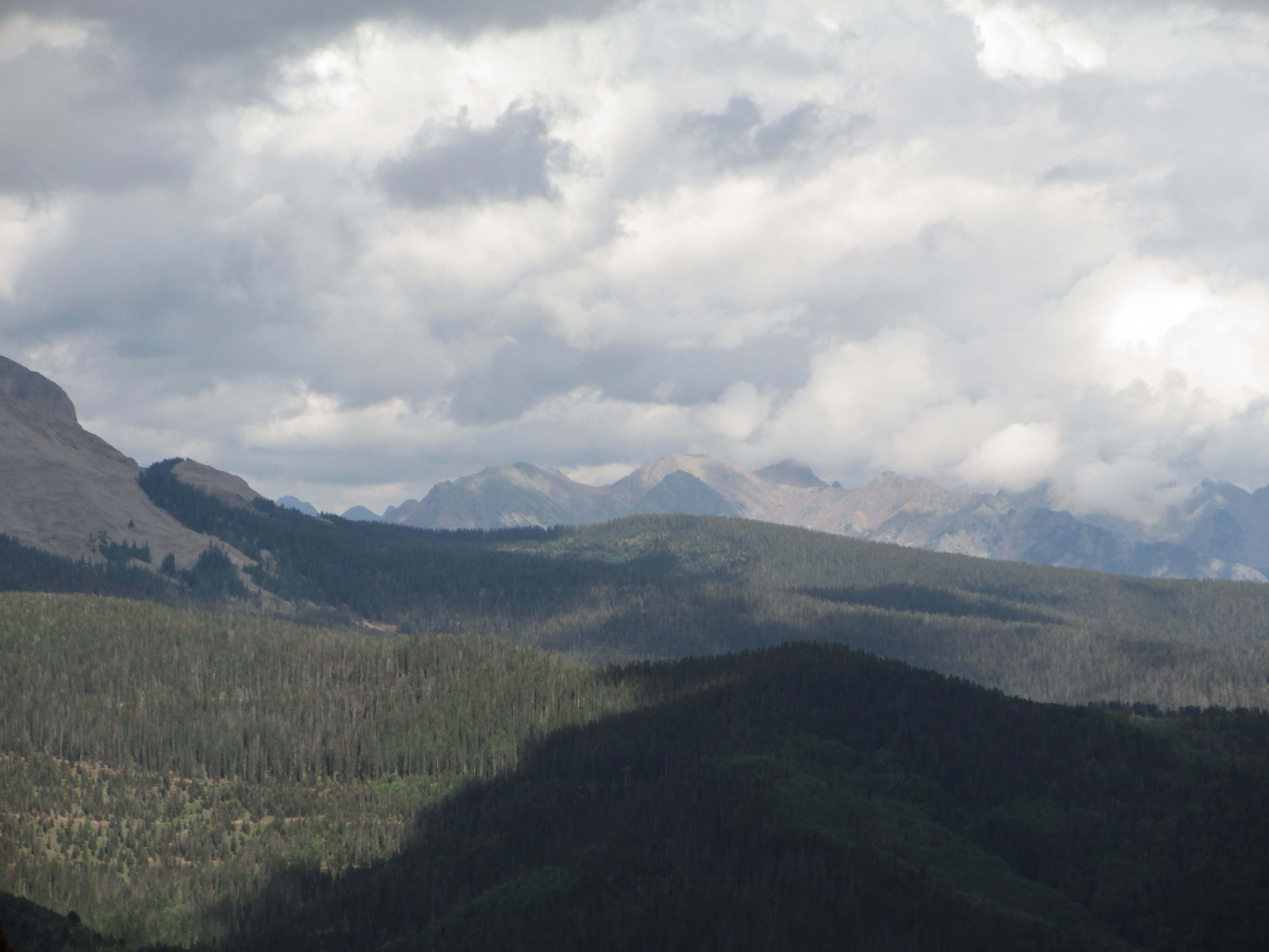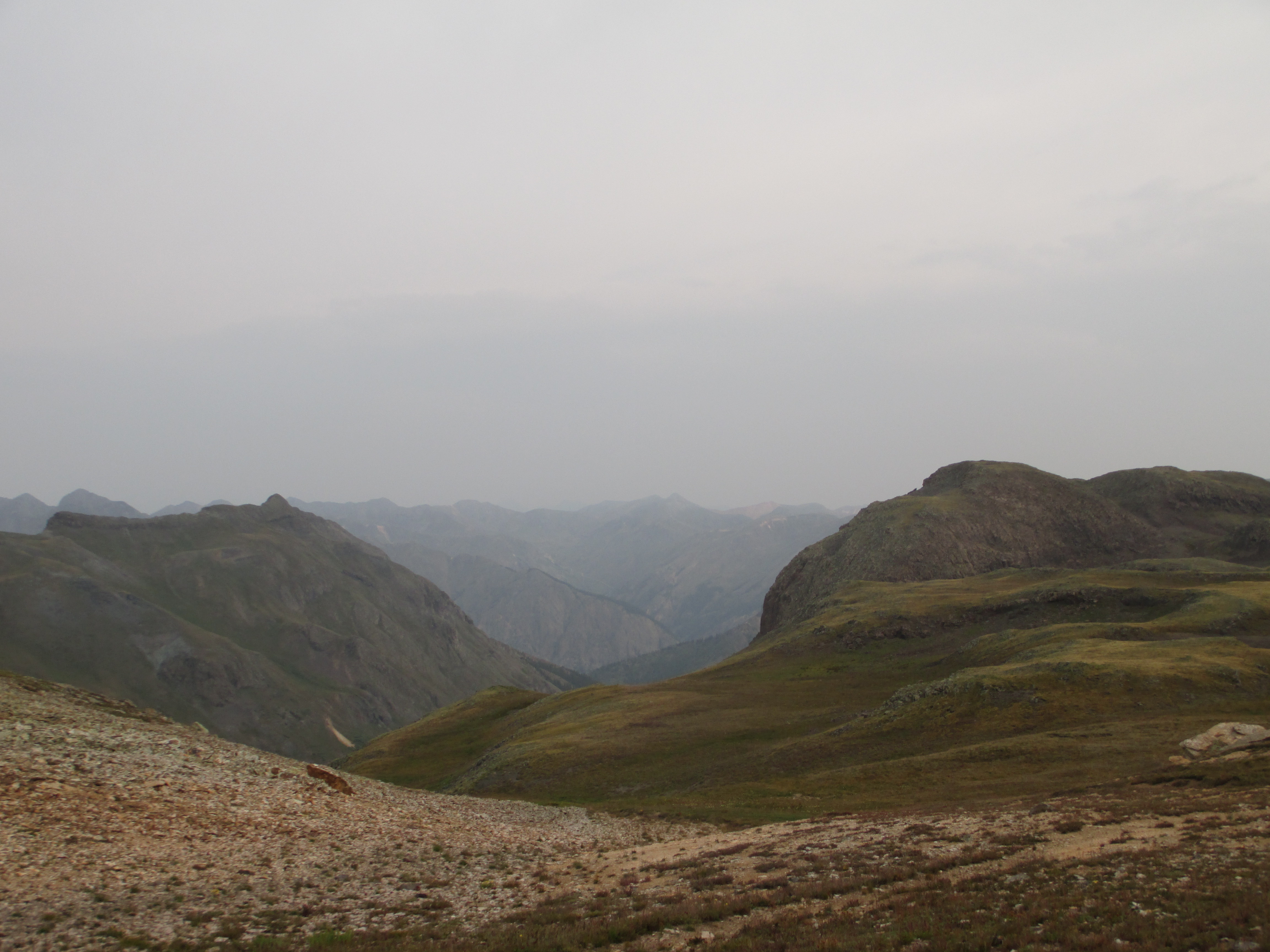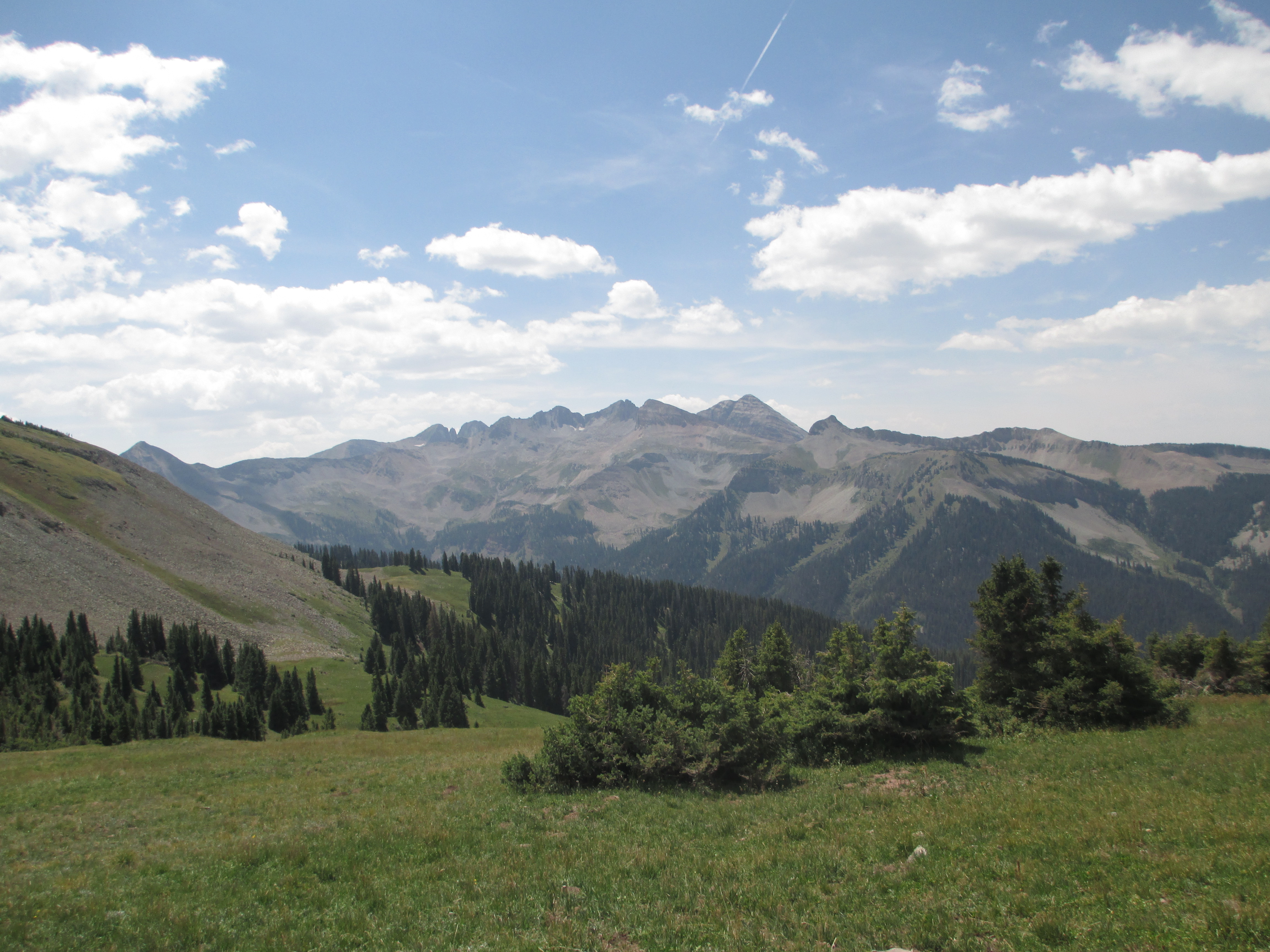 At 1:30, I started up the trail. It was gentle, easy walking to begin with. My pack didn’t even feel heavy and I felt like I had plenty of time. The views weren’t the best, but I could see San Luis peak behind me.