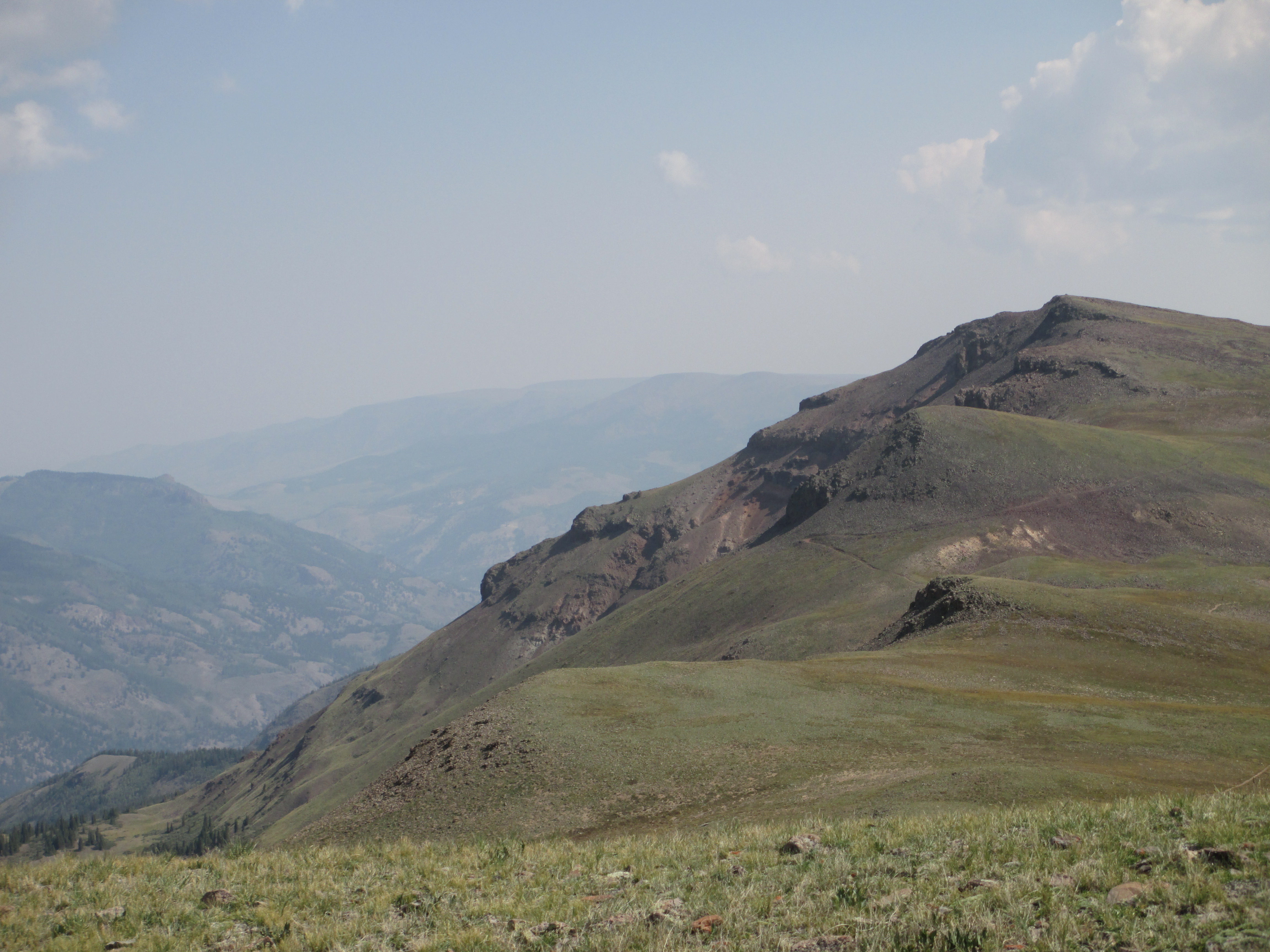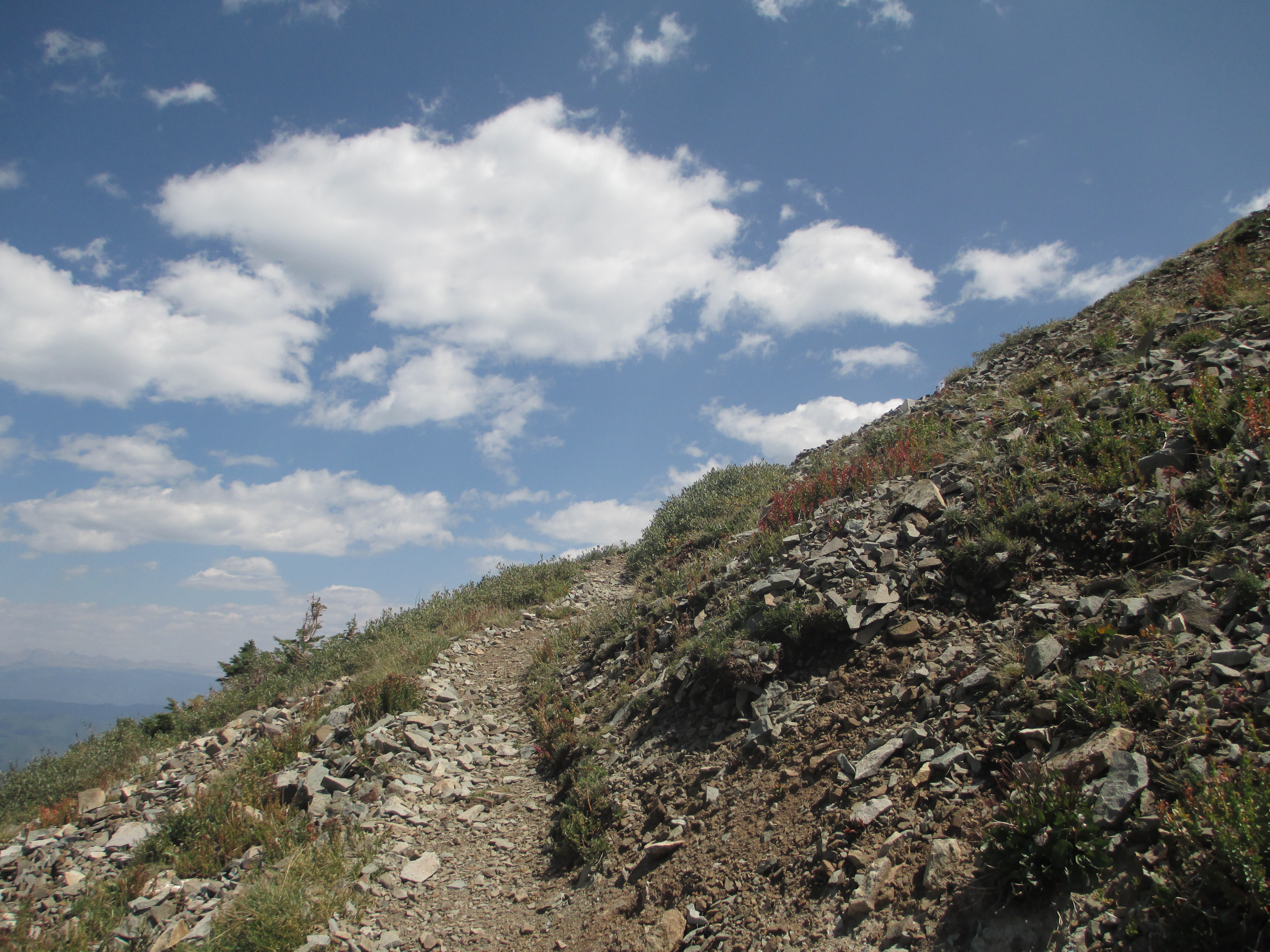 At one point, I heard a man’s voice, which surprised me, especially since I saw no one. Later, I saw two backpackers ahead of me, climbing the switchbacks. I scared two more grouse and saw a weasel on top of some rocks! It was so cute! It was too quick for me to get a picture, though. The sight of a new animal made me very happy.