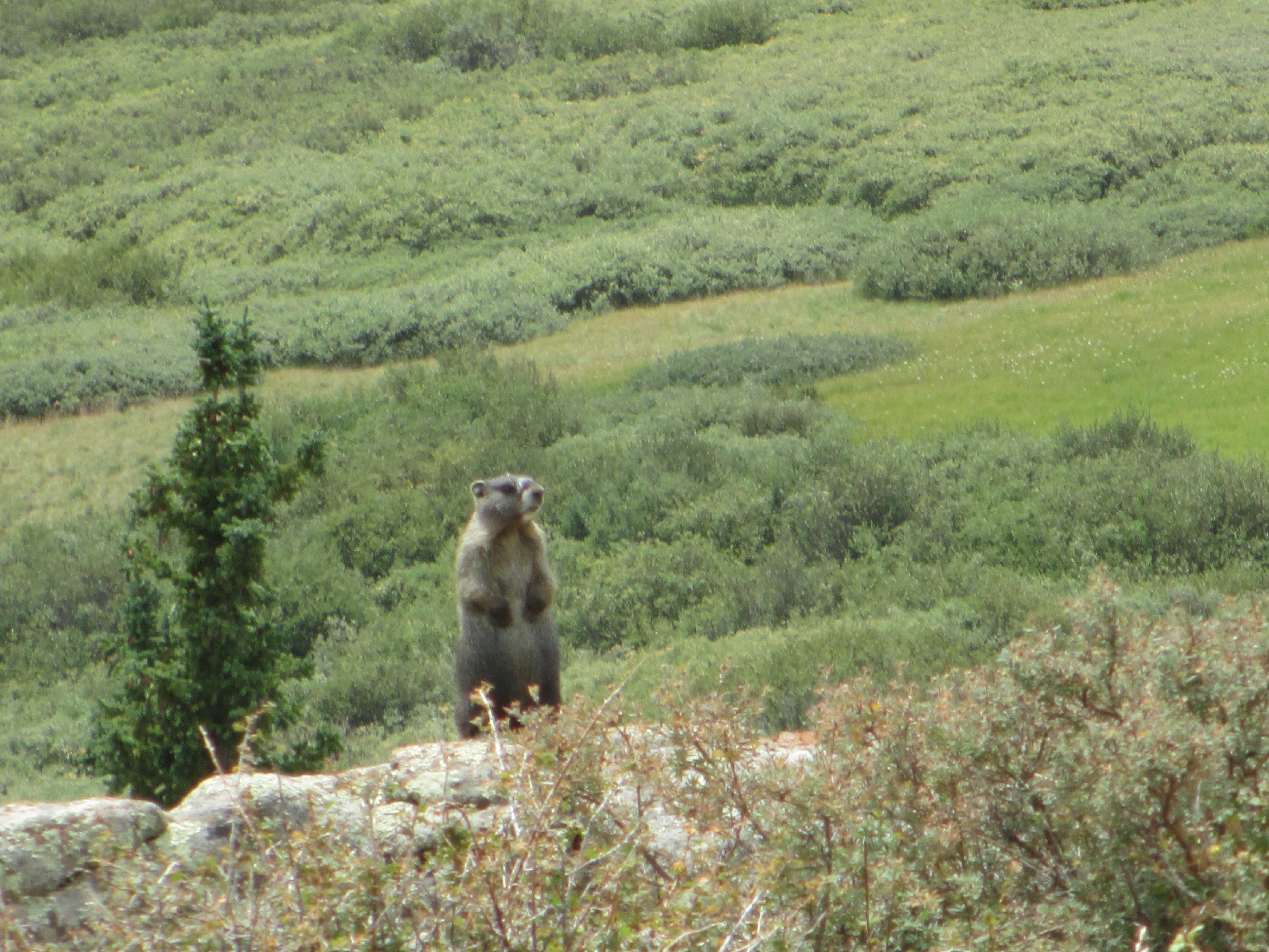A little ways ahead, a squeaky marmot stood on its hind legs, blowing out whistles. I took a video of him.