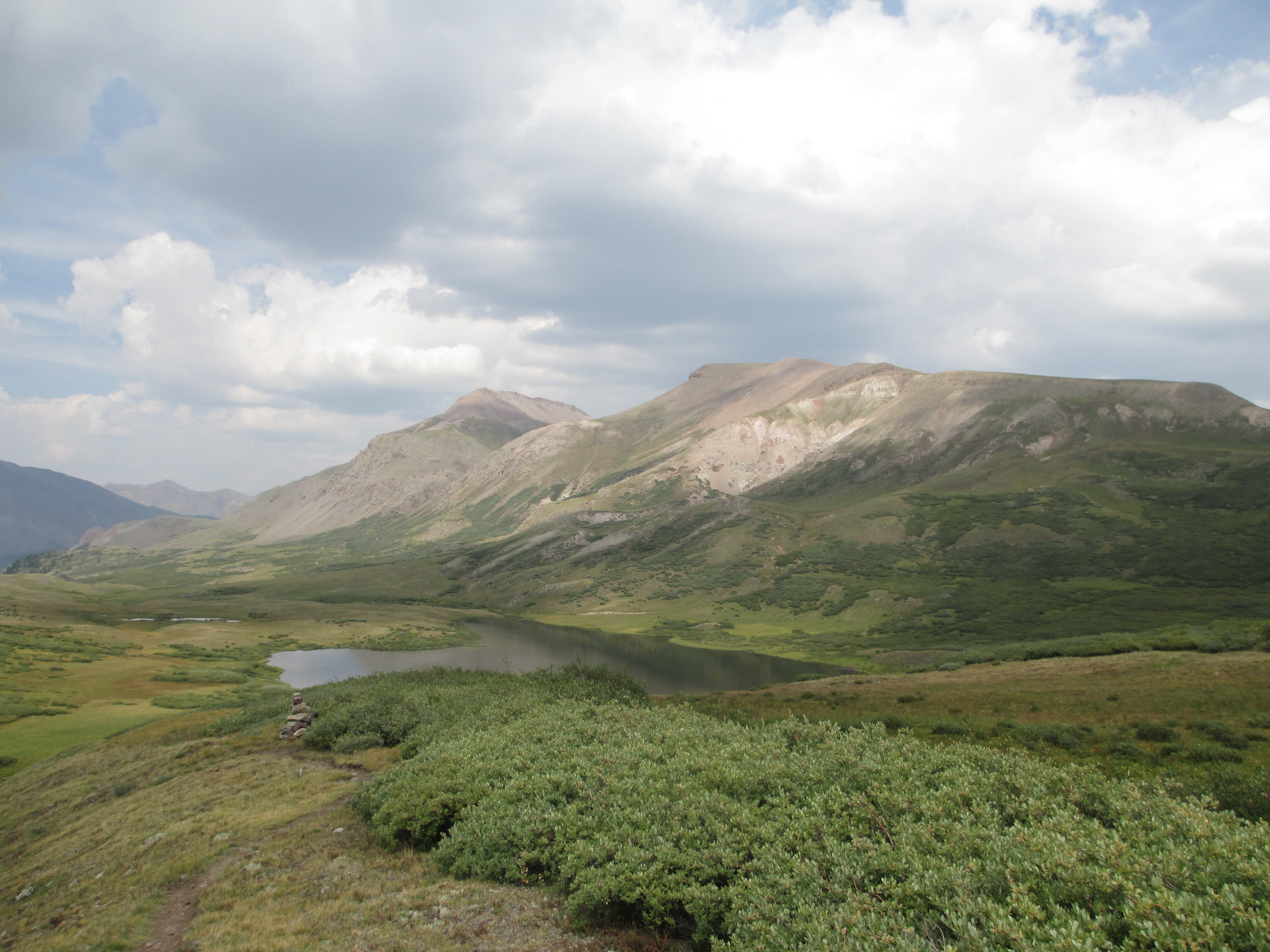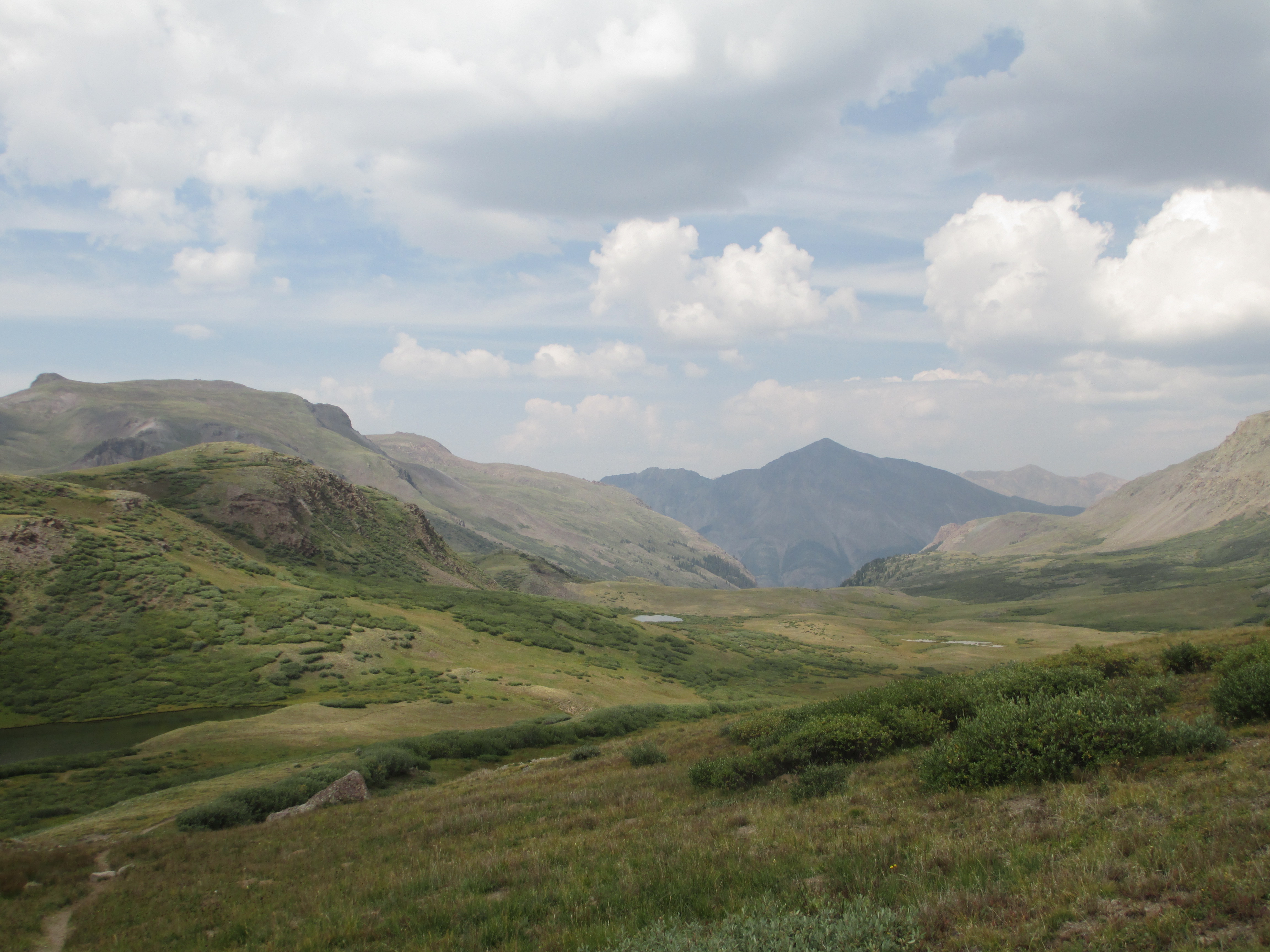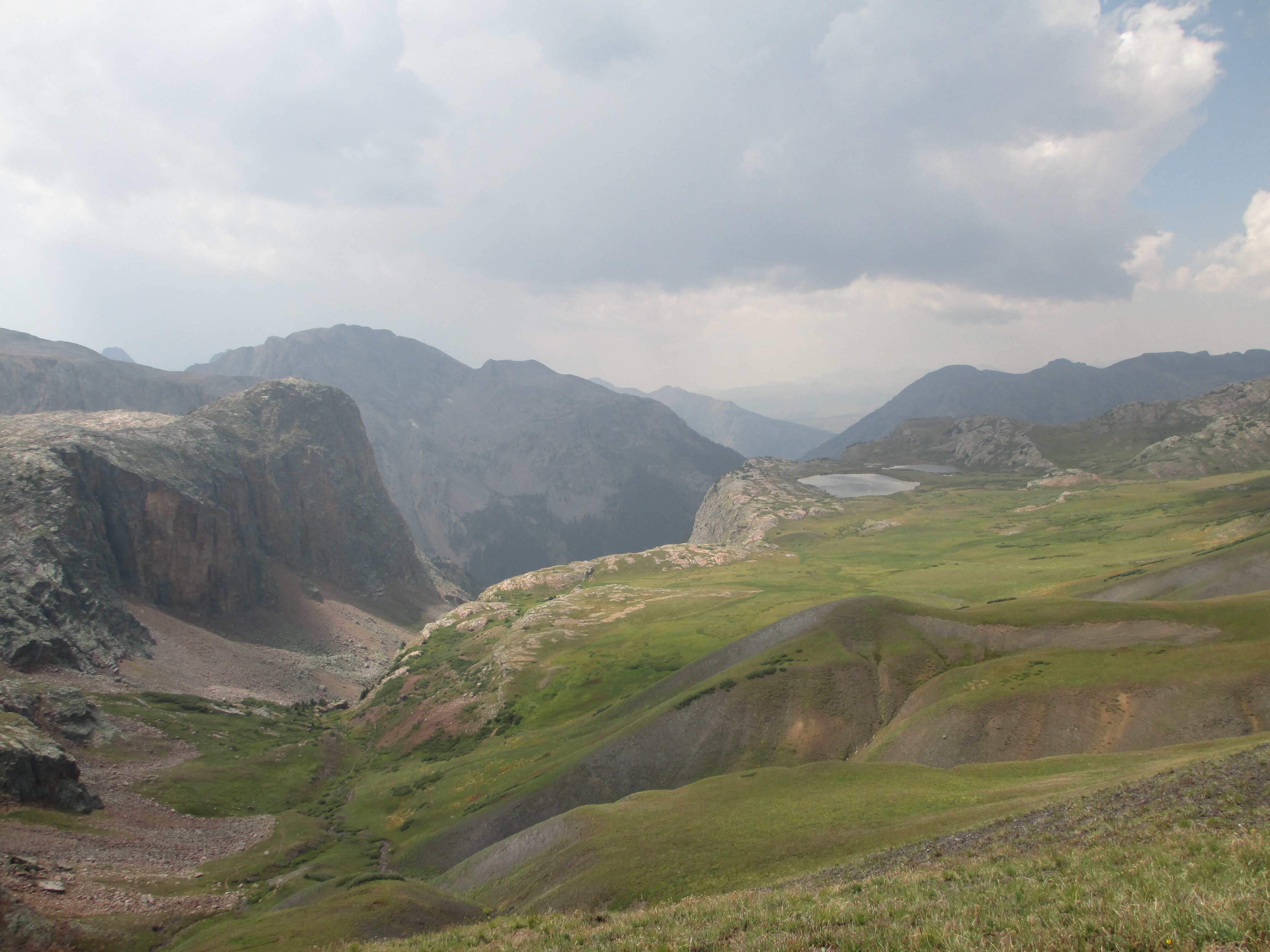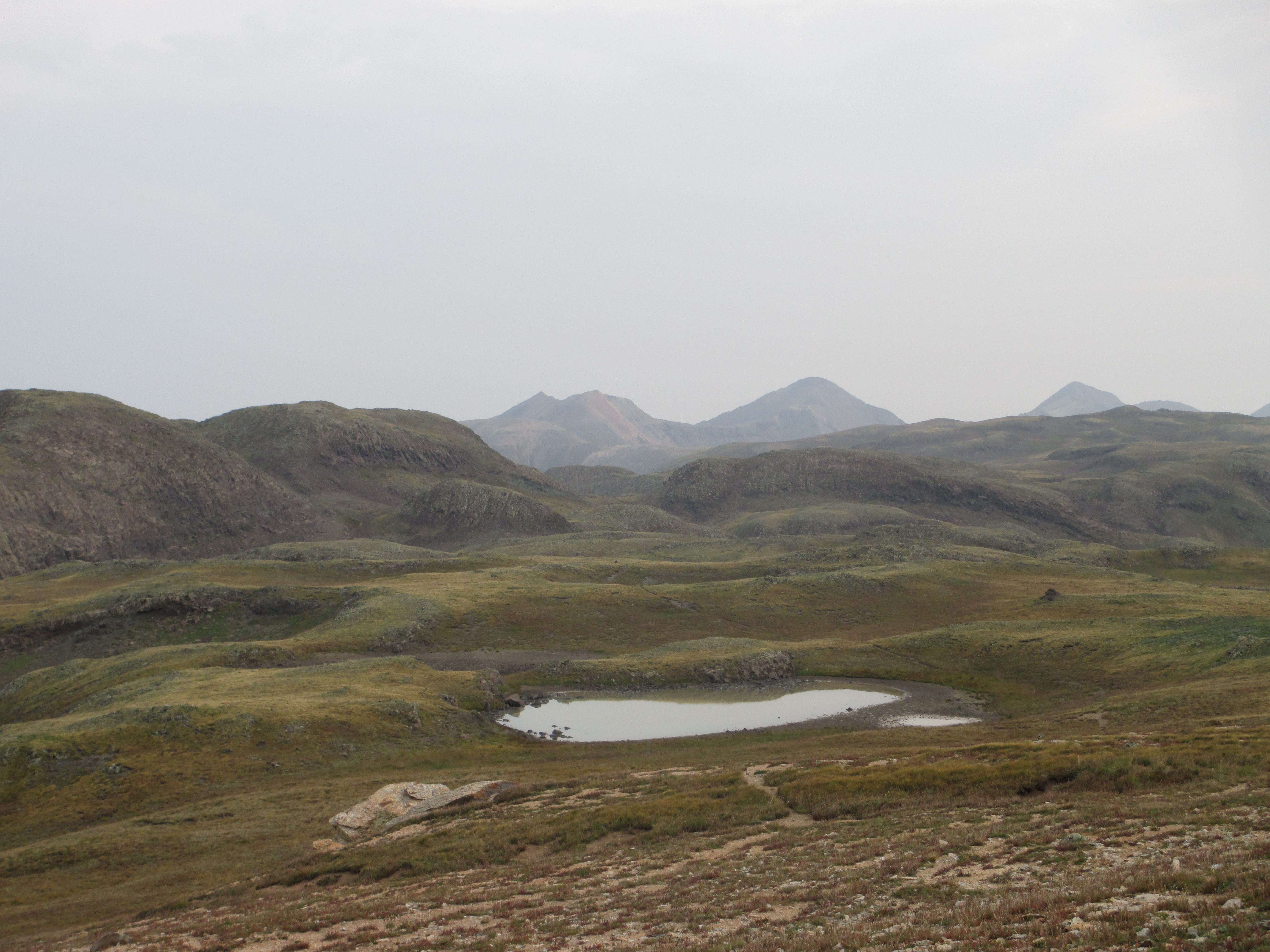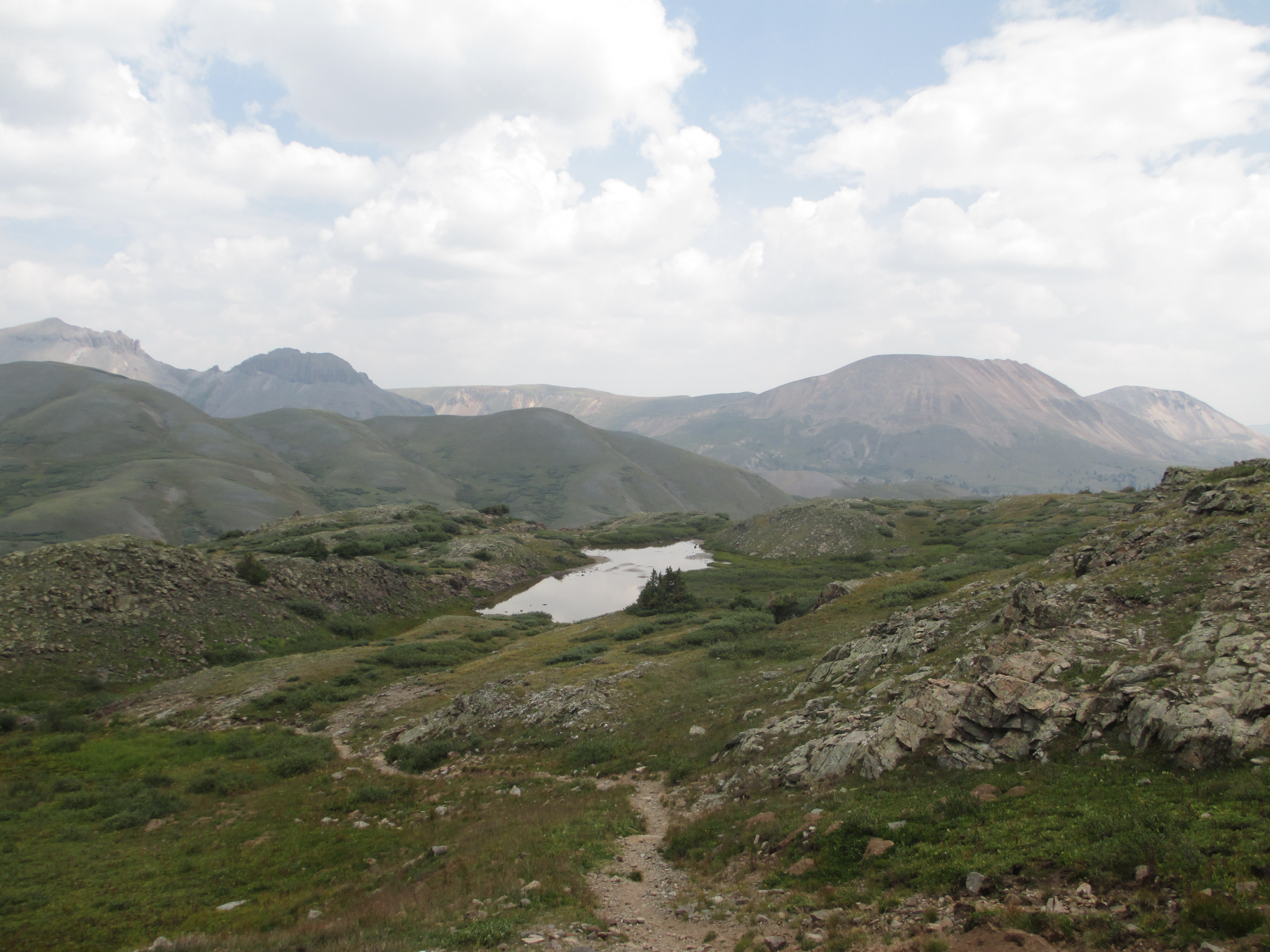 After this pass, it began to rain and then hail, but it didn’t last long. Slowly, I made my way down toward a pond.