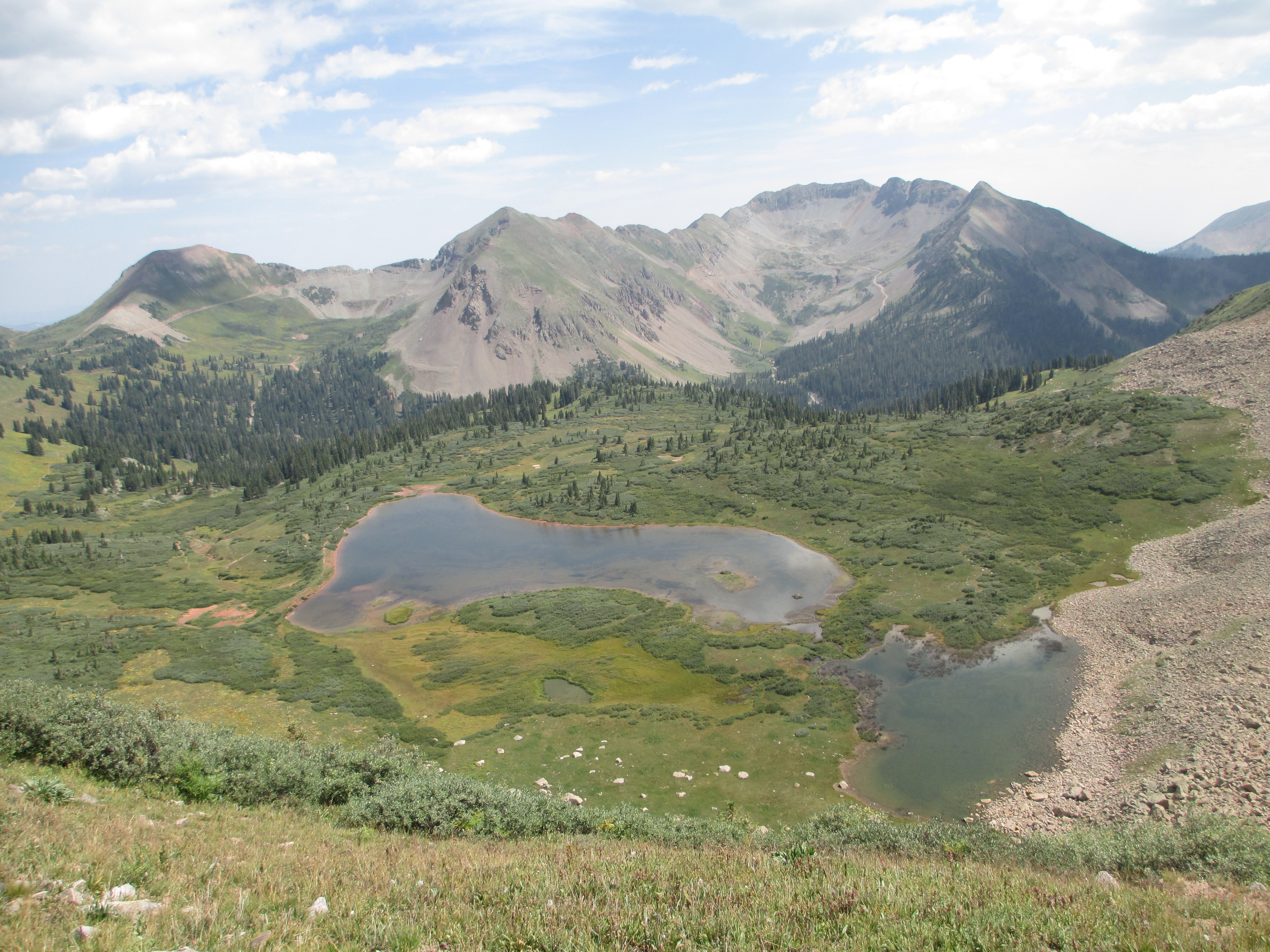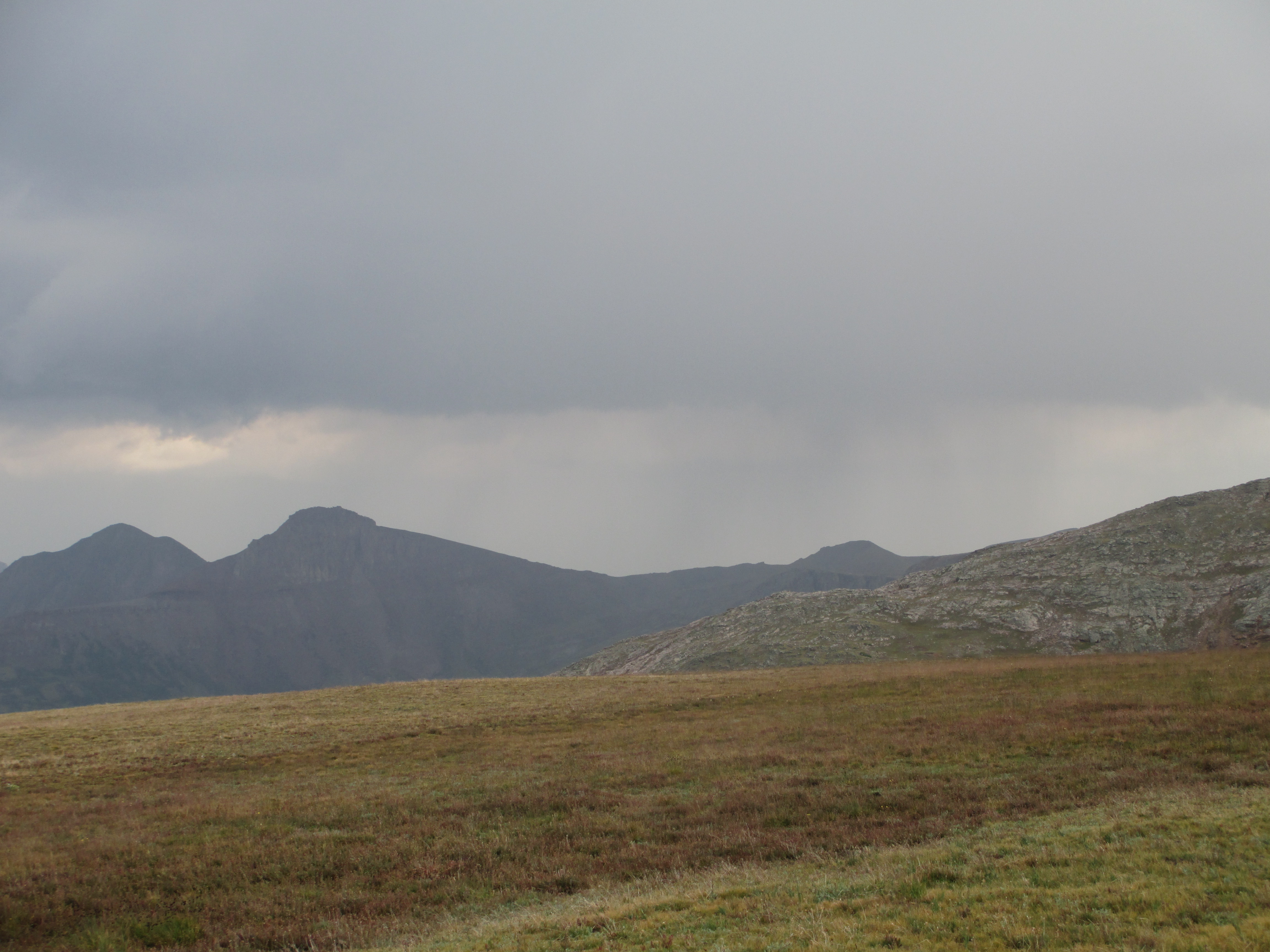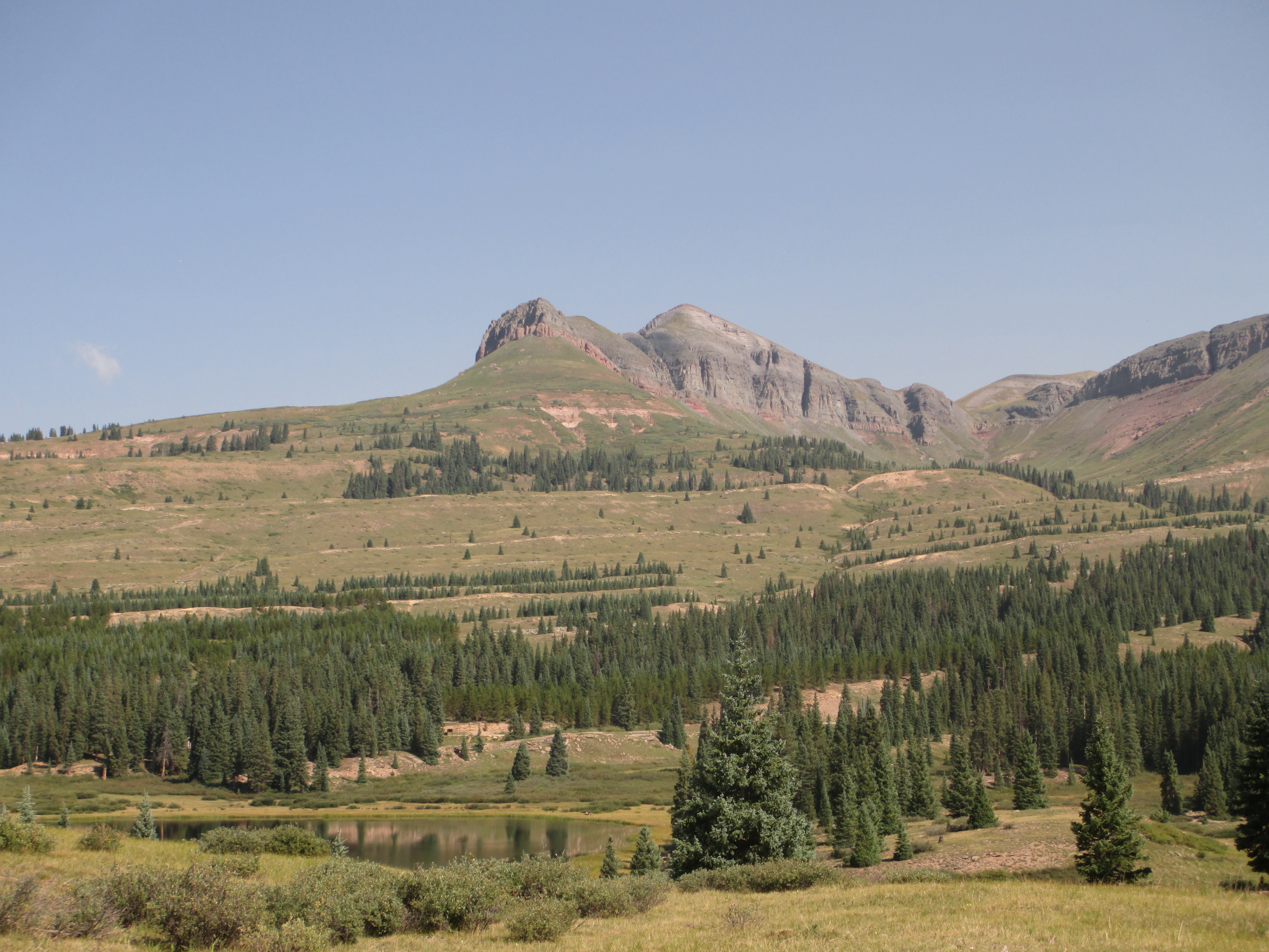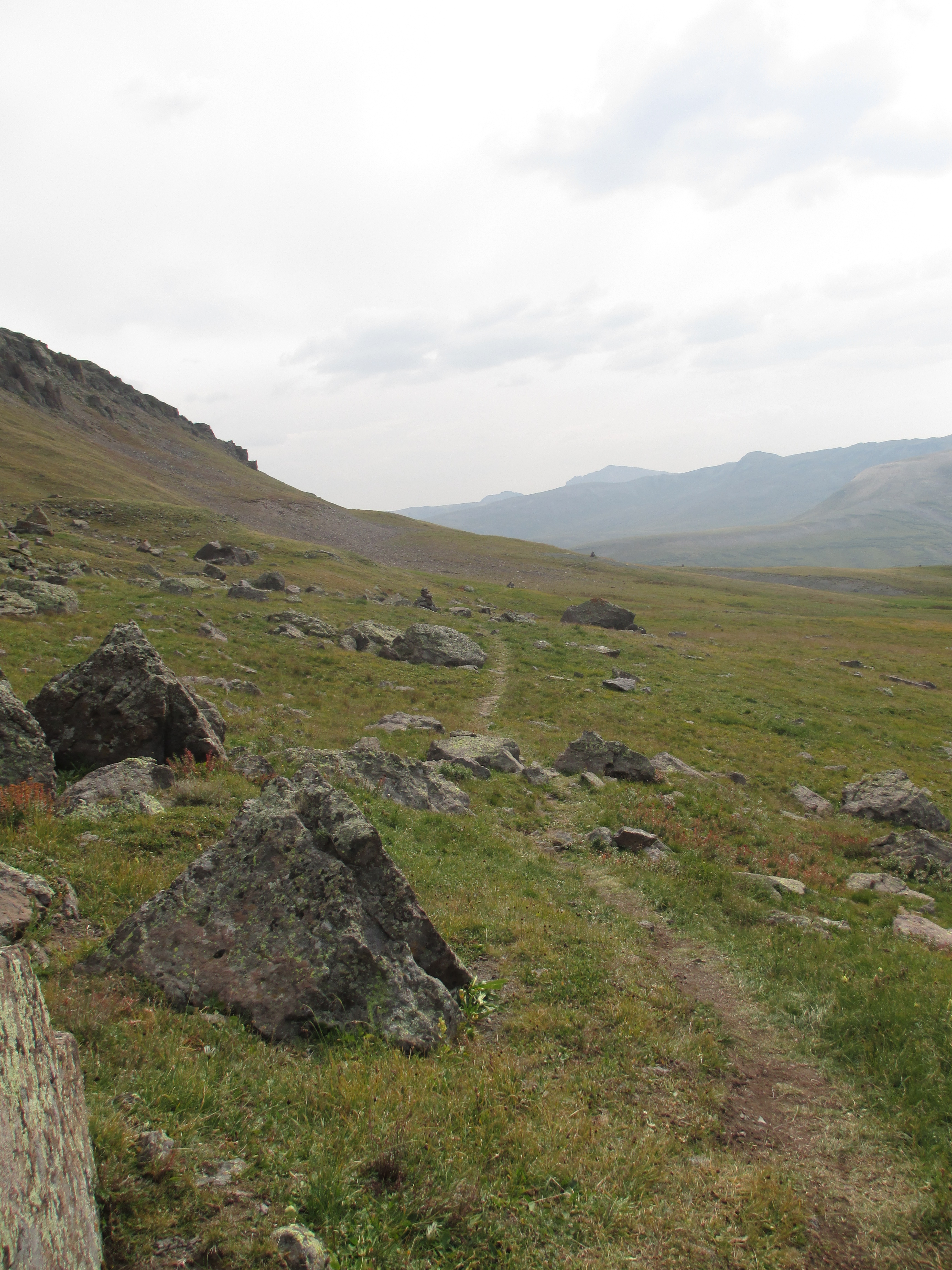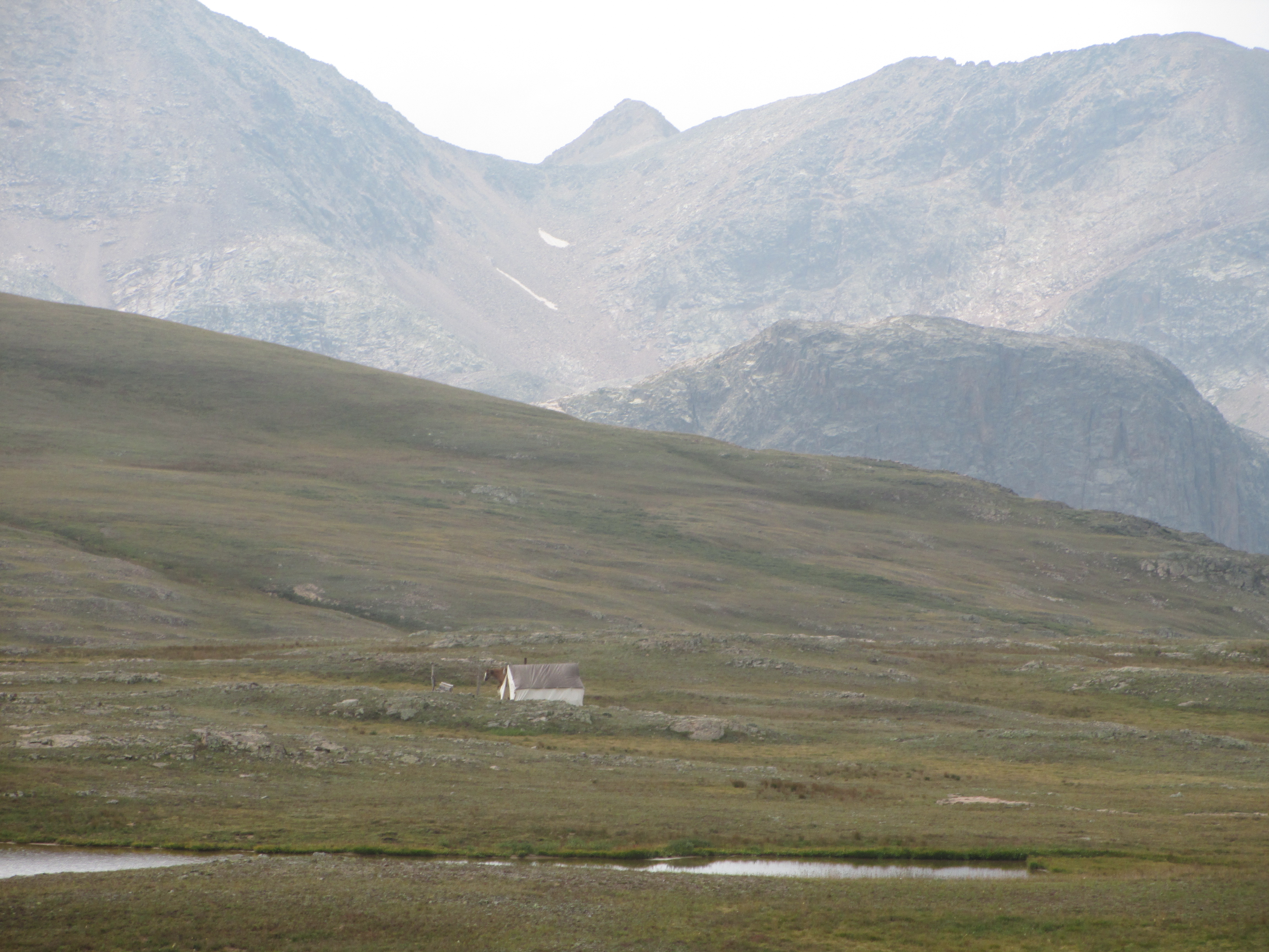 After this pass, it began to rain and then hail, but it didn’t last long. Slowly, I made my way down toward a pond.