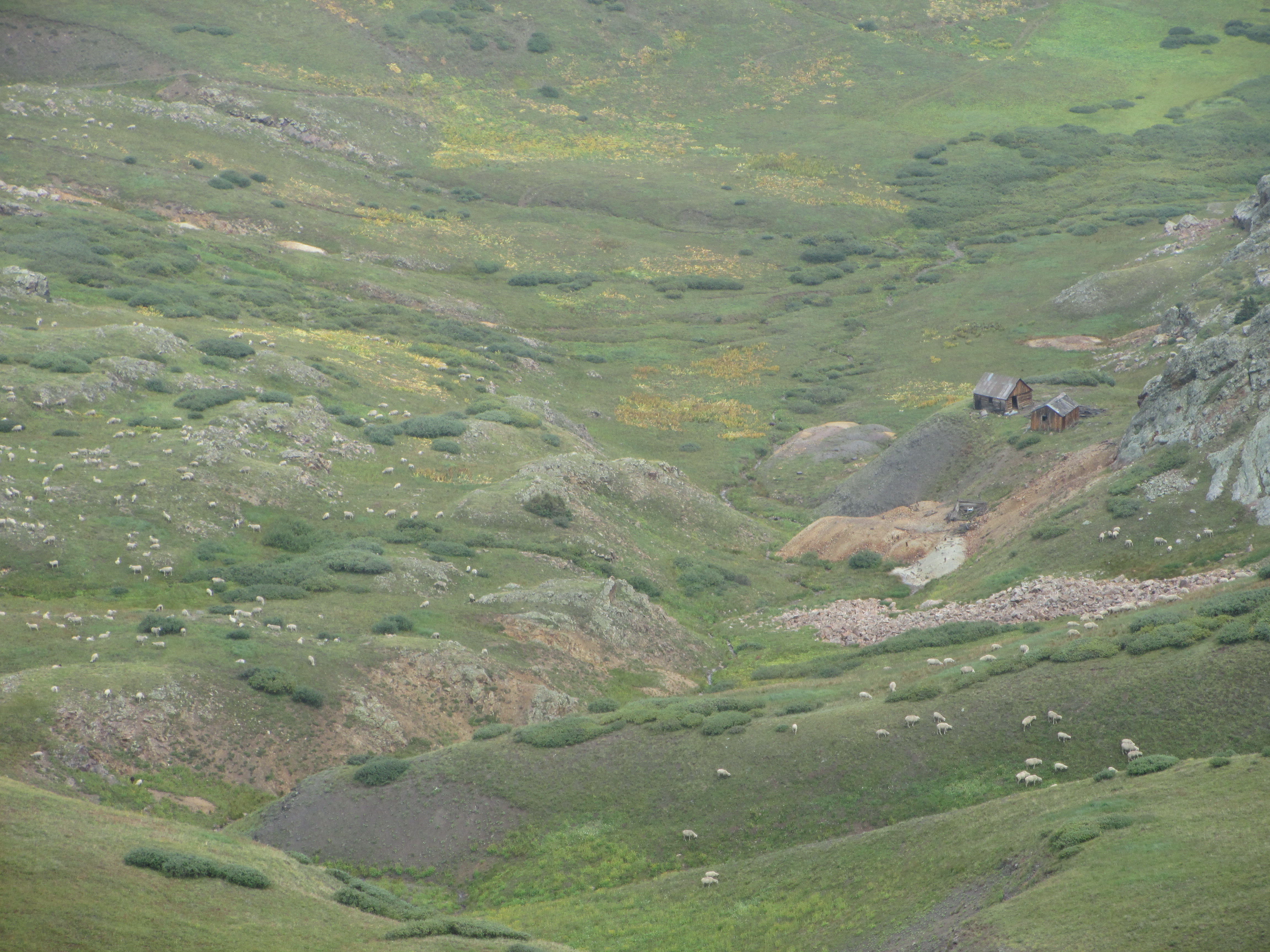 I made it to the top of the hill, and saw the turn-off for Elk Creek. Before heading down this path, however, I happened to look down into the valley on the other side and heard the “baa-ing” sound of 2,400 sheep, grazing in the meadows! What an incredible sound and sight! I looked on in astonishment! Just as with the moose, I had nearly missed the opportunity to see these animals!