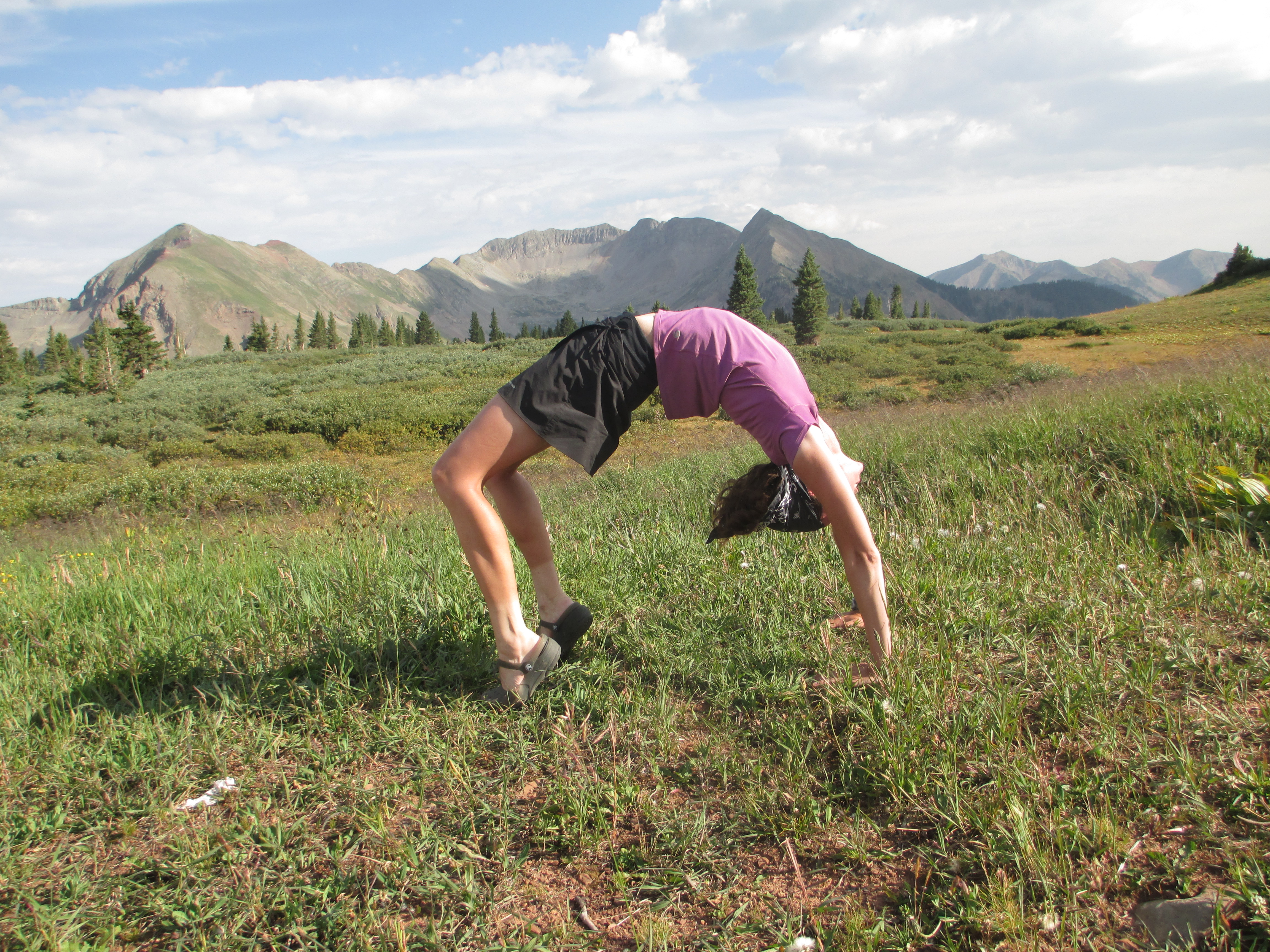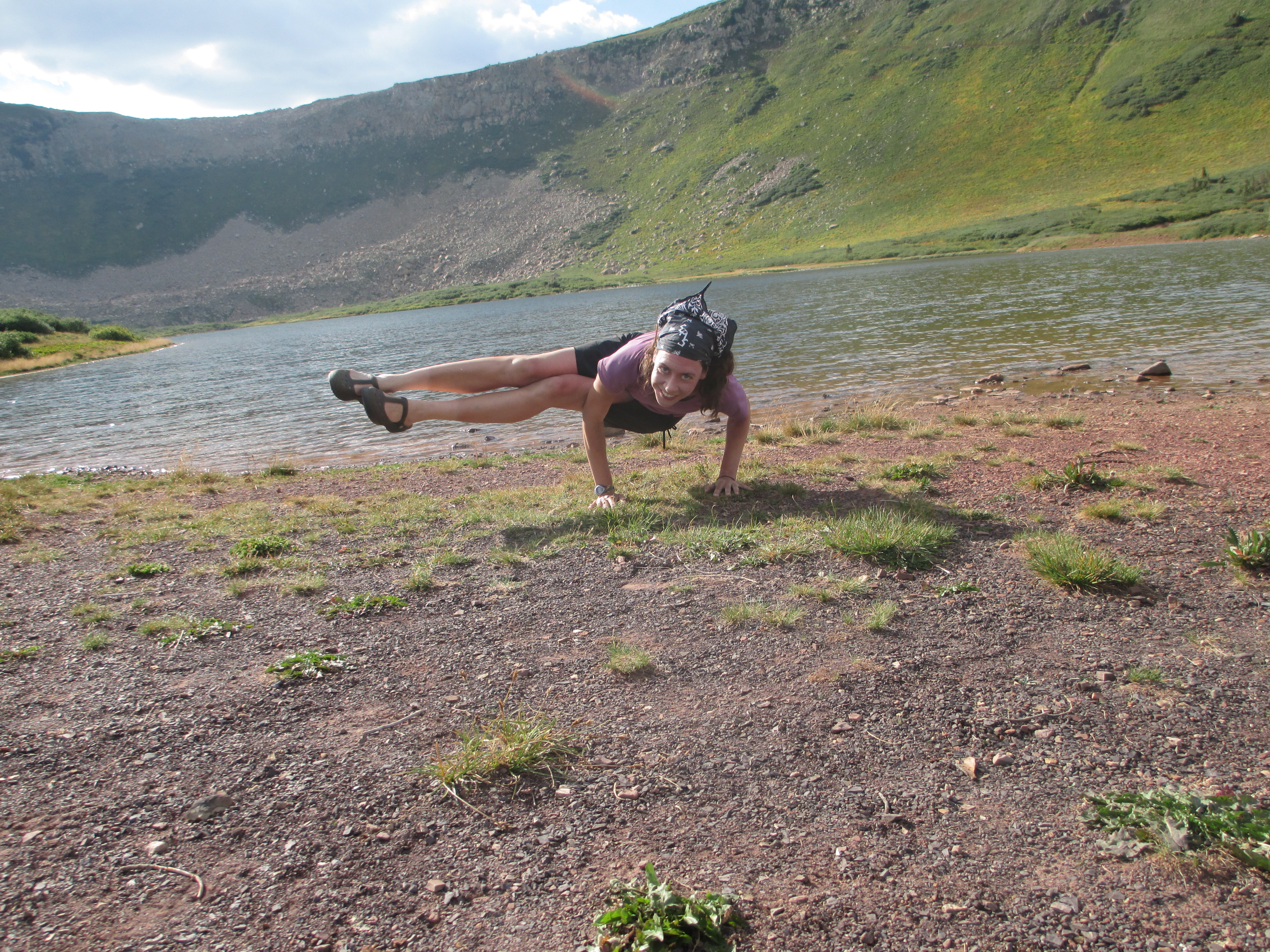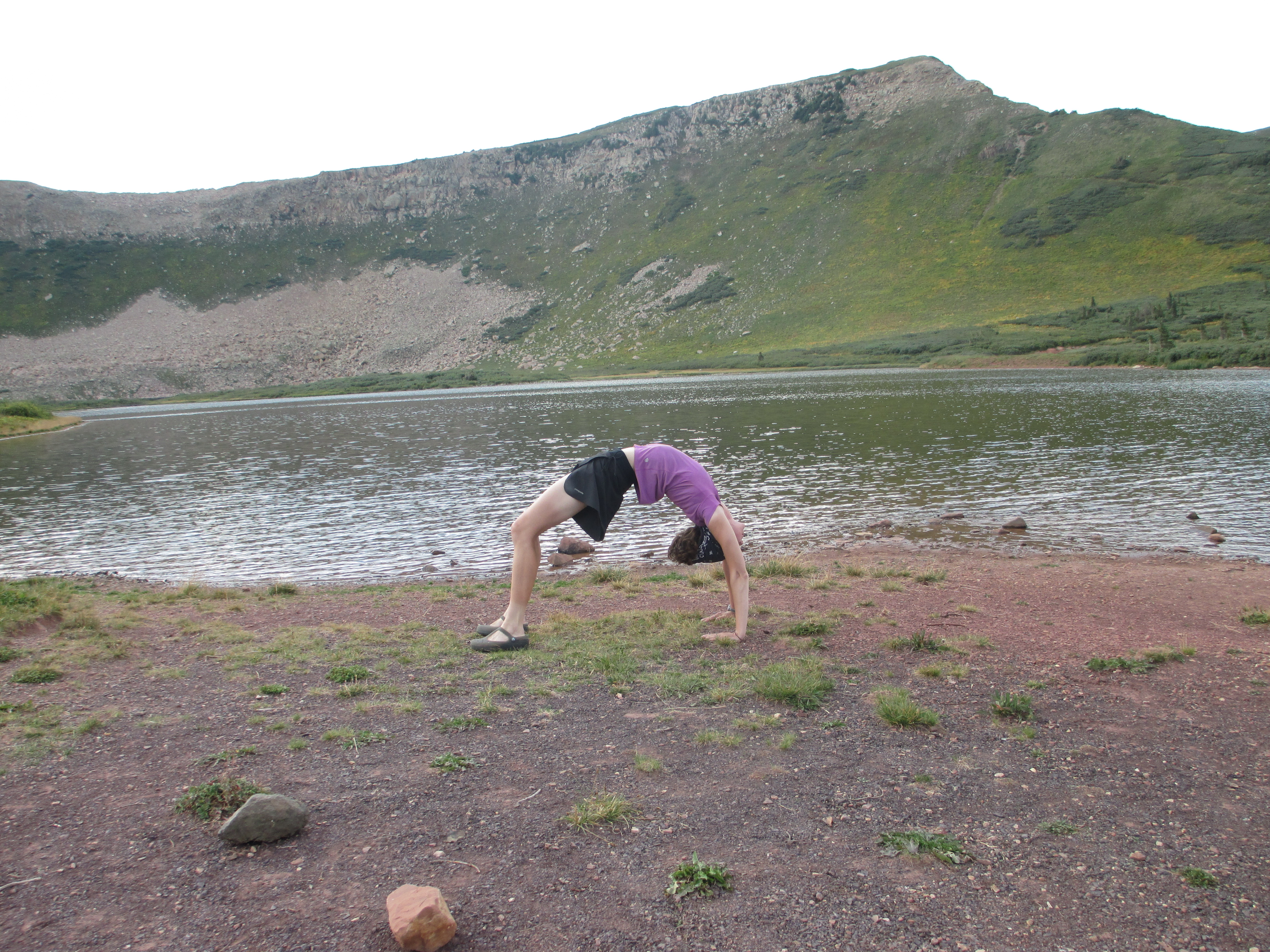 Delia filtered liters and liters and liters of water. Then, she said she was ready to take pictures. I hadn’t done any yoga (except for that one little class) since before my hike, so I didn’t know what my body was going to be able to do, but despite the loss of a lot of muscle, and no stretching or back bending, it seemed to still remember!