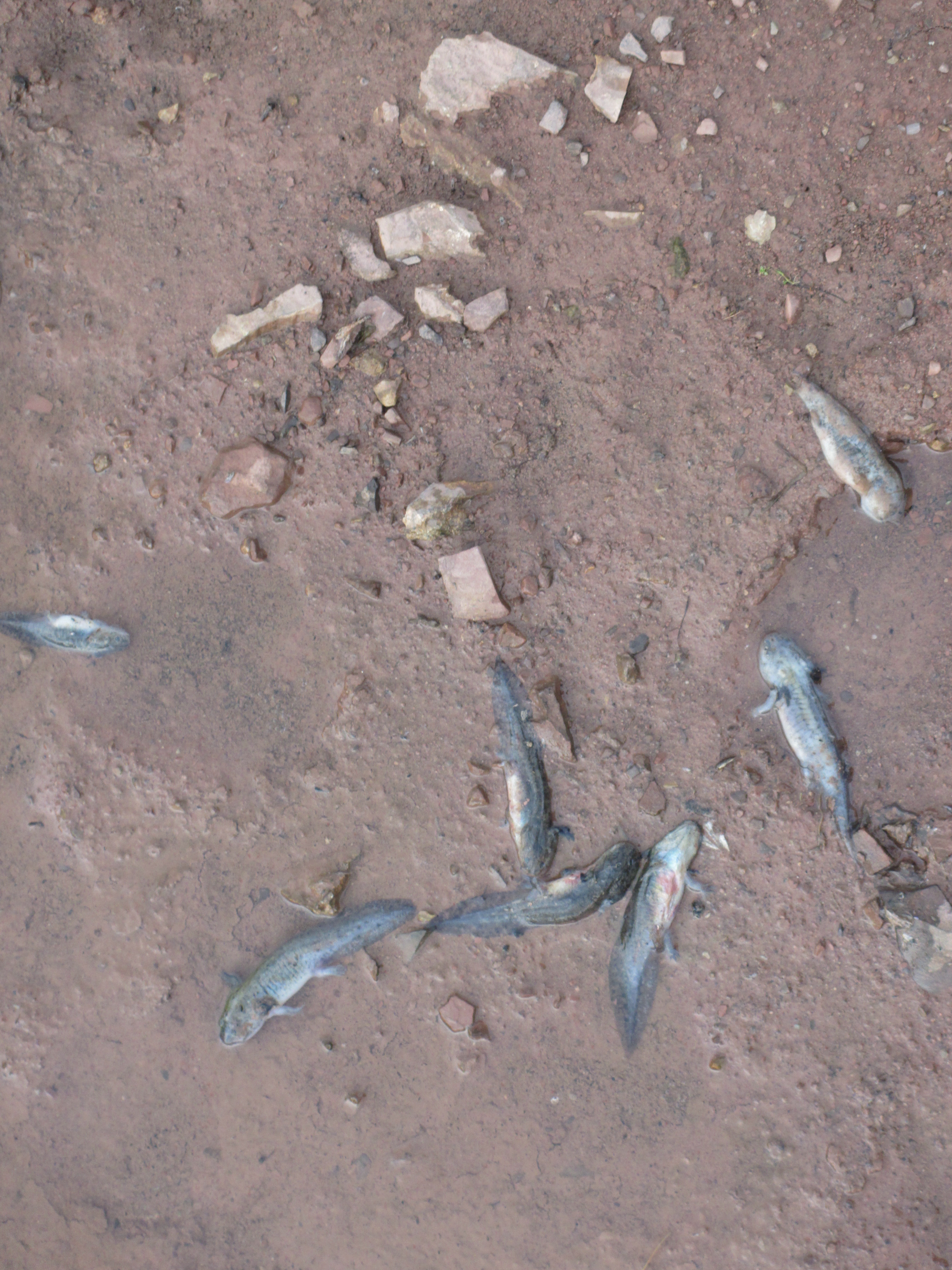 I reached it at 3:22! I was surprised to see that another couple had set up tents there. The ground was not very conducive to tent stakes, so I set my tent up in tall grass (not sure how it was going to be lying down on it…). It did not set-up easily, however. I struggled a good bit with it and then collected water to filter. Tim and Delia came down and scoped out a spot to set up. As nice as the lake looked as we descended, the ground was very clumpy and unpleasant to sleep on. I had imagined that I would finally get to put my feet in water (for only the second time), but approaching the edge of the water, I saw giant dead amphibians with four limbs everywhere! Disgusting! Later, I noticed they were even in the creek where I had collected my water! They looked like catfish with 4 limbs! Delia wondered if what was killing them would be harmful to us, as well. I didn’t think so. (Tim thought it was from lack of oxygen. He said they were newts).