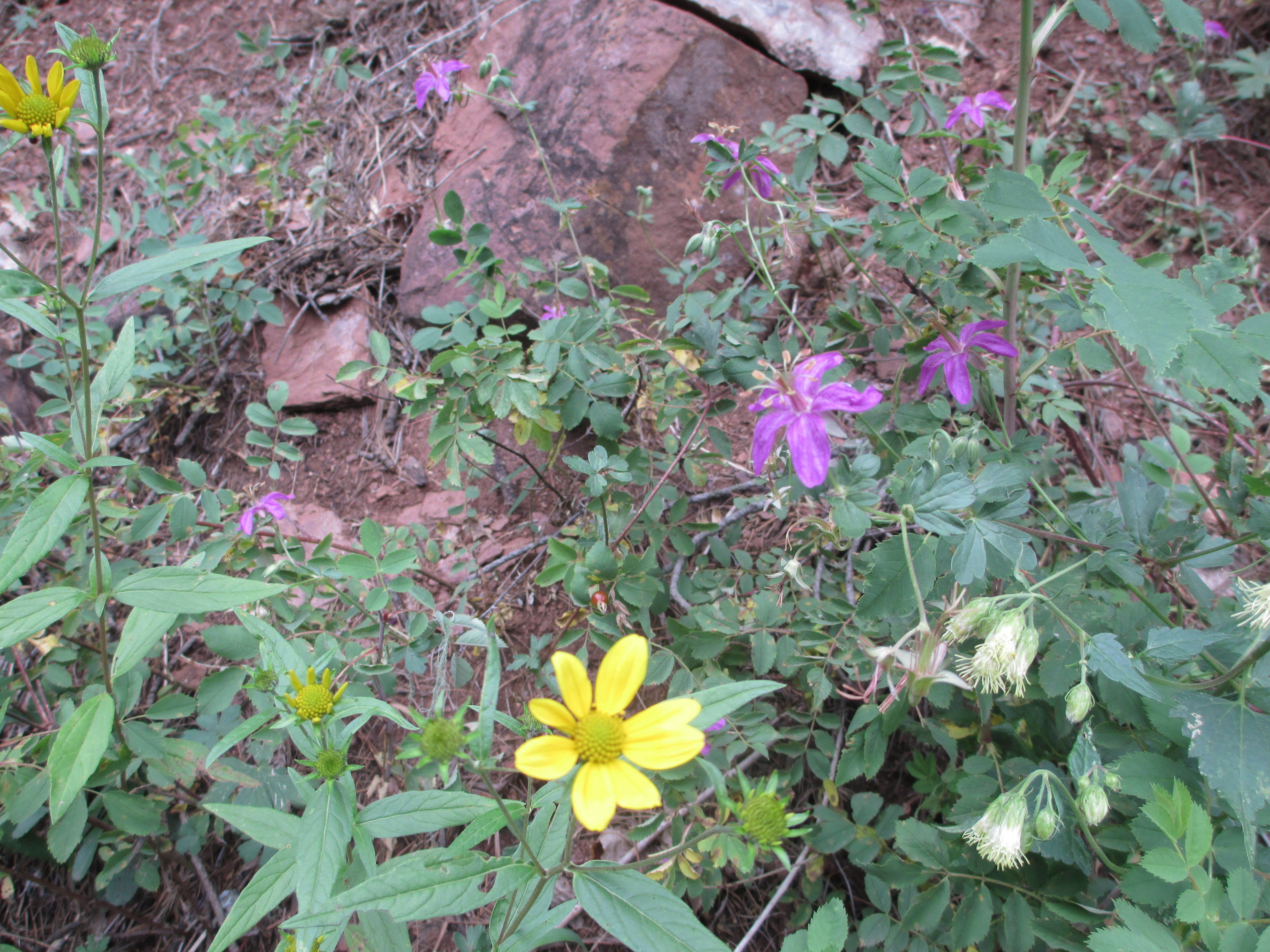 After a slight uphill, the trail started to descend “across a rockslide” which my guidebook warned about. Chad had also told me how scary this descent was for him, so I was nervous. But it turned out to be no problem at all! The clay tread was not slippery, and I didn’t find the descent steep or dangerous in anyway. Sometimes, I don’t understand why people make such a big deal about things…