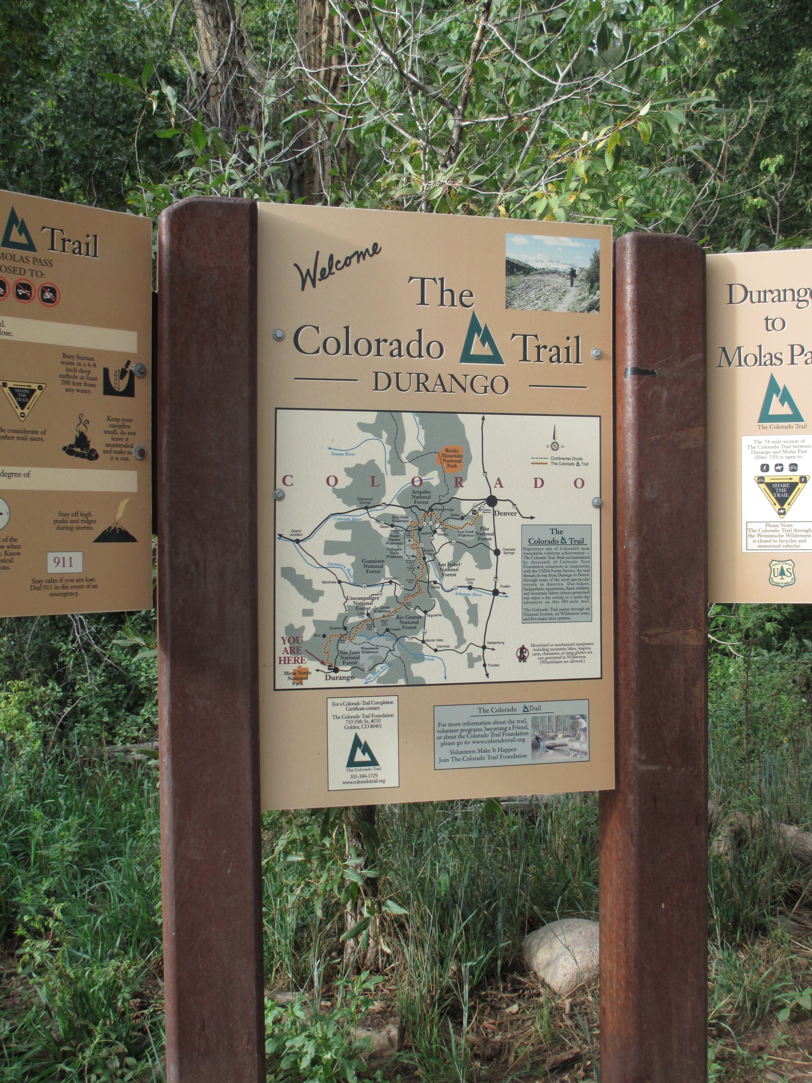 Then, I reached a trail head sign. I still had a ways to go, though. It started sprinkling again. I came to a rare trash bin and threw out my trash from the previous few days, realizing that I was now only steps away from finishing. It was time to take it all in. A guy walking his dog came towards me, but didn’t say anything. And then, I reached the parking lot. This was it. My hike was over. I was tired and alone. There was no fanfare. No one was waiting for me. No one was there to congratulate me. But more emotion welled up in me than when I had reached the summit of Mt. Katahdin in Maine, marking the end of my Appalachian Trail thru-hike. Maybe it was because I was so tired. Maybe it was because I was so alone. I had walked from Denver to Durango, hiking these 500 miles in much higher altitude than I had ever been in, crossing miles of exposed terrain in hail and lightening, camping alone almost every night, hitchhiking alone, and hiking all but a few miles alone. I had it done it all by myself. And now, here I was, at the other end. My journey was over.