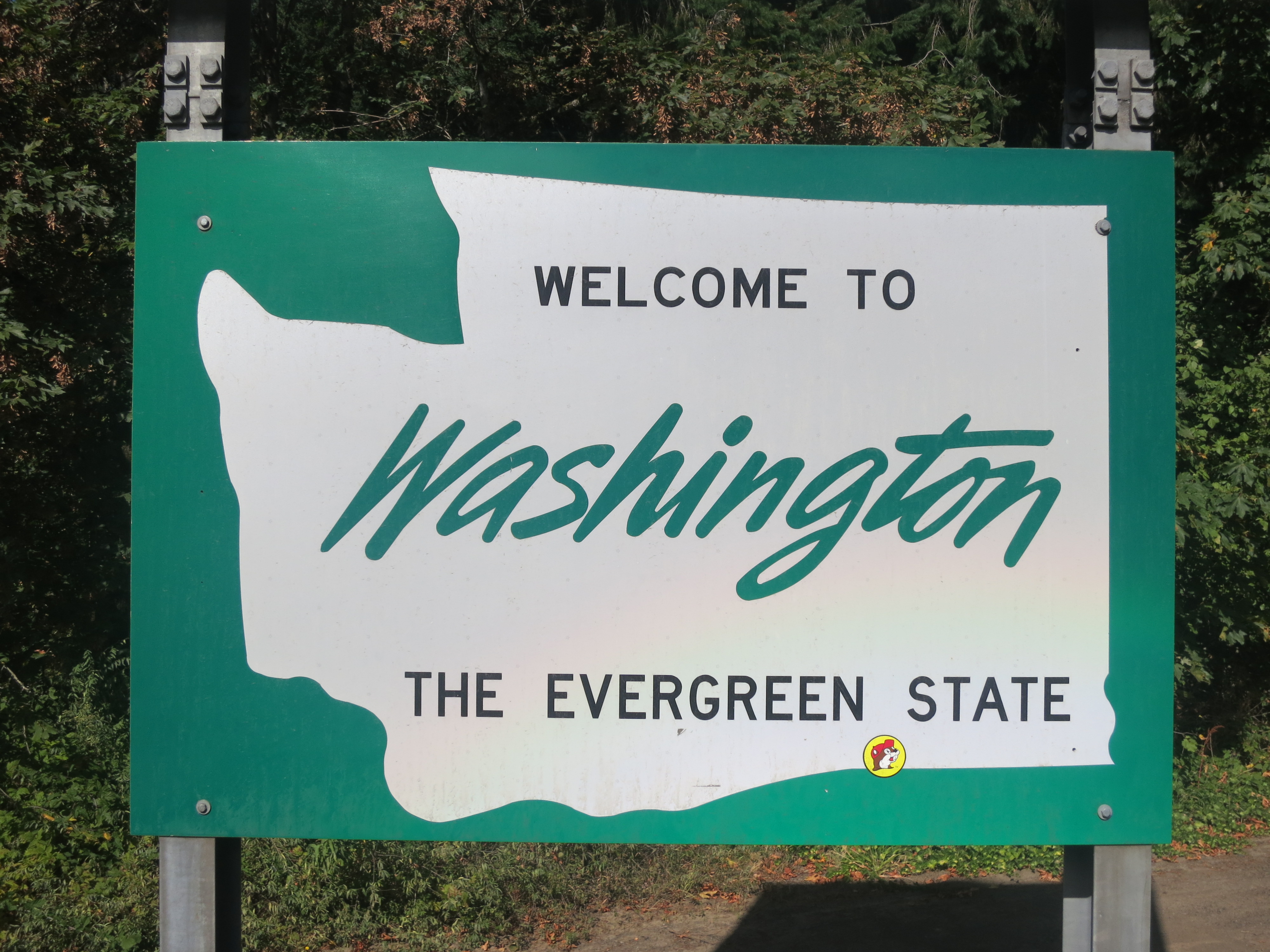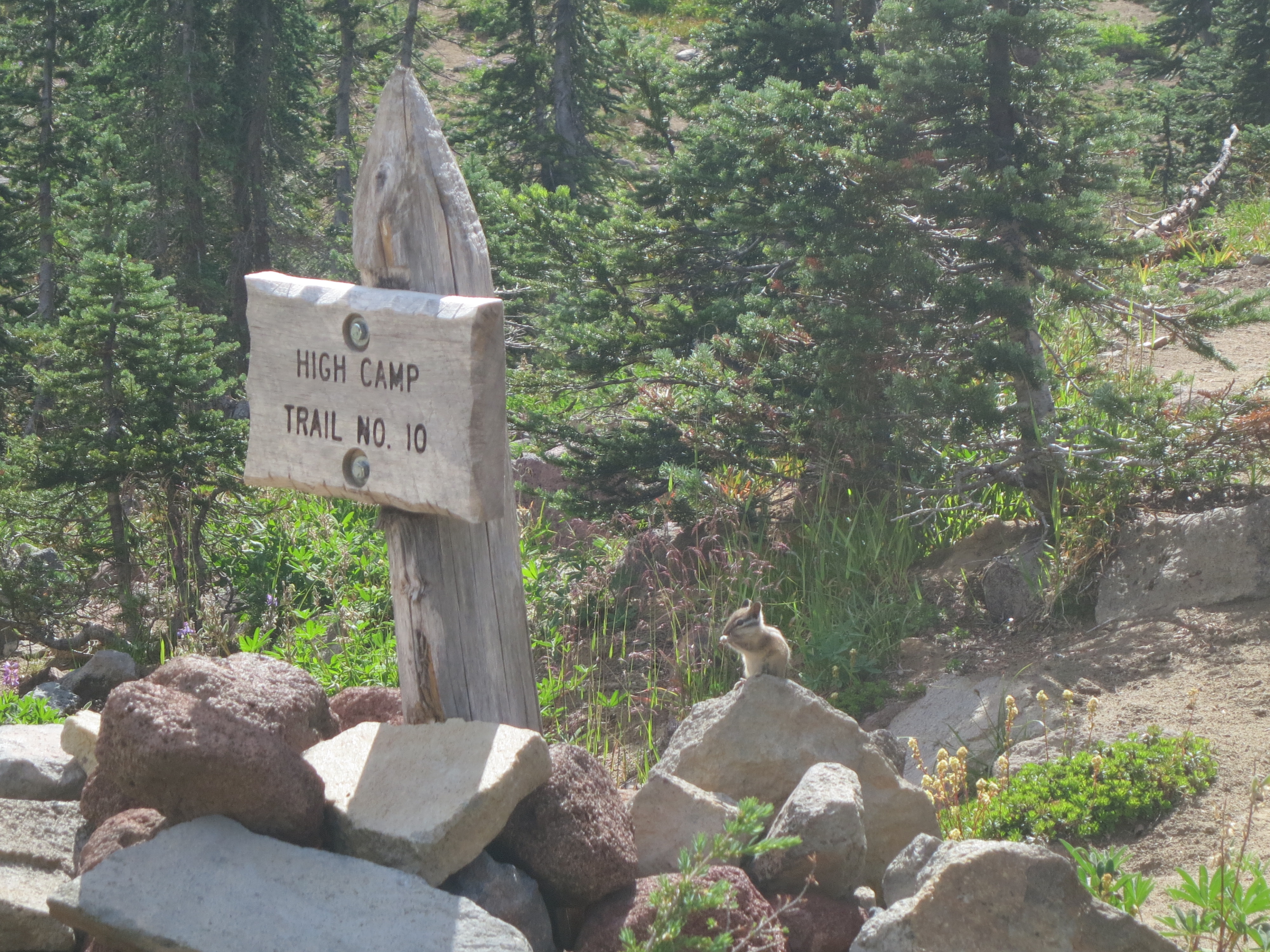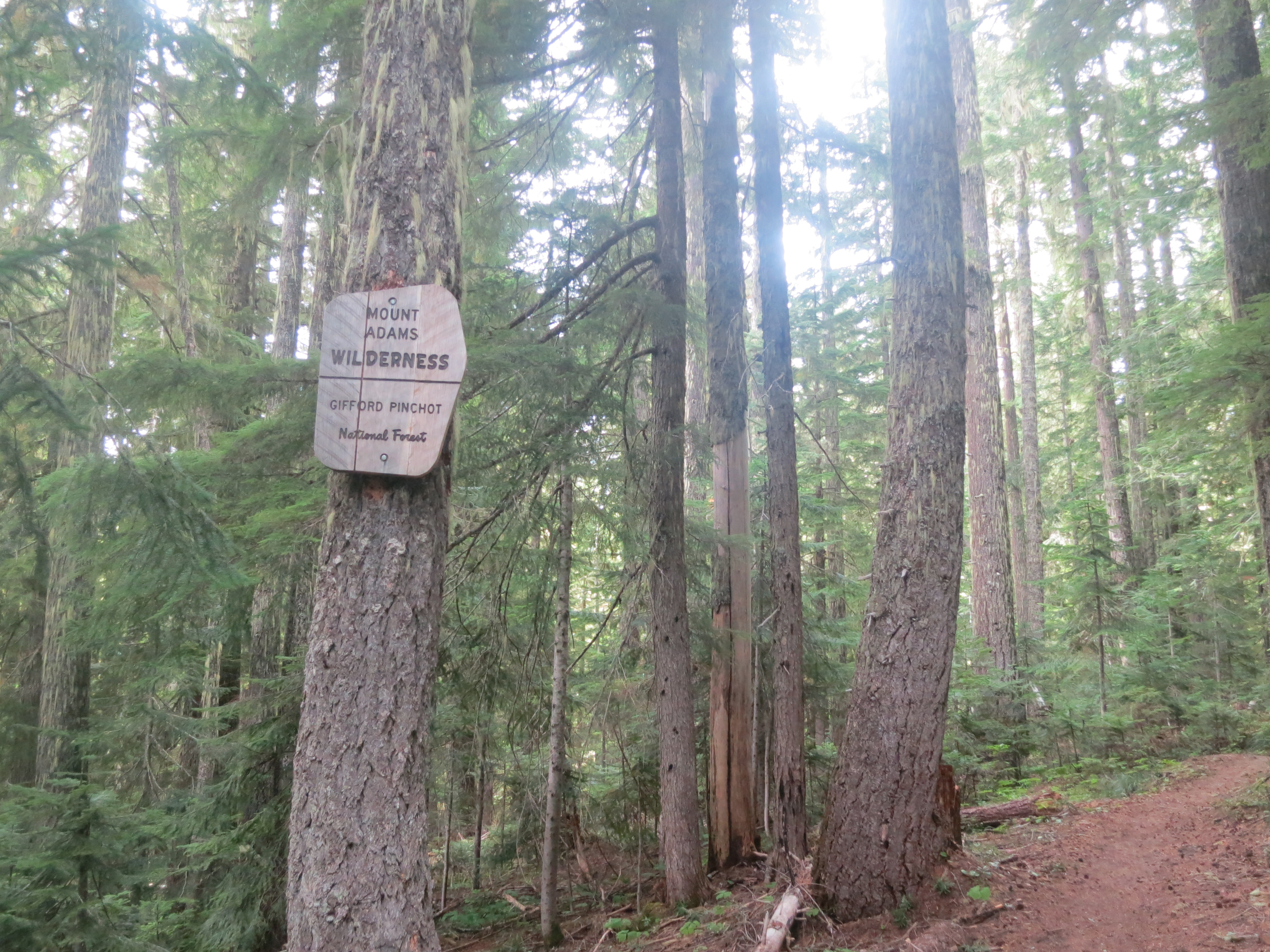On the final curve, I saw a clearing through the trees and could make out part of the wooden monument and a sign. “I see it!” I called back to Purple Haze. And then, I was suddenly there in front of it. Just a quiet little wooden monument in the middle of a clearing in the woods.