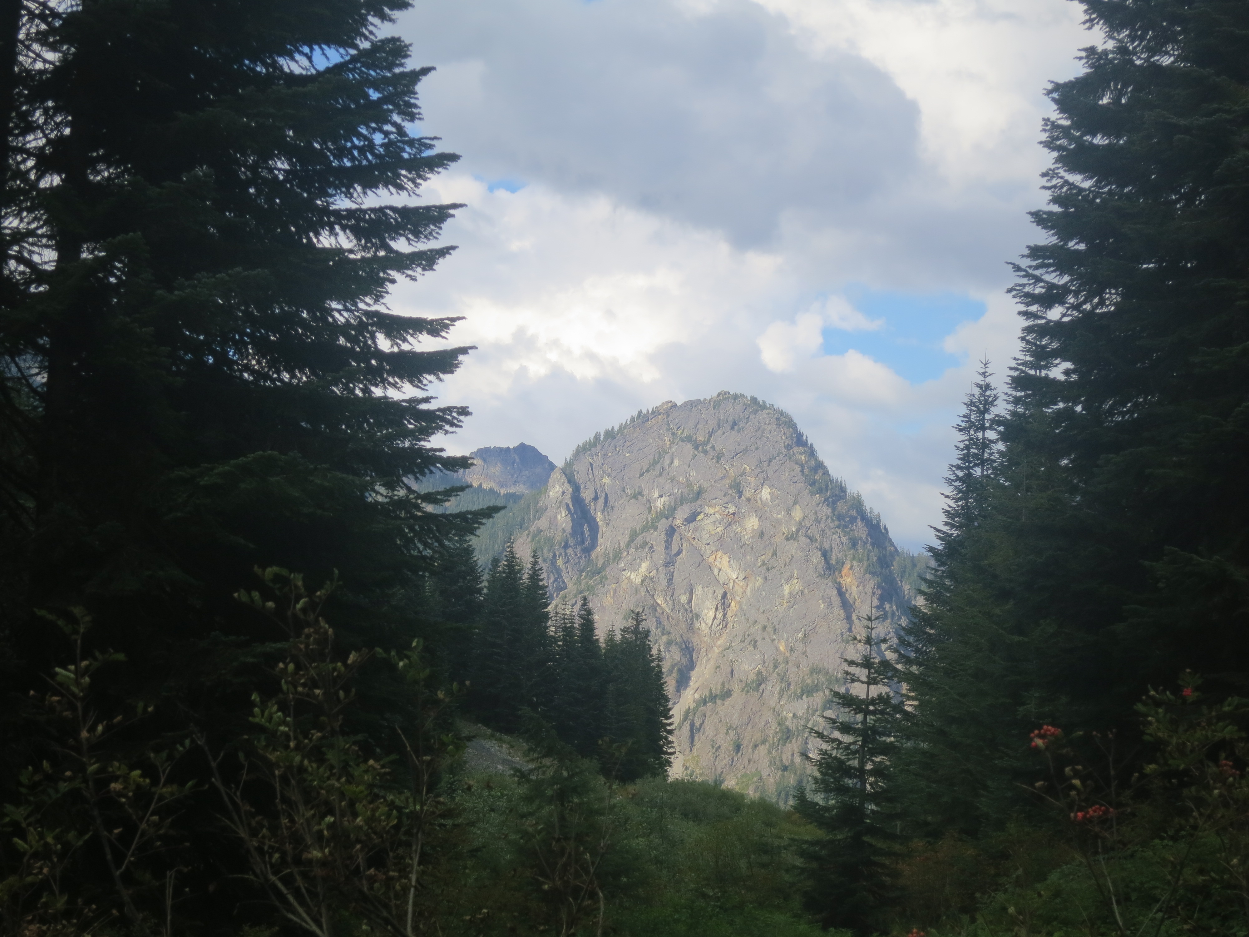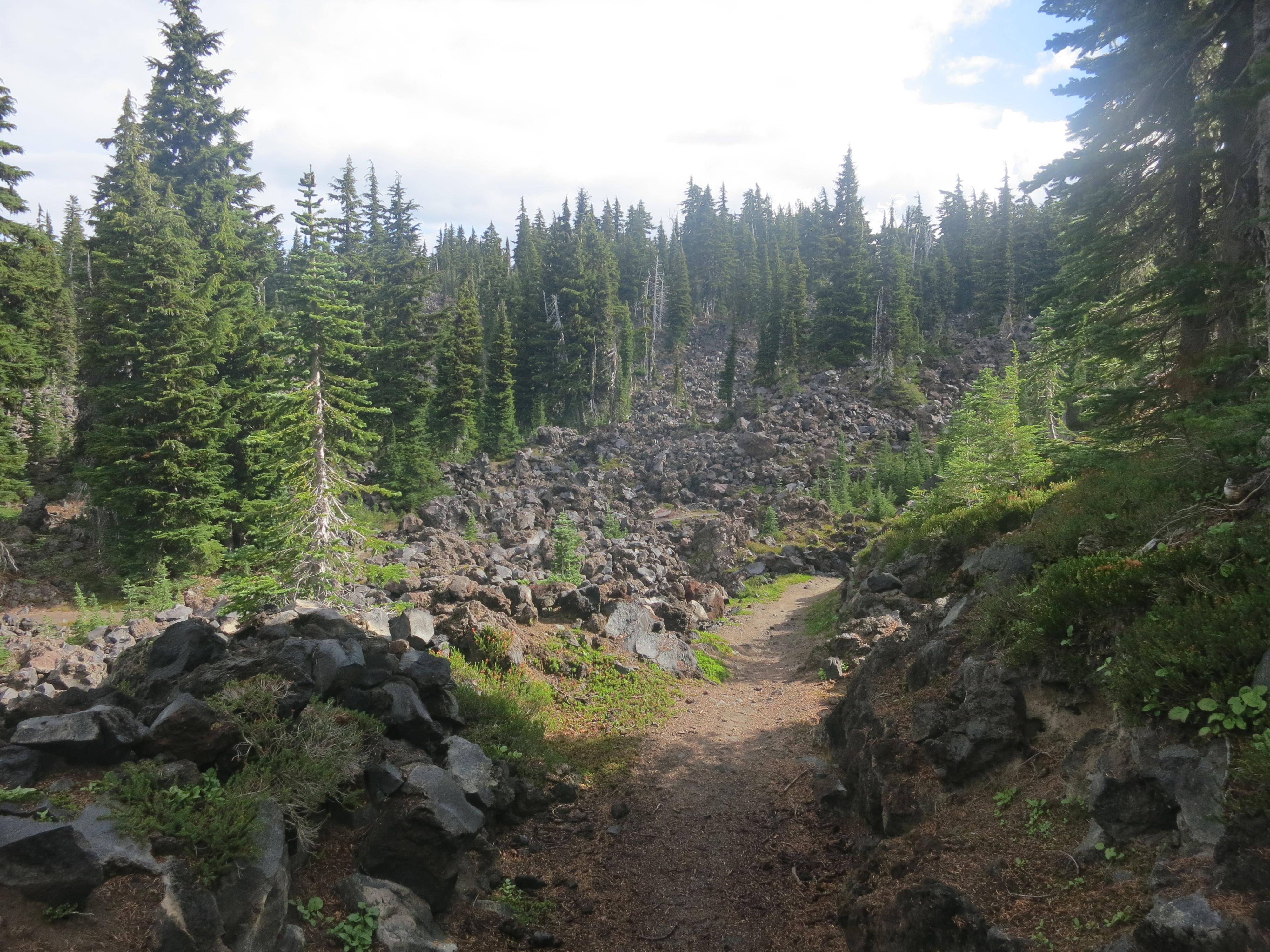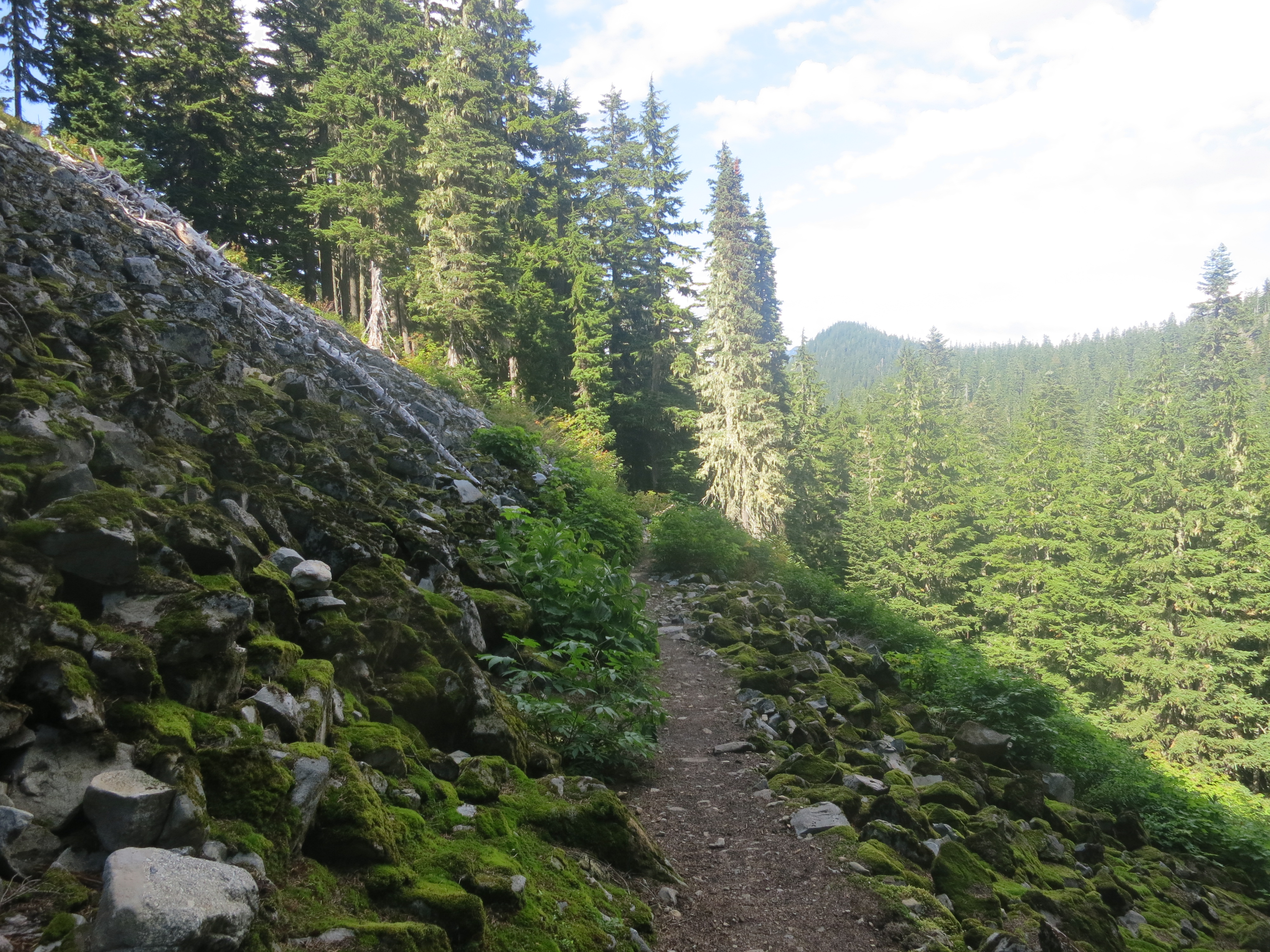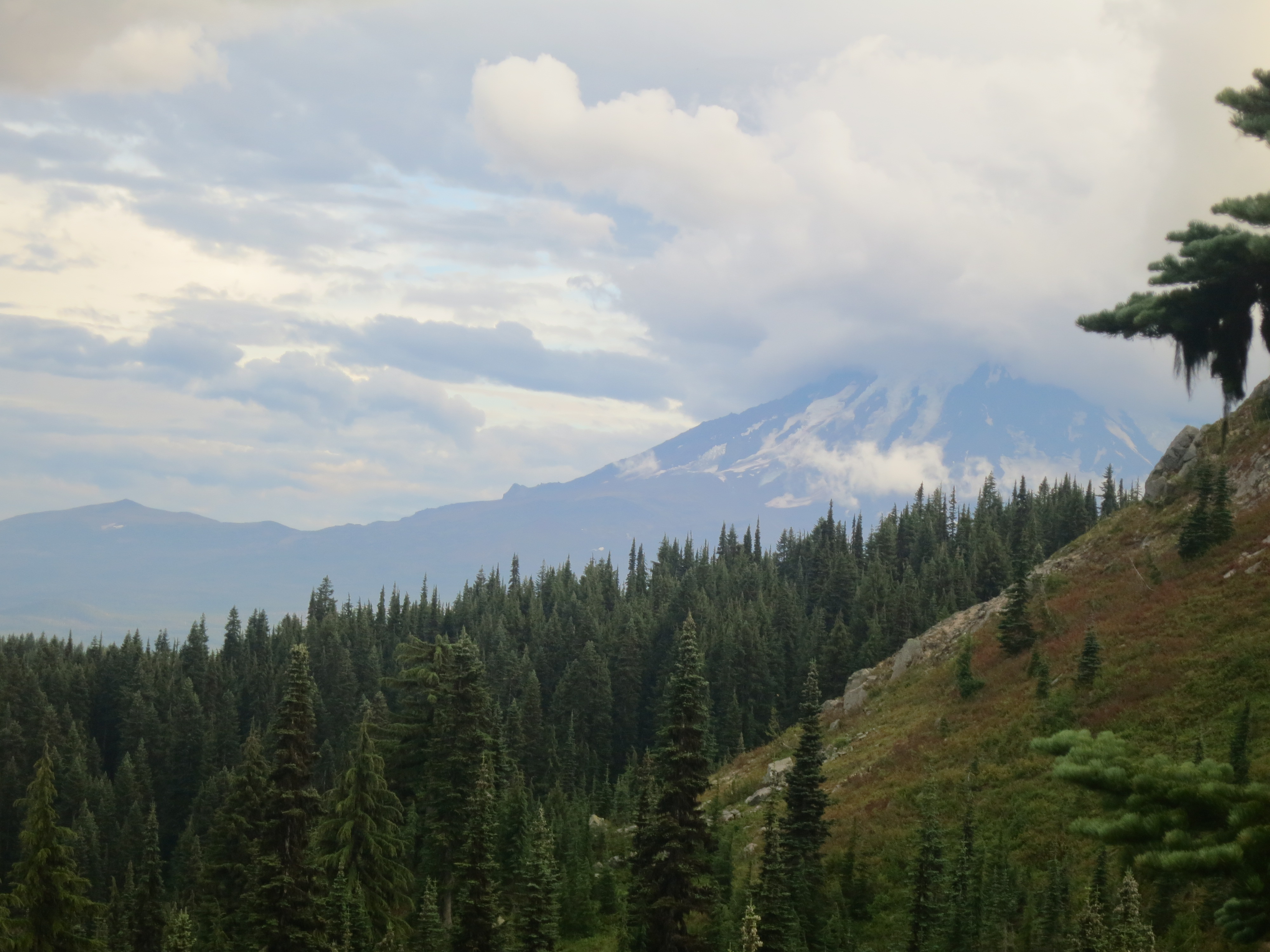 I thought it would be nice to have some company for the remaining 9 miles, but they urged me to go on ahead, as I would be faster. I figured that they needed some catching up time, as well. During the first mile or so, I thought about all of the lessons that I had learned on my journey and felt like I was having a lot of profound thoughts that I would have to share with people later. Then, the effect of the champagne wore off and I suddenly felt very, very tired and I quickly forgot all of my fascinating thoughts! How many miles did I have left? I wanted to get my heavy pack of my back! The trail climbed and still, the grey clouds hung low.