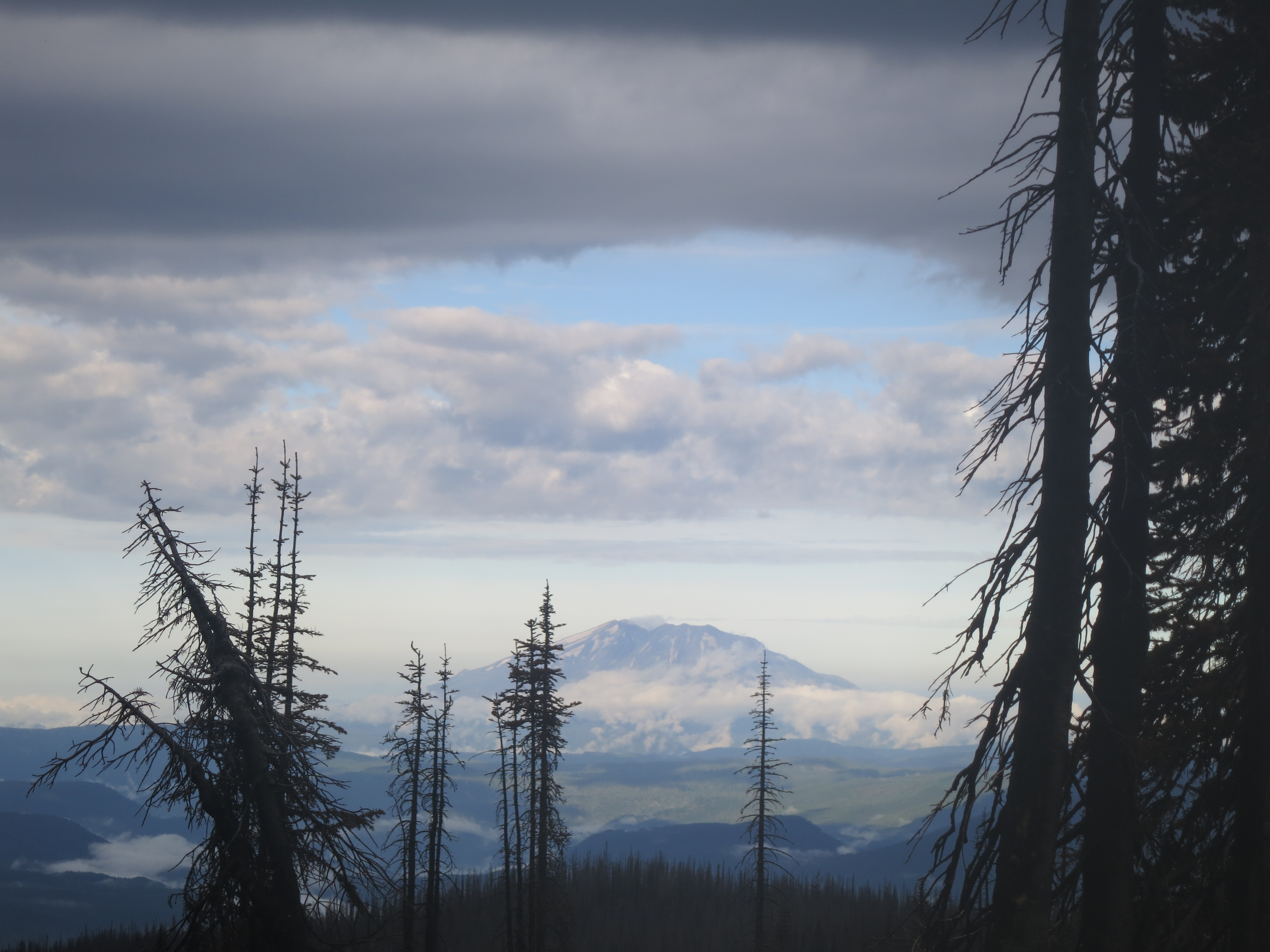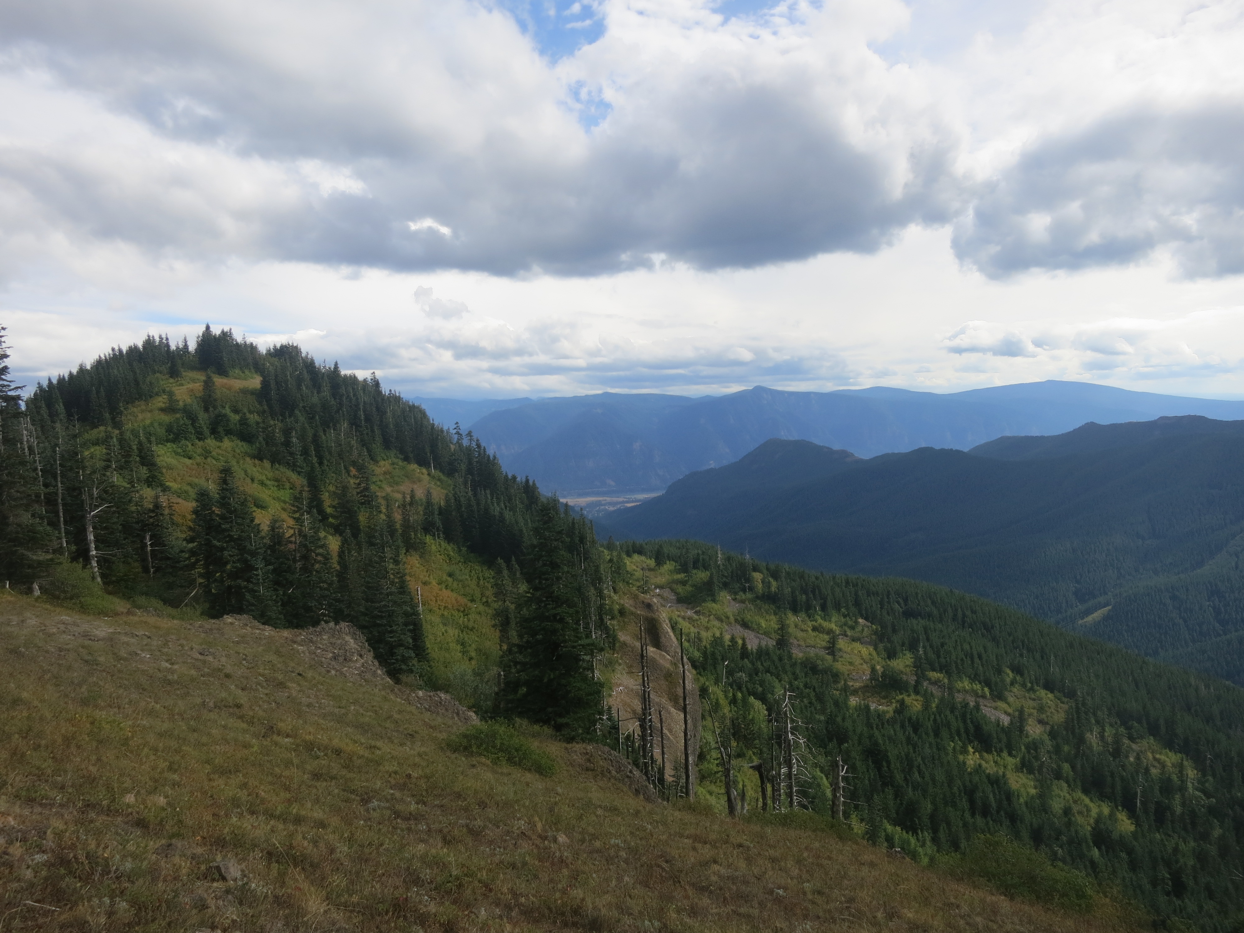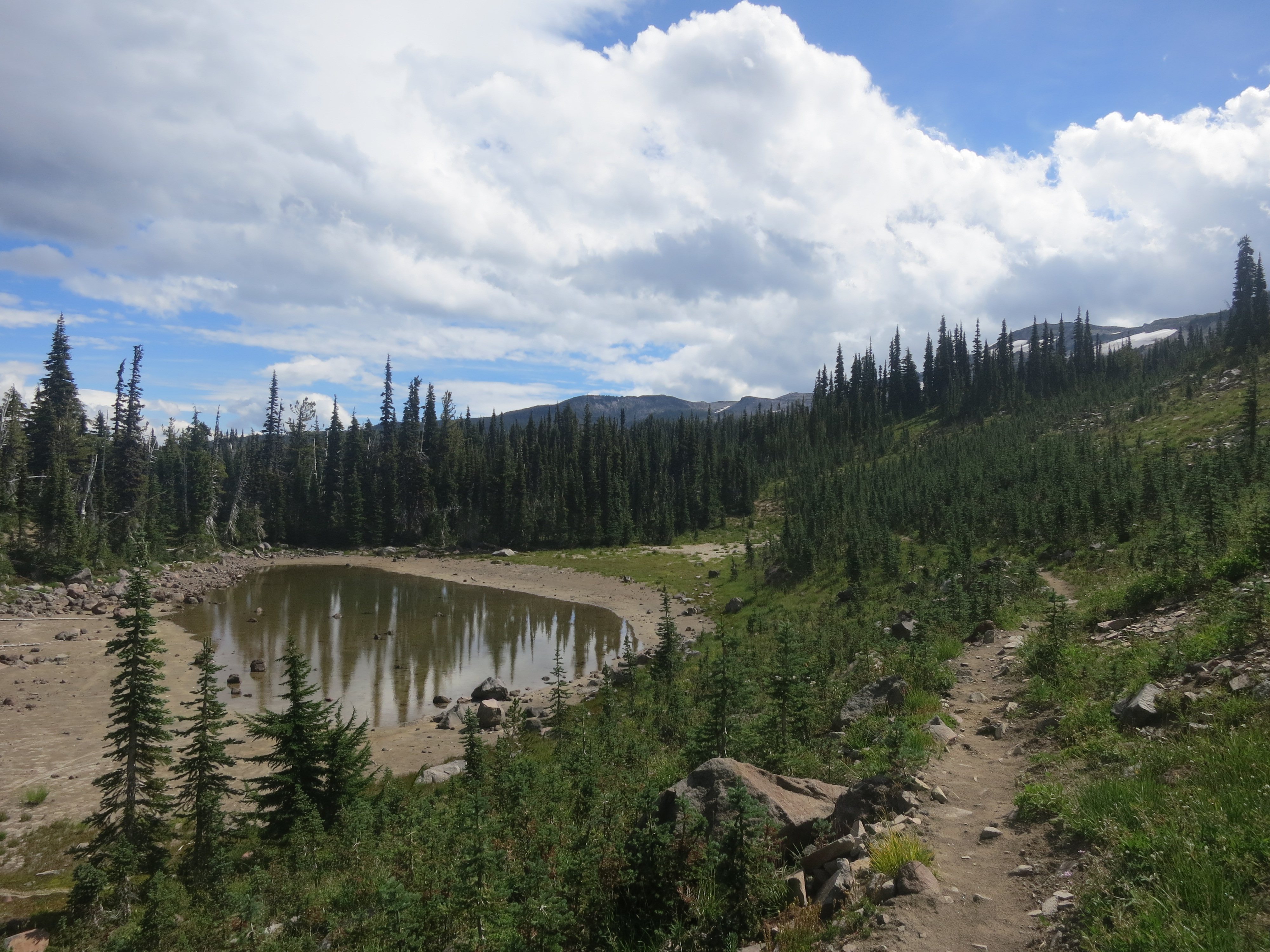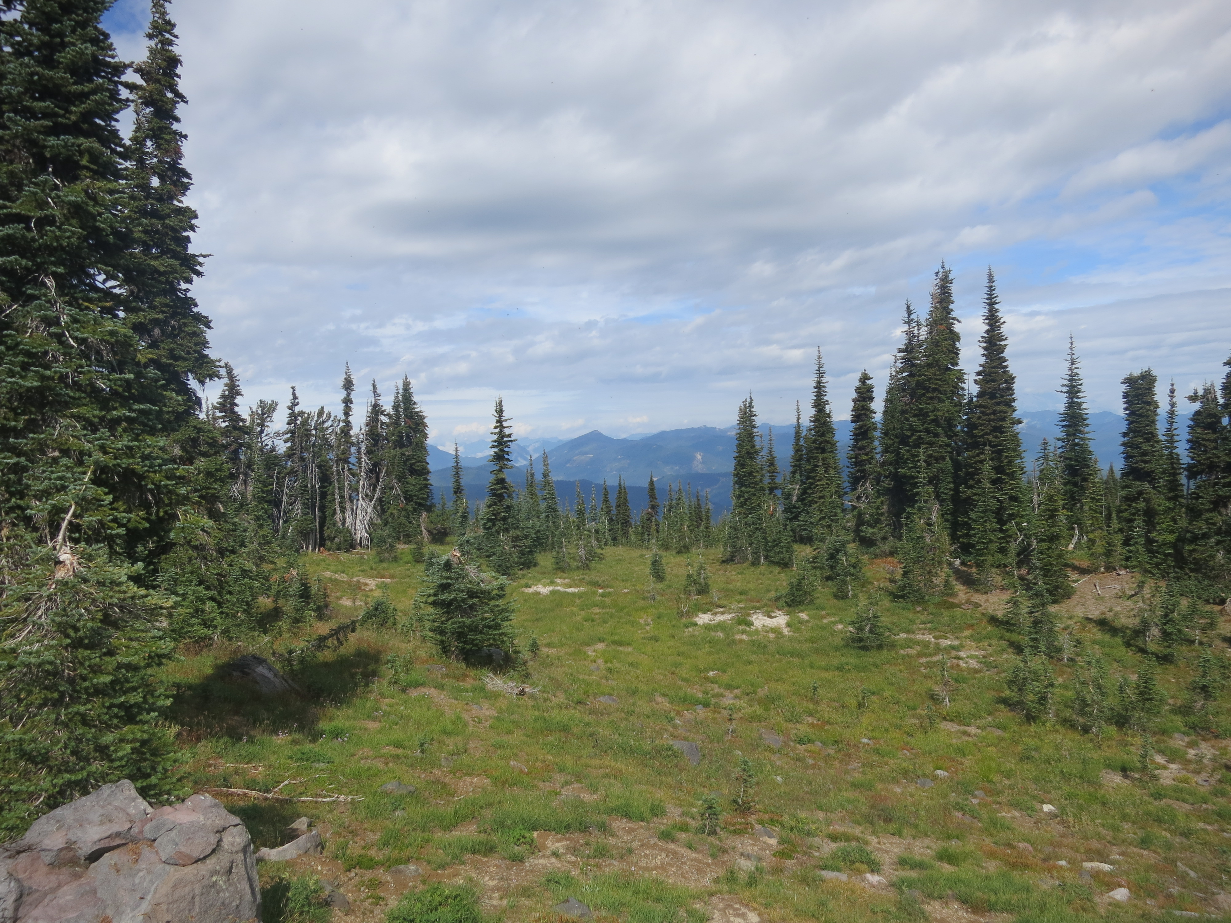 I thought it would be nice to have some company for the remaining 9 miles, but they urged me to go on ahead, as I would be faster. I figured that they needed some catching up time, as well. During the first mile or so, I thought about all of the lessons that I had learned on my journey and felt like I was having a lot of profound thoughts that I would have to share with people later. Then, the effect of the champagne wore off and I suddenly felt very, very tired and I quickly forgot all of my fascinating thoughts! How many miles did I have left? I wanted to get my heavy pack of my back! The trail climbed and still, the grey clouds hung low.