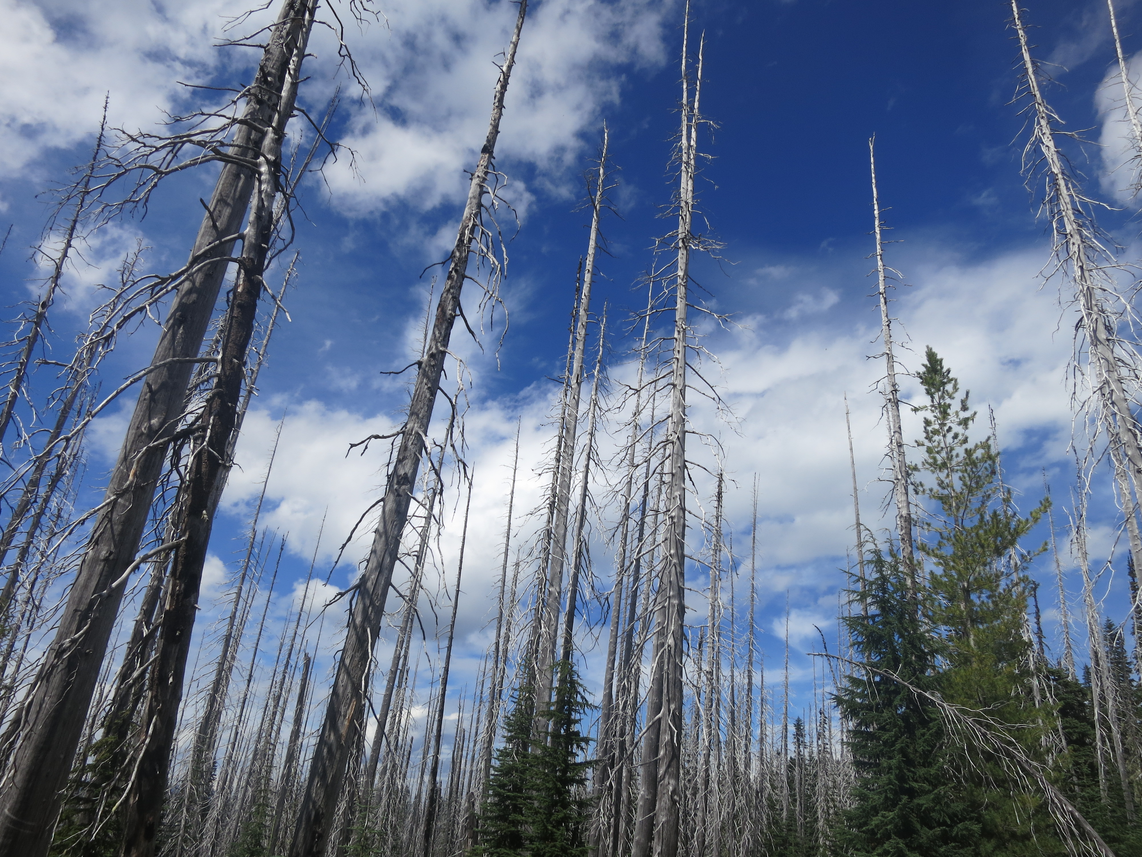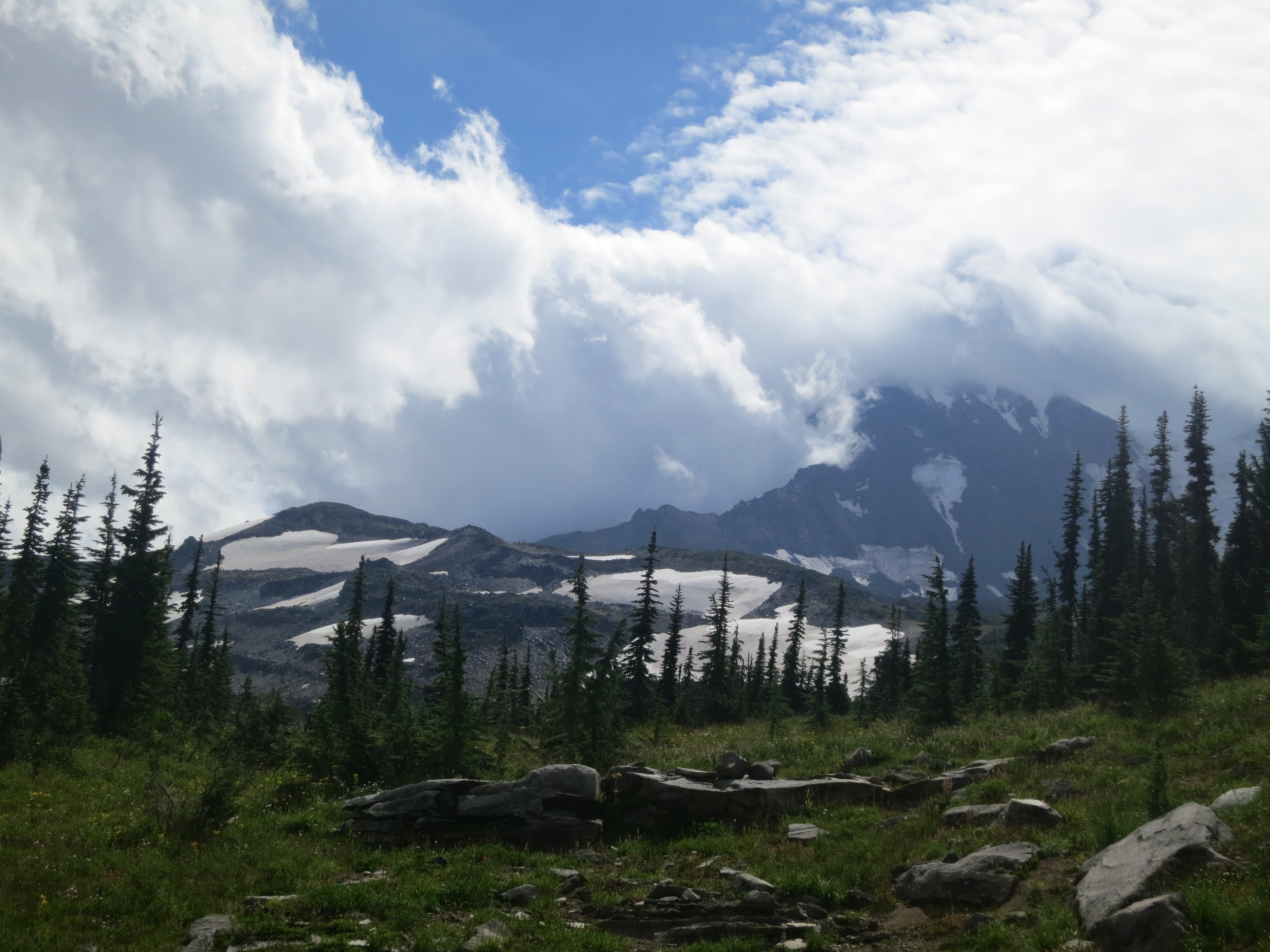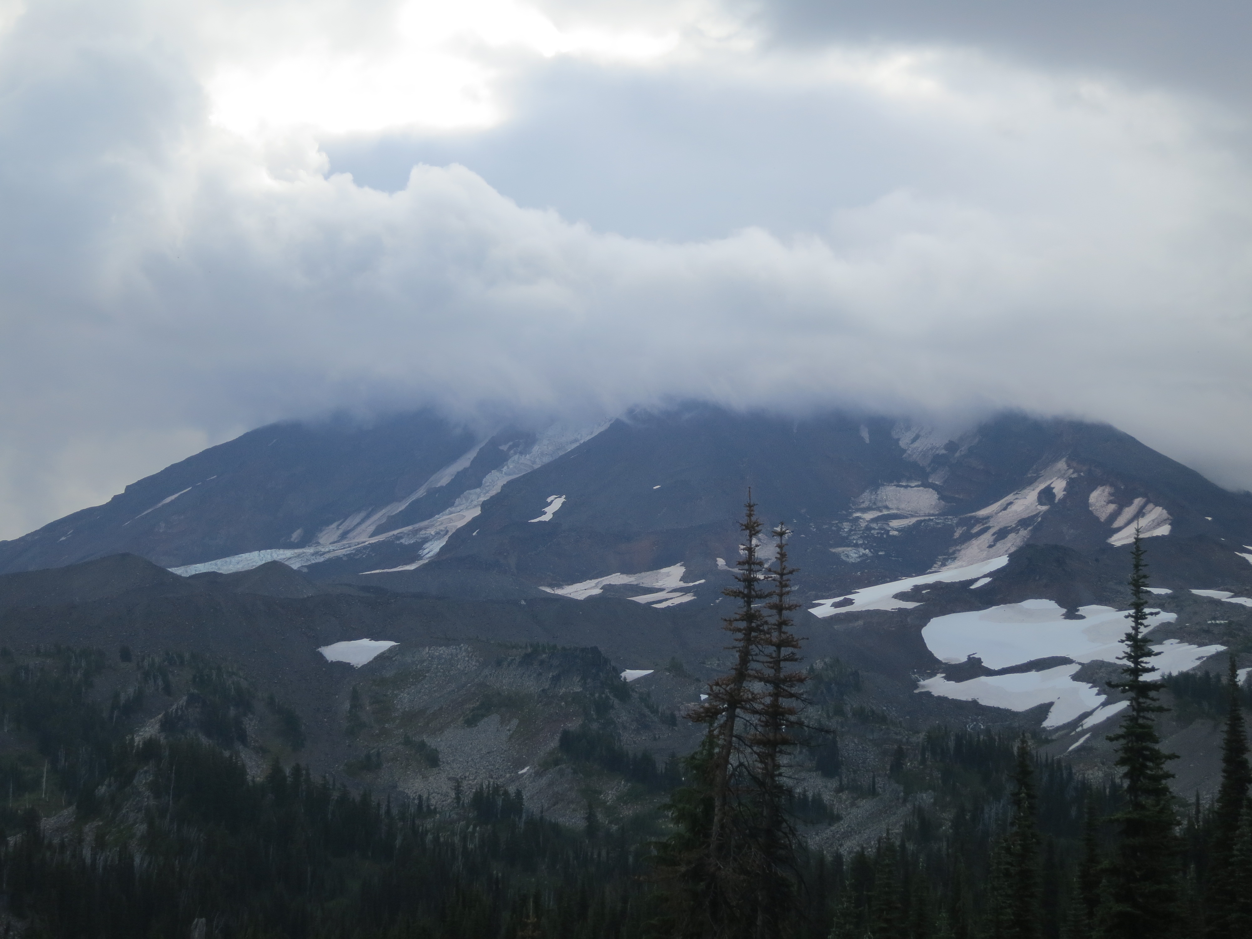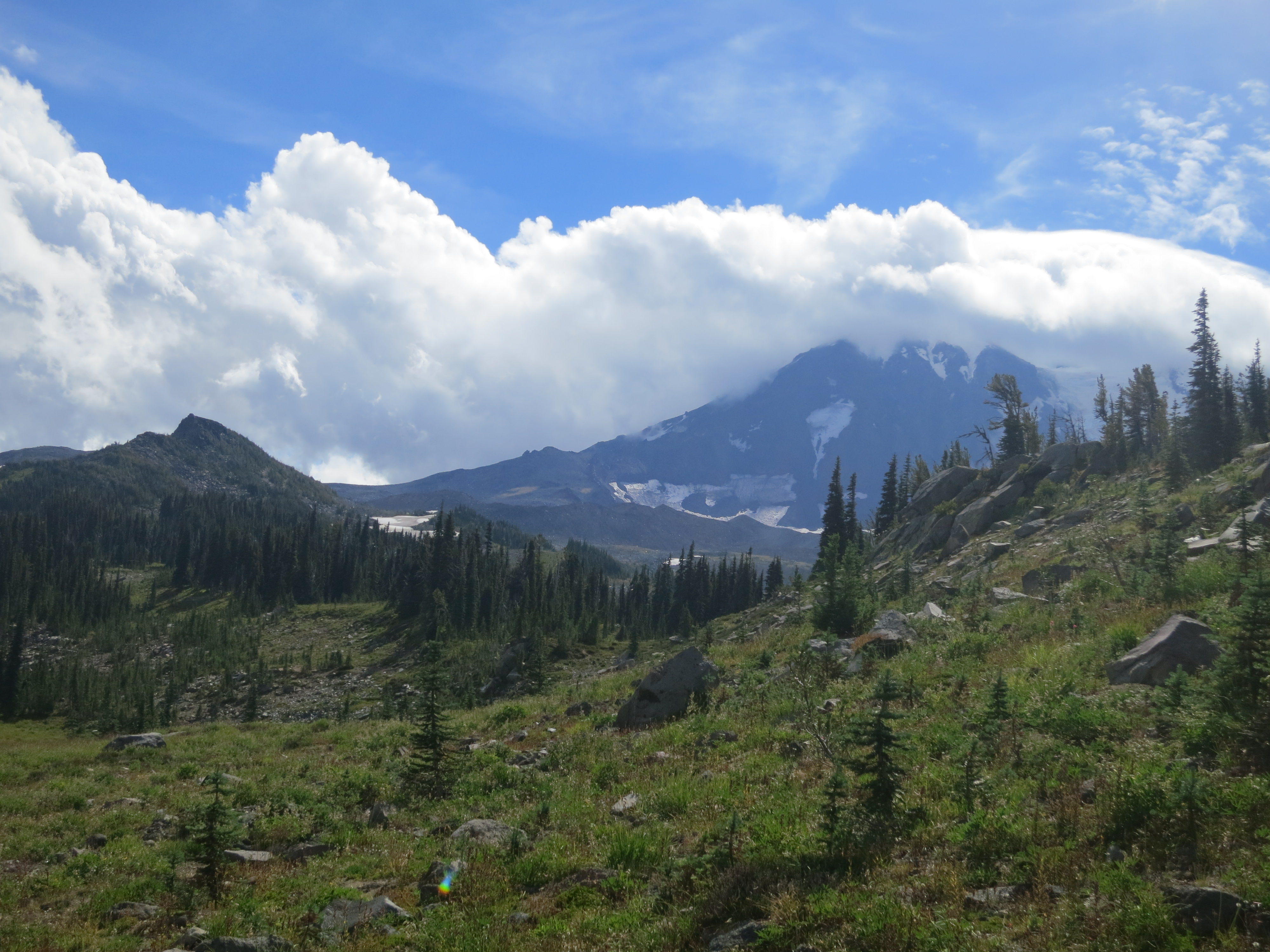 I thought it would be nice to have some company for the remaining 9 miles, but they urged me to go on ahead, as I would be faster. I figured that they needed some catching up time, as well. During the first mile or so, I thought about all of the lessons that I had learned on my journey and felt like I was having a lot of profound thoughts that I would have to share with people later. Then, the effect of the champagne wore off and I suddenly felt very, very tired and I quickly forgot all of my fascinating thoughts! How many miles did I have left? I wanted to get my heavy pack of my back! The trail climbed and still, the grey clouds hung low.