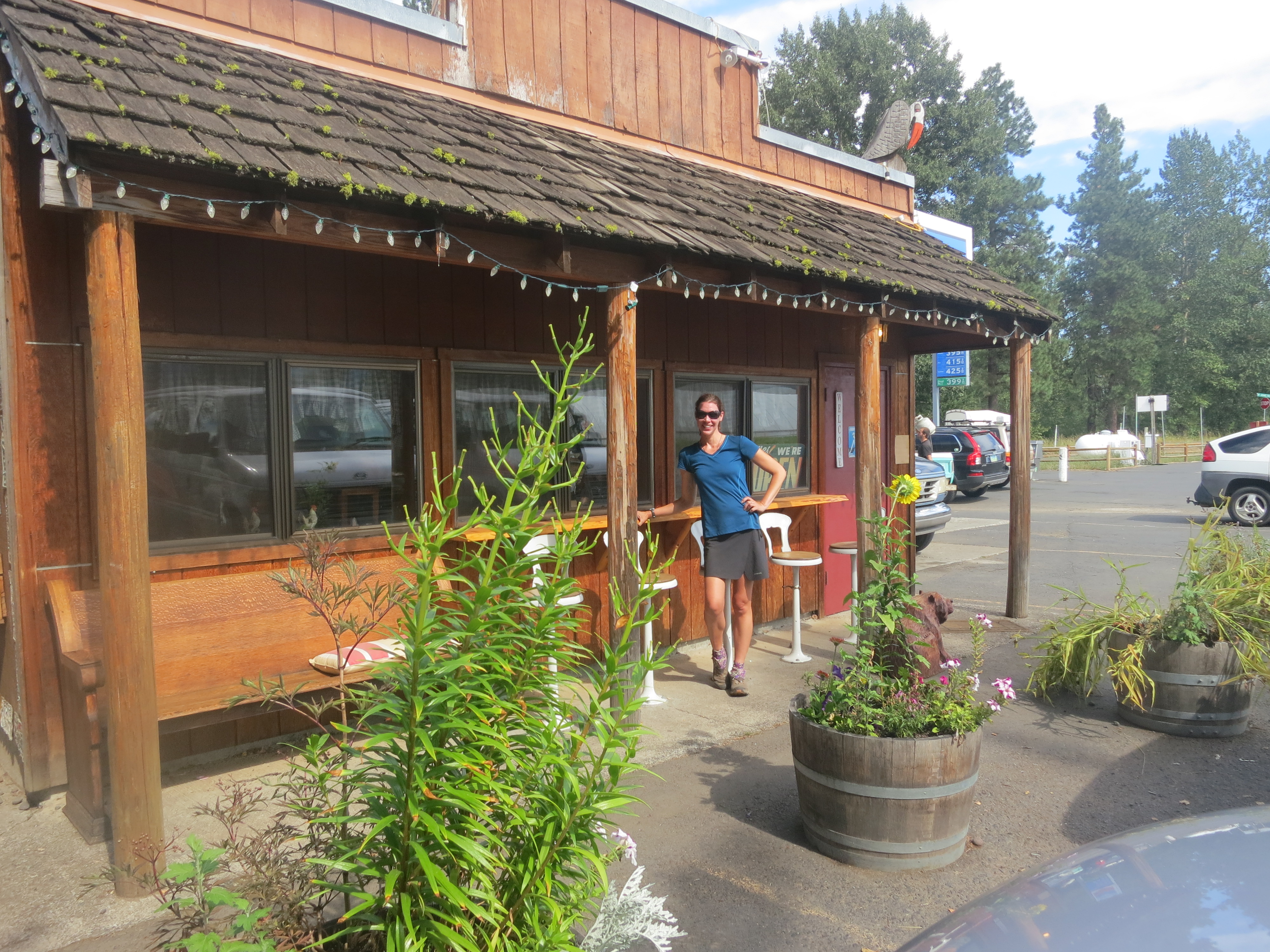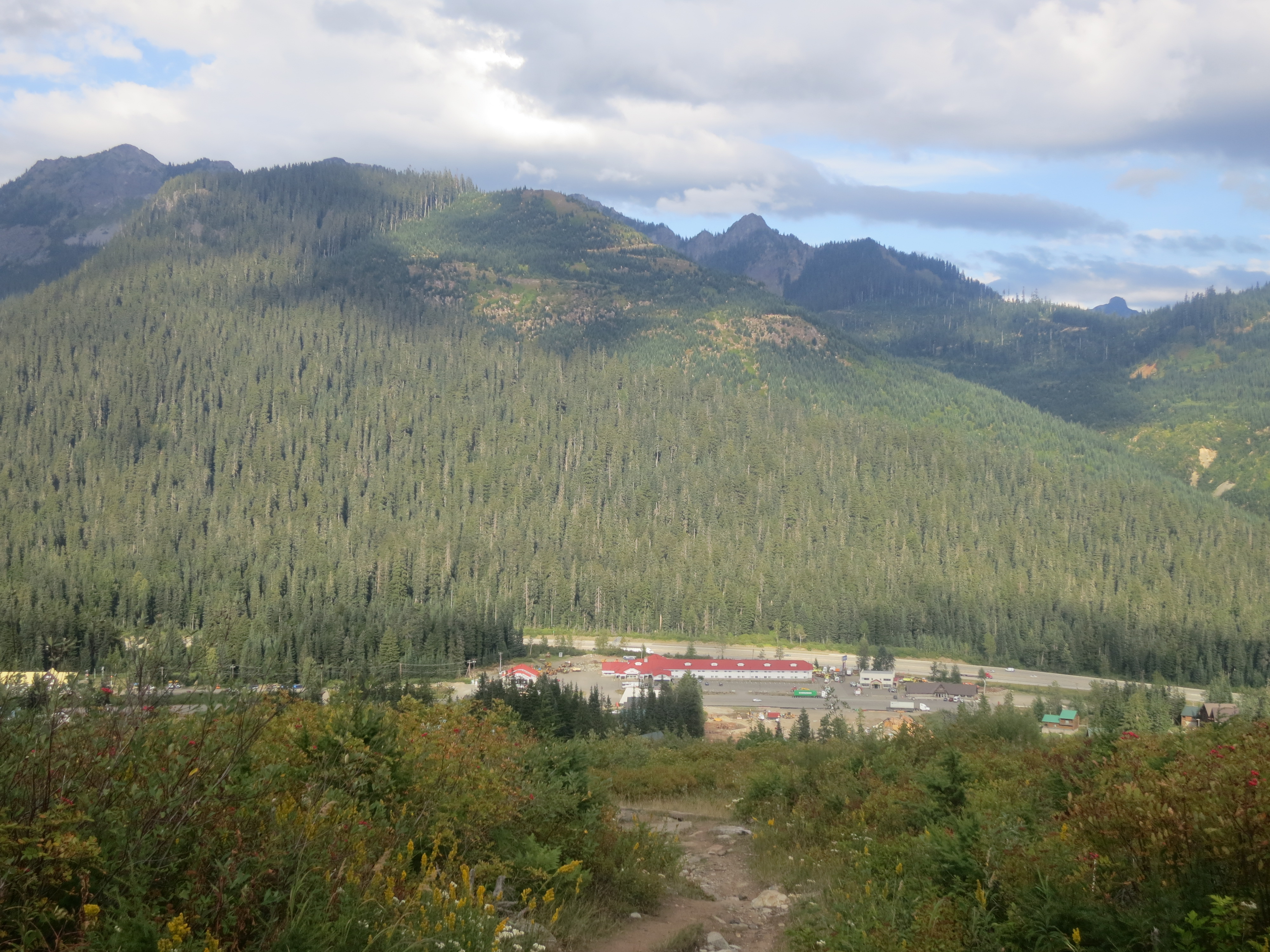 The remaining miles dragged on and on. Mrs. Haze had directed me on which way to turn, but I hadn’t really taken it in. Maybe I would get lost on my own. I followed the signs to the best of my ability, and when I got tired, found a little rock to sit on and eat another Snickers bar and take a sip of water from my dirty water bottle. The trail opened up to a wider path and then dropped down to wetter terrain. I had to step to the sides of the trail to avoid getting my feet wet. At last, I reached the road. After figuring out which way to turn, I hoped someone would offer to drive me the last mile to the lodge. No one did. Ever so slowly, and with all of the remaining energy I had, I finally reached Manning Park. I tried to figure out which building was the lodge, but chose incorrectly. A van driver said, “You look like you just walked a long way.” I nodded. He pointed me over to the lodge. Then, I saw Beads outside a white van. And before I knew it, TrackMeat was making his way over! Everyone was still here! They were all waiting to get a ride to Vancouver on the floor of Story Time’s converted van. I still hadn’t taken my pack off because it was raining and I just wanted to get inside. They invited me to go with them, but I said I was going to spend the night here and take the bus to Vancouver in the morning.