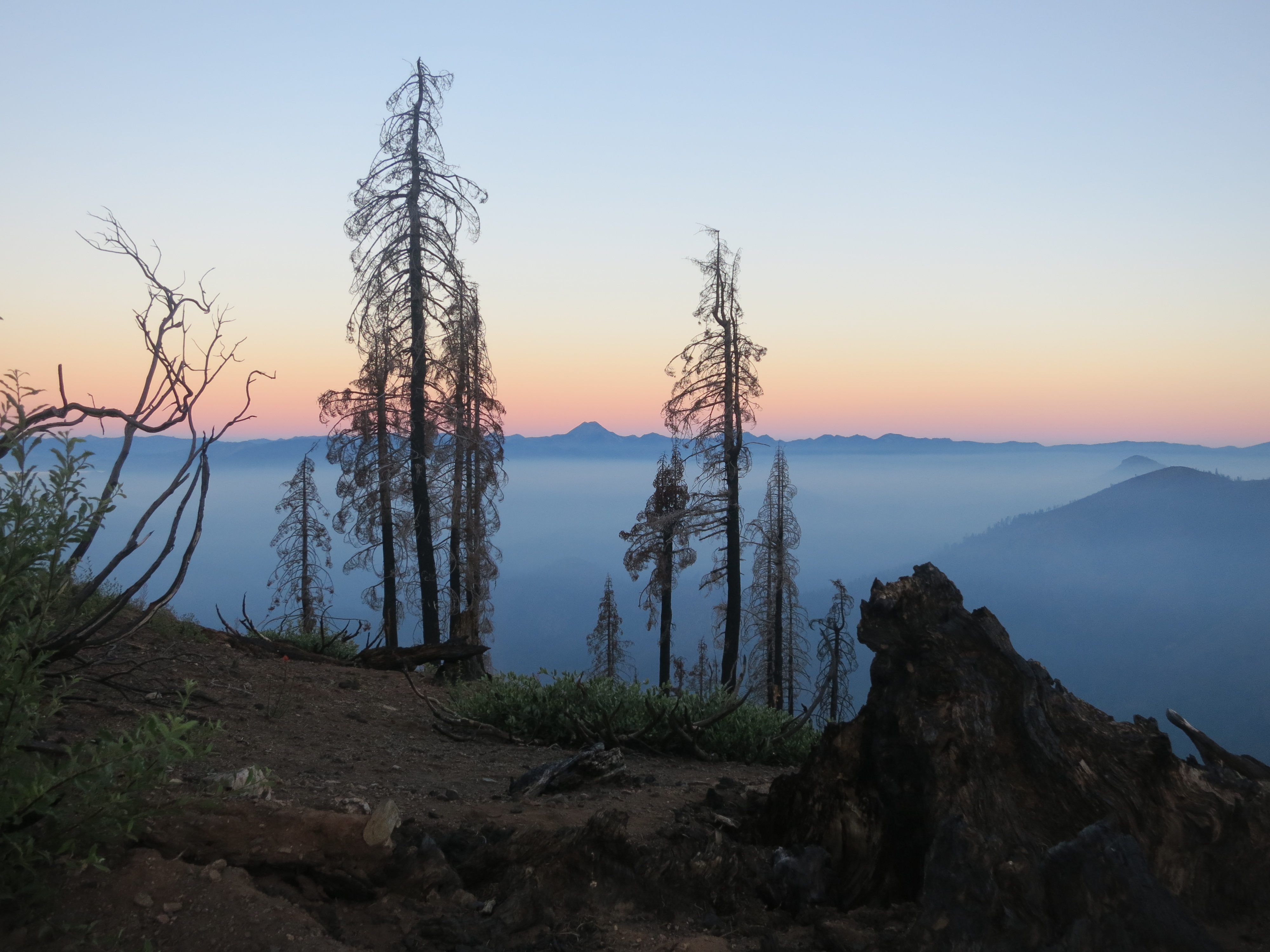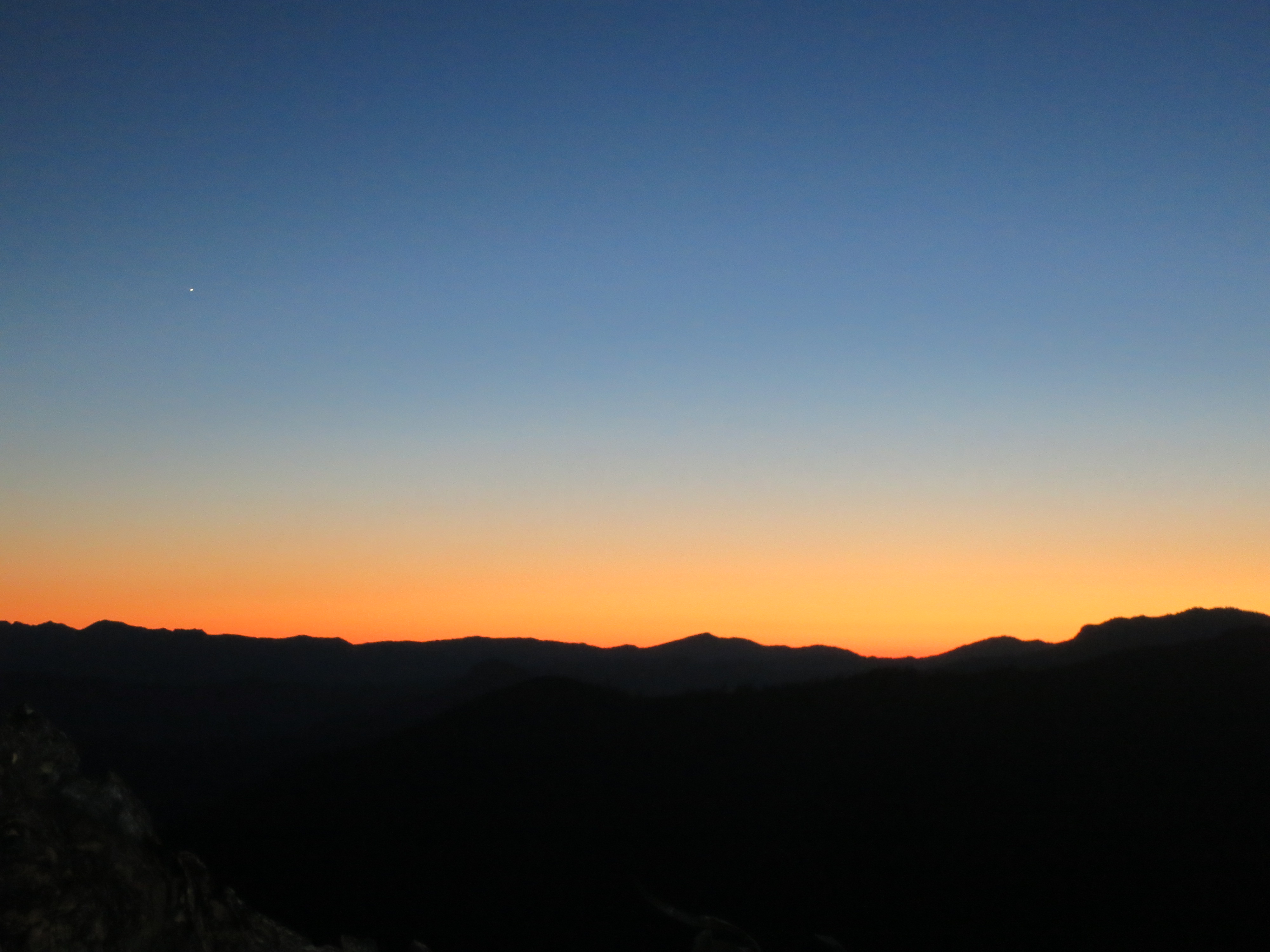 Just as I started looking for a place to go the bathroom, 4 happy section hikers headed along the path above me. Great… Luckily my body was able to hold out. One of them commented to another on the magnificent sight of the rising sun. I tried to look through the trees, but couldn’t see anything.