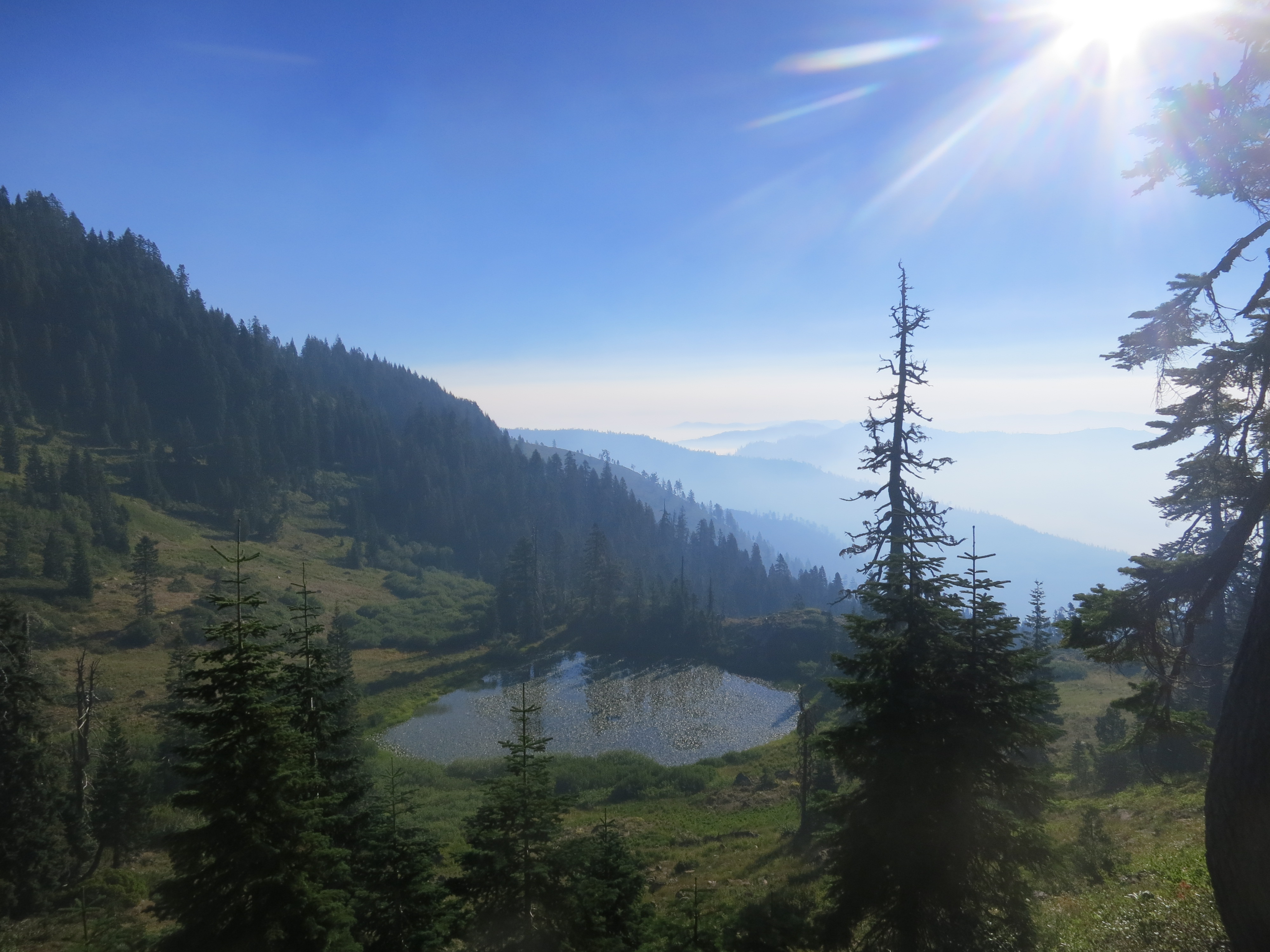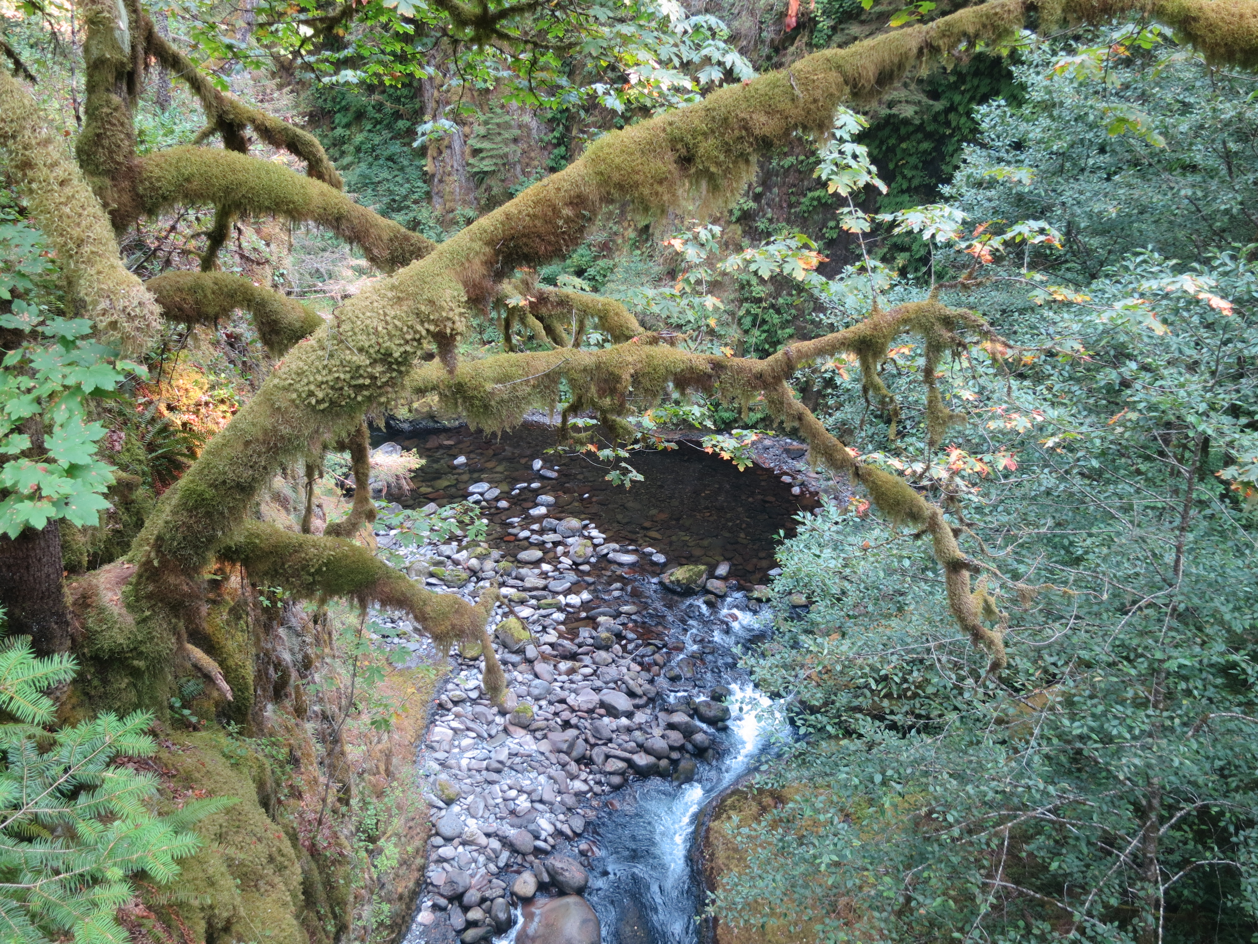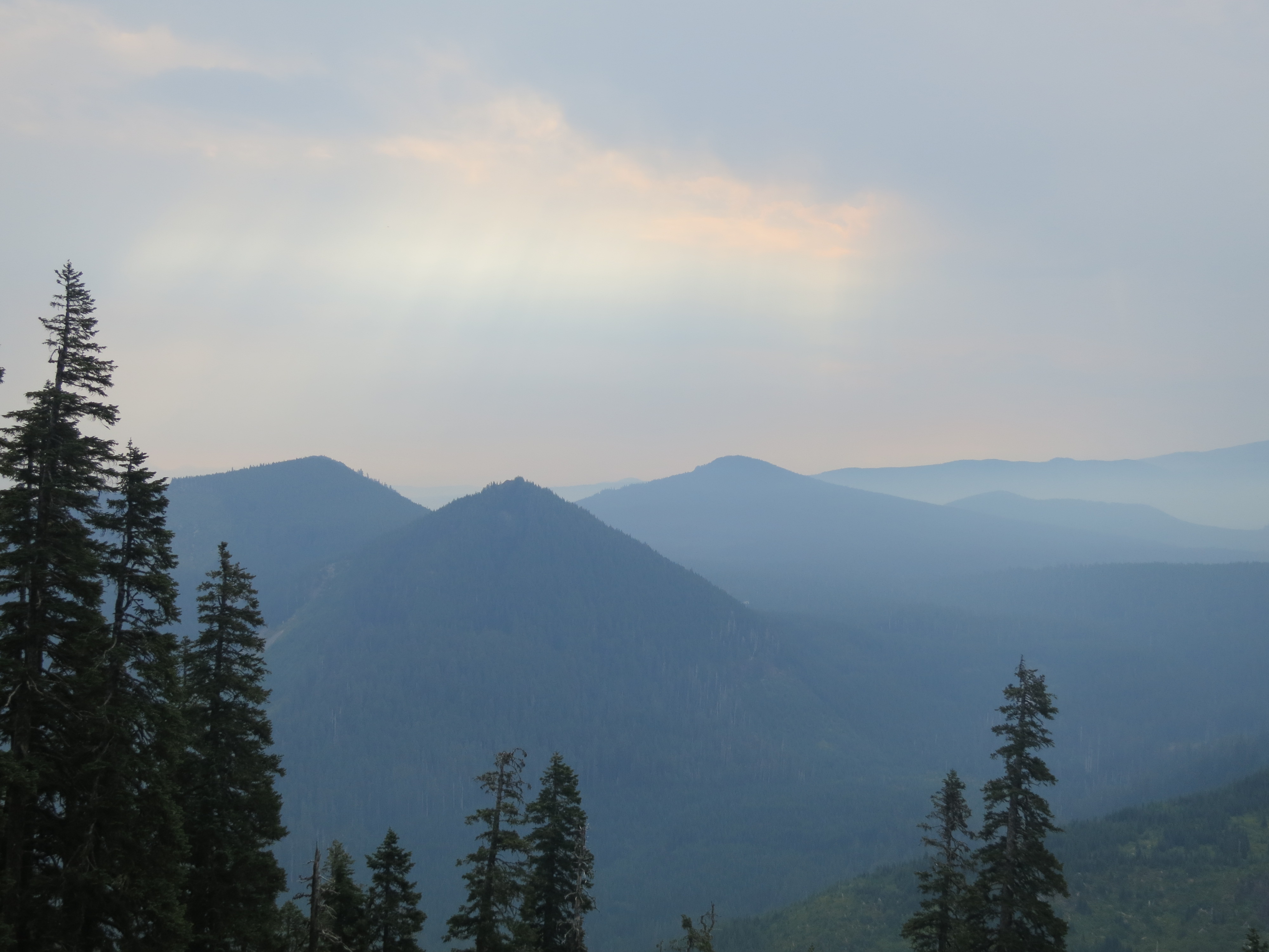 When I got tired, I climbed up a bank and sat on a dusting of pine needles under a tree to partially shelter me from the rain. This was going to be a trying day. After a snack, I continued down the steep trail and finally reached the Eagle Creek trail. I felt extremely tired and down because of the rain. A previous thru-hiker had told me that this trail was the “best of the best”, but I didn’t find it so amazing. Maybe it was due to my mood, my sickness, the weather, and just plain exhaustion. I encountered two young guys heading the opposite way. One asked me if I had come all the way. I scrunched up my face and asked him what he meant. He asked if I had hiked all the way to the pond. “The pond?! I hiked from Mexico!”. He then scrunched up his face, unable to comprehend what I had just said. His friend nonchalantly said, “Yeah. She’s hiking the Pacific Crest Trail.” The other one had never heard of it.