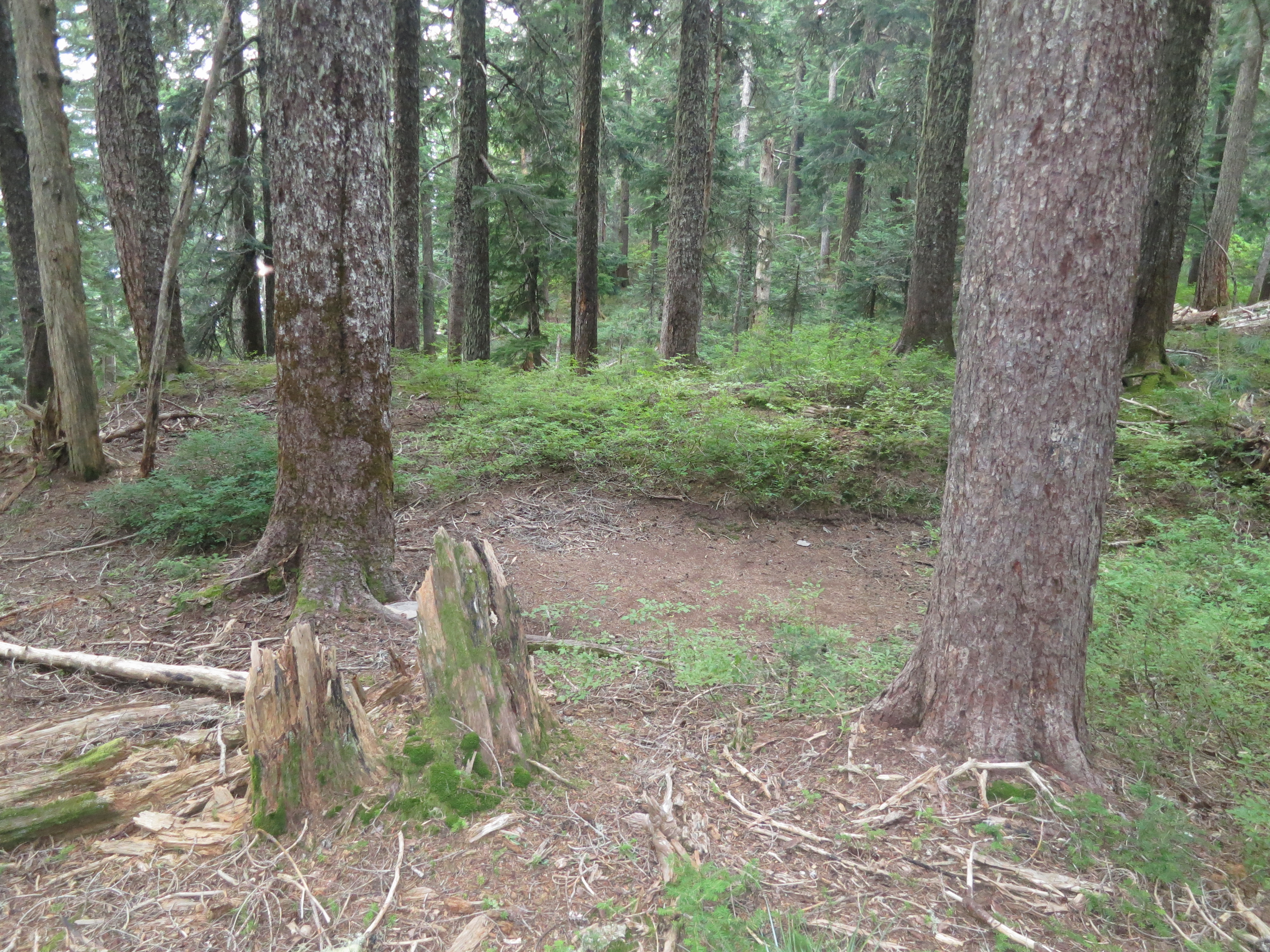 As I climbed to the top of the next ridge, dark clouds covered the sky. Drops of rain began to fall a few minutes later. I decided to just kept going, rather than stop and put on my rain gear. Within minutes, thunder boomed over my head and bright lightening bolts shot down right in front of my face! The storm was directly over me! It was time to run! I moved as fast as I possible could with a thirty something pound pack on my back, allowing the adrenaline to overpower any fear. At last, I found myself back in the safety of the trees. I felt grateful. I took off my pack and dug out my rain clothes. Then, I headed on towards the Indian Springs campground. Only because I had read the directions multiple times beforehand was I able to find the trail. The entrance was obscured with low hanging branches. There was a nice spring on the side of the trail, but I was too cold and wet to stop and collect water. I had to keep moving.