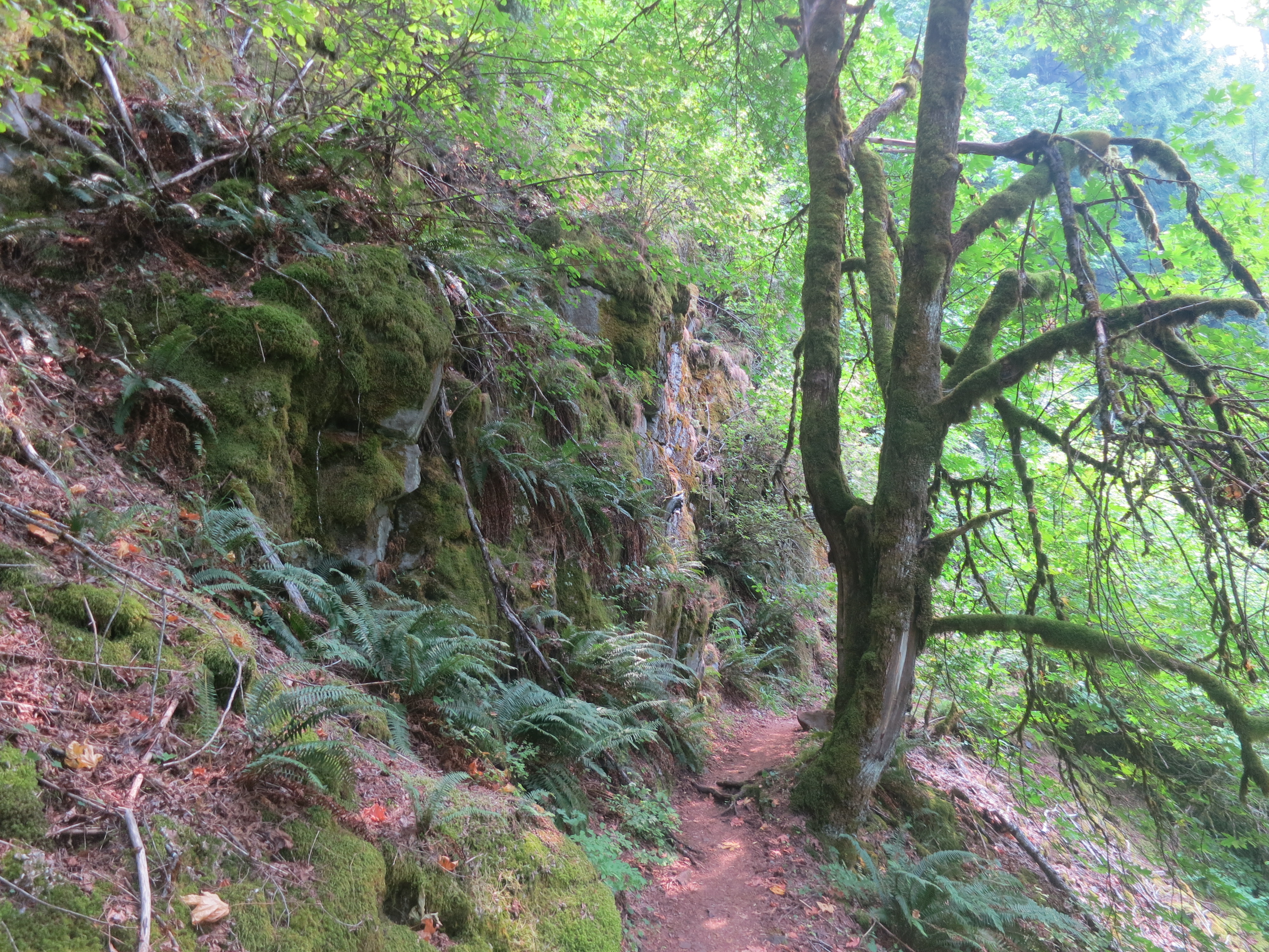 Then, I started my way back to the trail. I walked on and on, feeling more drained with every step. At last, I made it out of the woods and on to a paved road. I still had to make my way to the trailhead. The guy that encouraged me to take the lower punchbowl path asked me if it was worth it as he lounged on a swing. “I guess so.” Two thru-hikers who I didn’t recognize were being picked up by their parents. I wasn’t offered a ride. Instead, I continued walking down the road, looking for the next side trail that would lead me into Cascade Locks. I eventually found it and followed it through the woods and back onto a road. It was once a scenic driving road that had now turned into a historical landmark with informative signs along the way.
