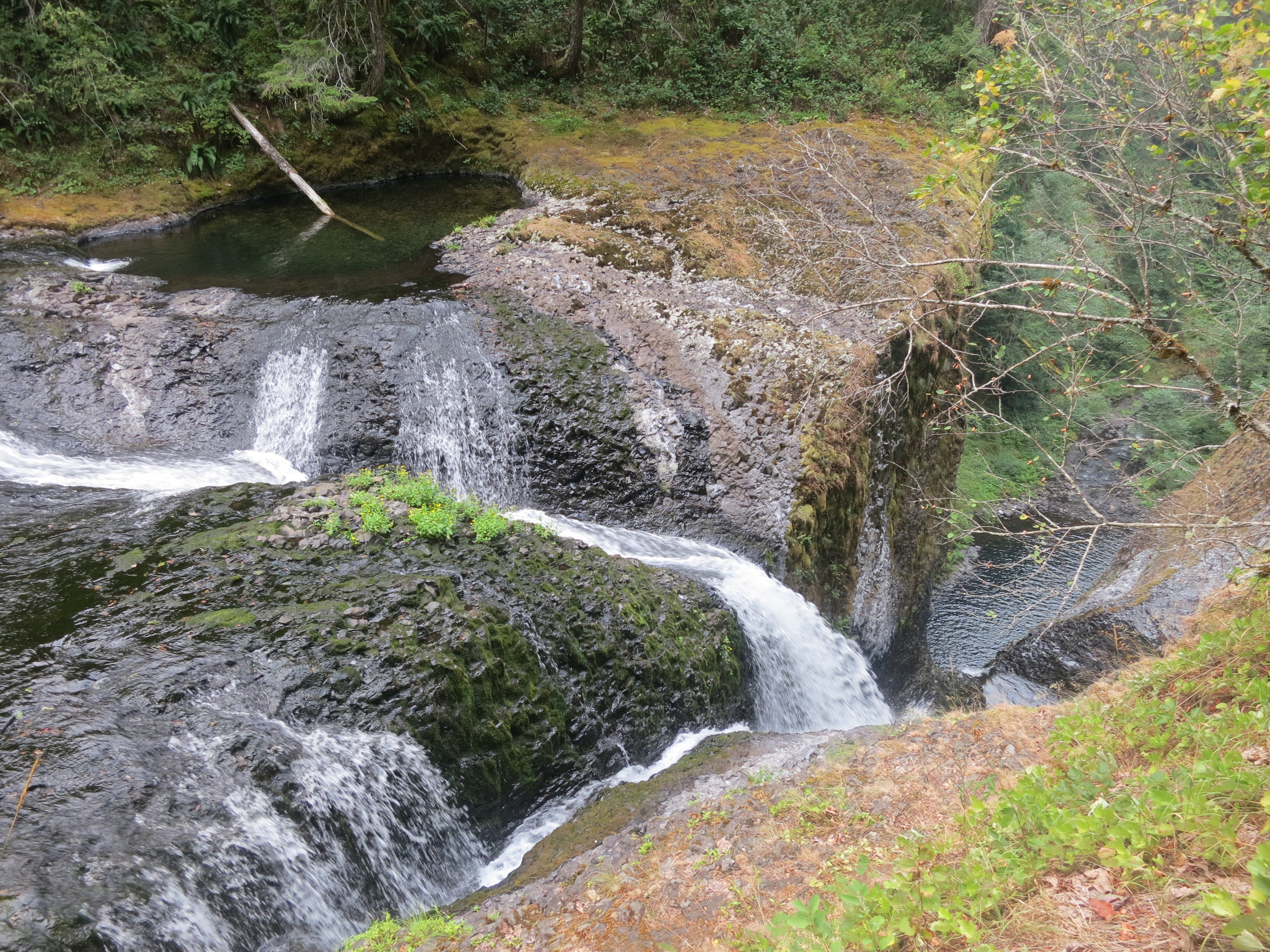 After nearly five miles, I reached the upper Punchbowl falls. Maybe I wasn’t seeing them from the best viewpoint, but I wasn’t impressed by what I saw here, either. I continued on until I reached an intersecting path to the lower punchbowl falls. I wondered what I should do… I finally decided to take the path for at least a little ways. When some people came up, I asked how far away they were and if it was worth it. I was told that it was worth it and that it wasn’t too far. I continued down the steep path, knowing I was going to have to climb back up. Four teenagers were jumping into the water, ignoring all of the posted signs not to do so. I walked on and came to a shallow pool of water with a view of the falls.