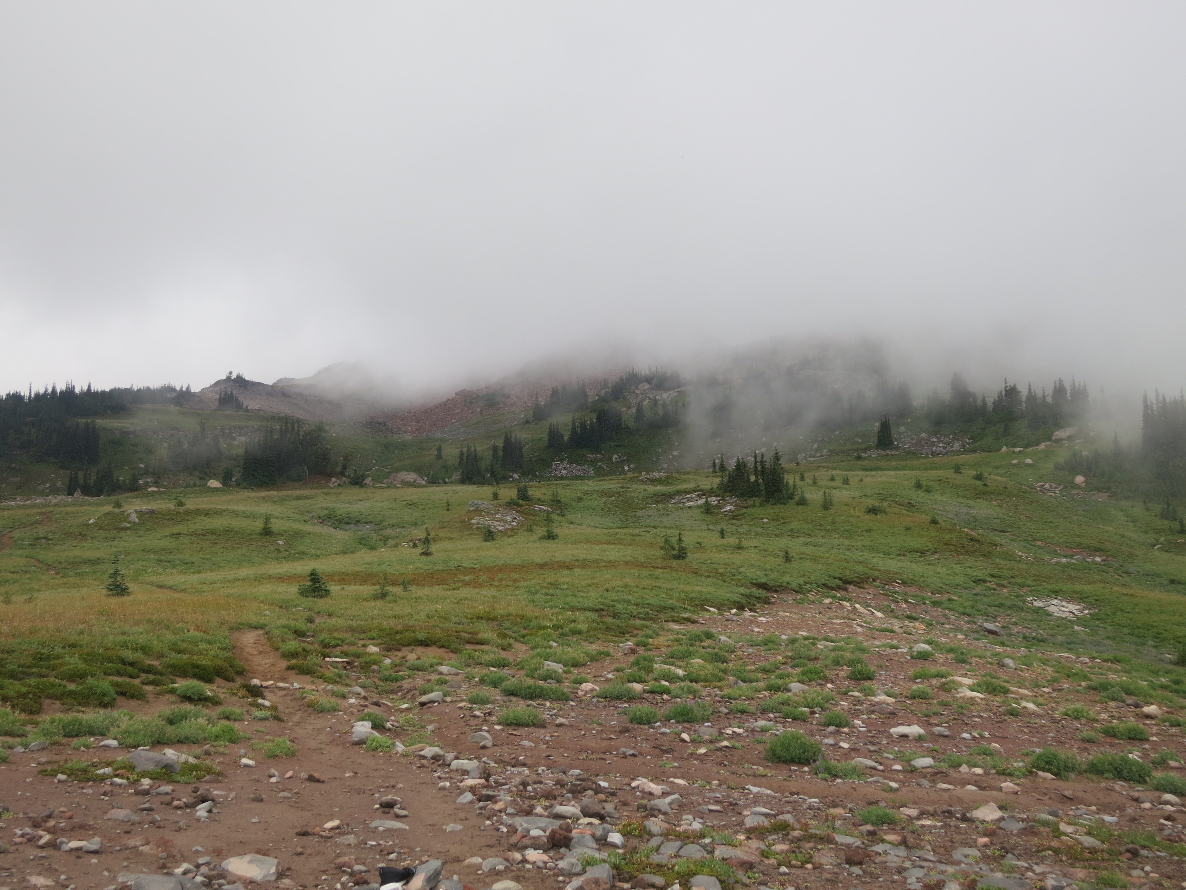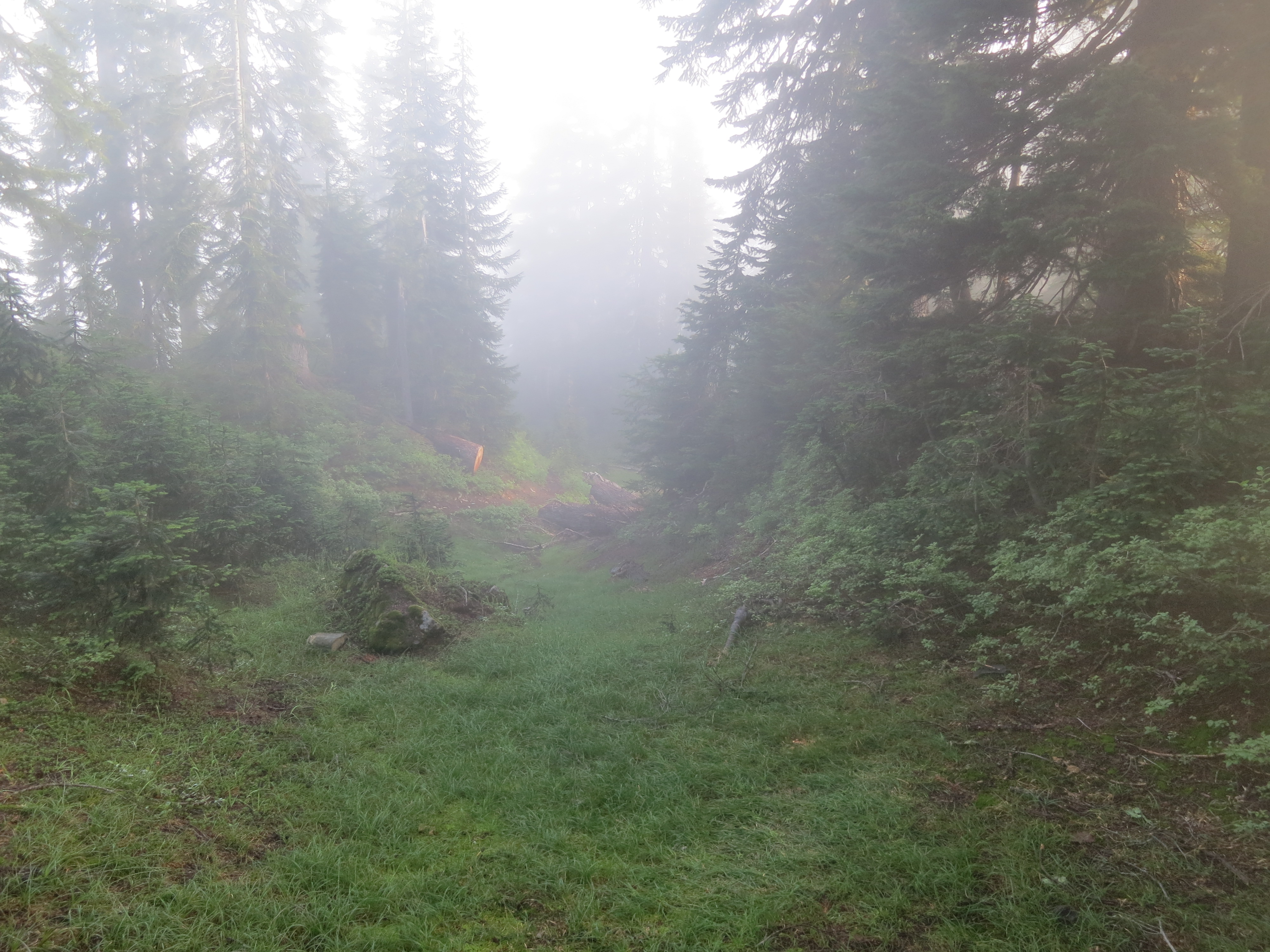 I headed back to the muddy trail through the little berry bushes, descending to the bottom of the hill, where I originally planned to reach last night.