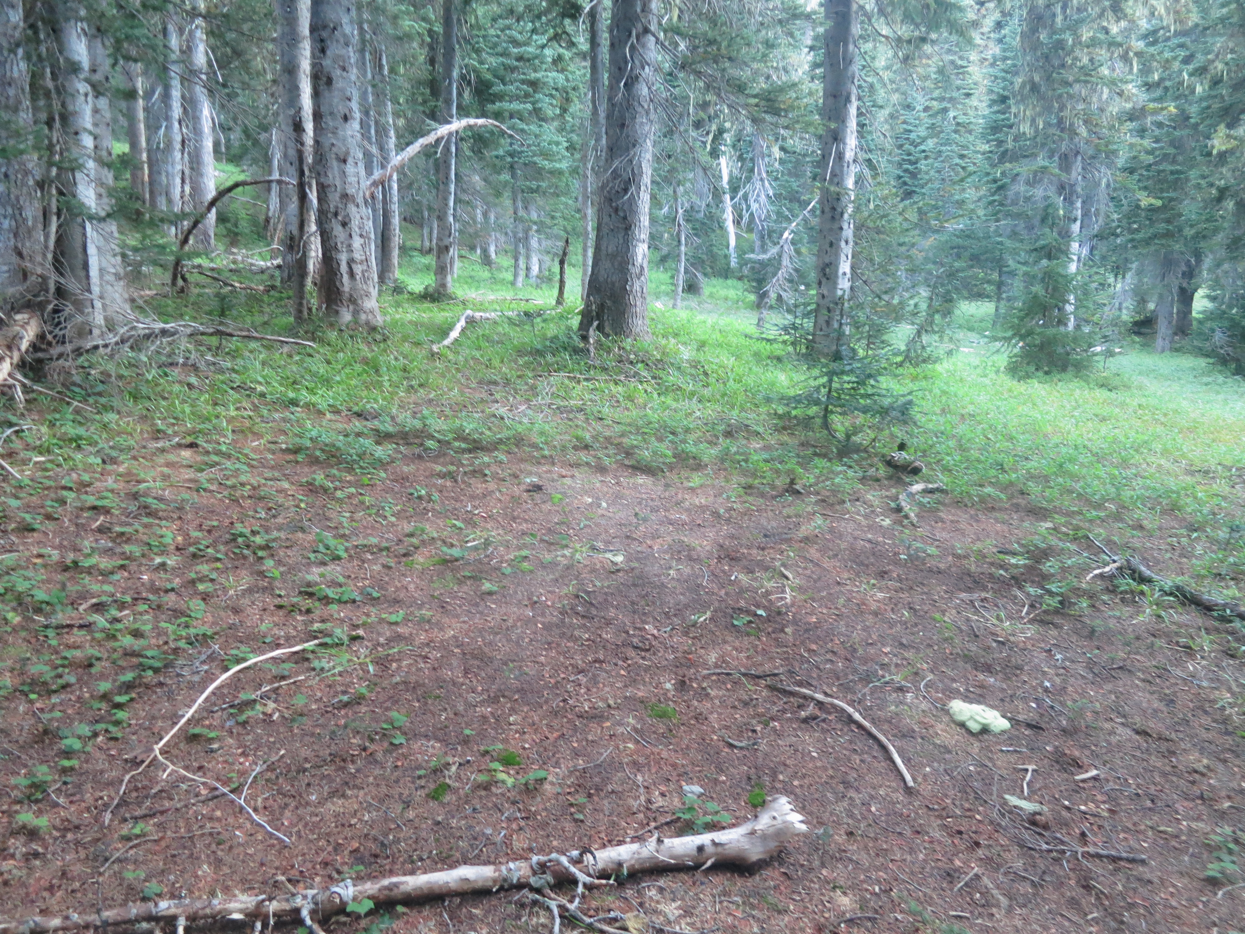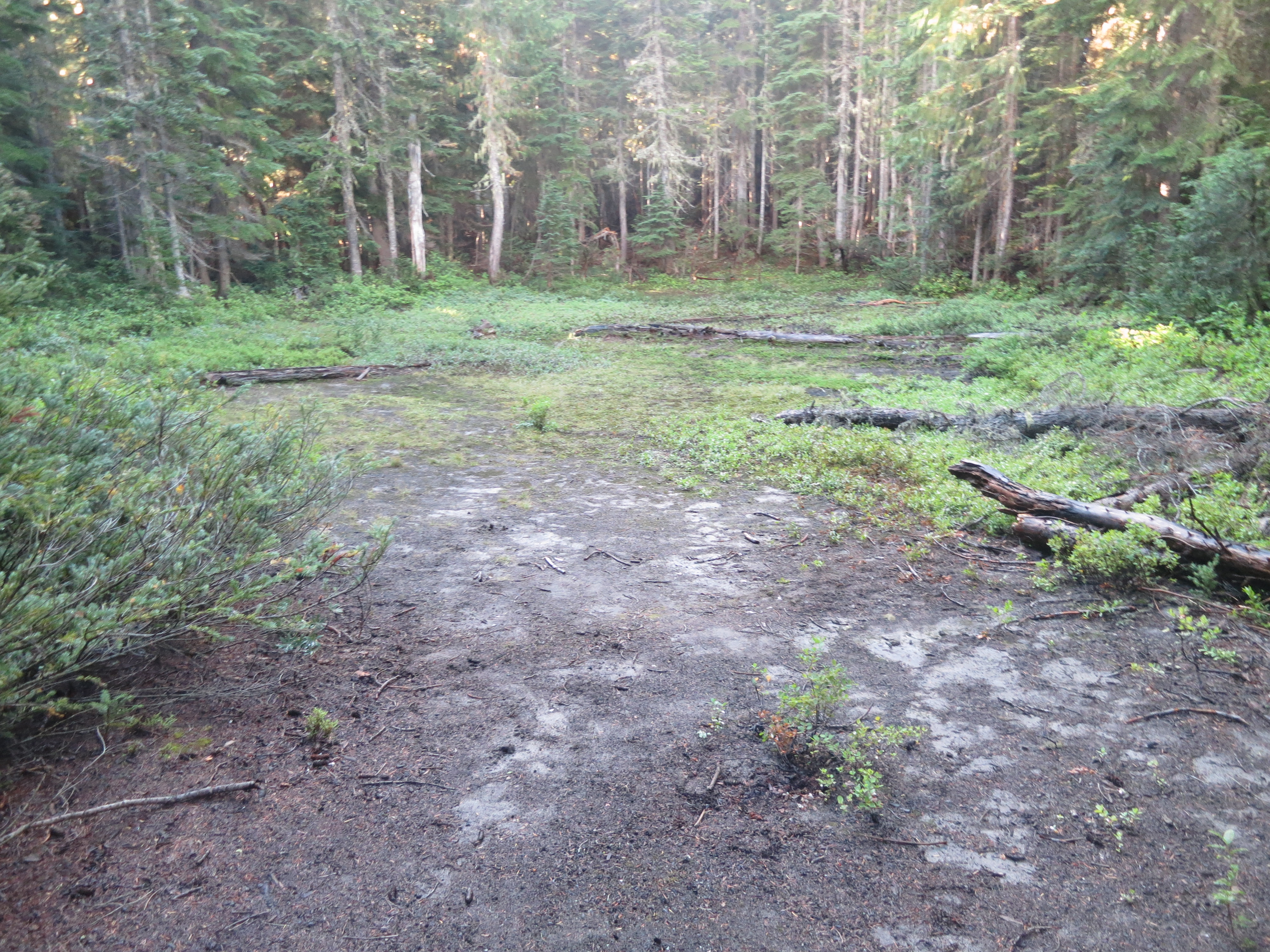 I walked through a grassy area littered with big rocks and unsuitable for camping. Then, when I did not expect it, I saw a square piece of bare dirt just to the side of the trail. I guess this was my spot for the night!