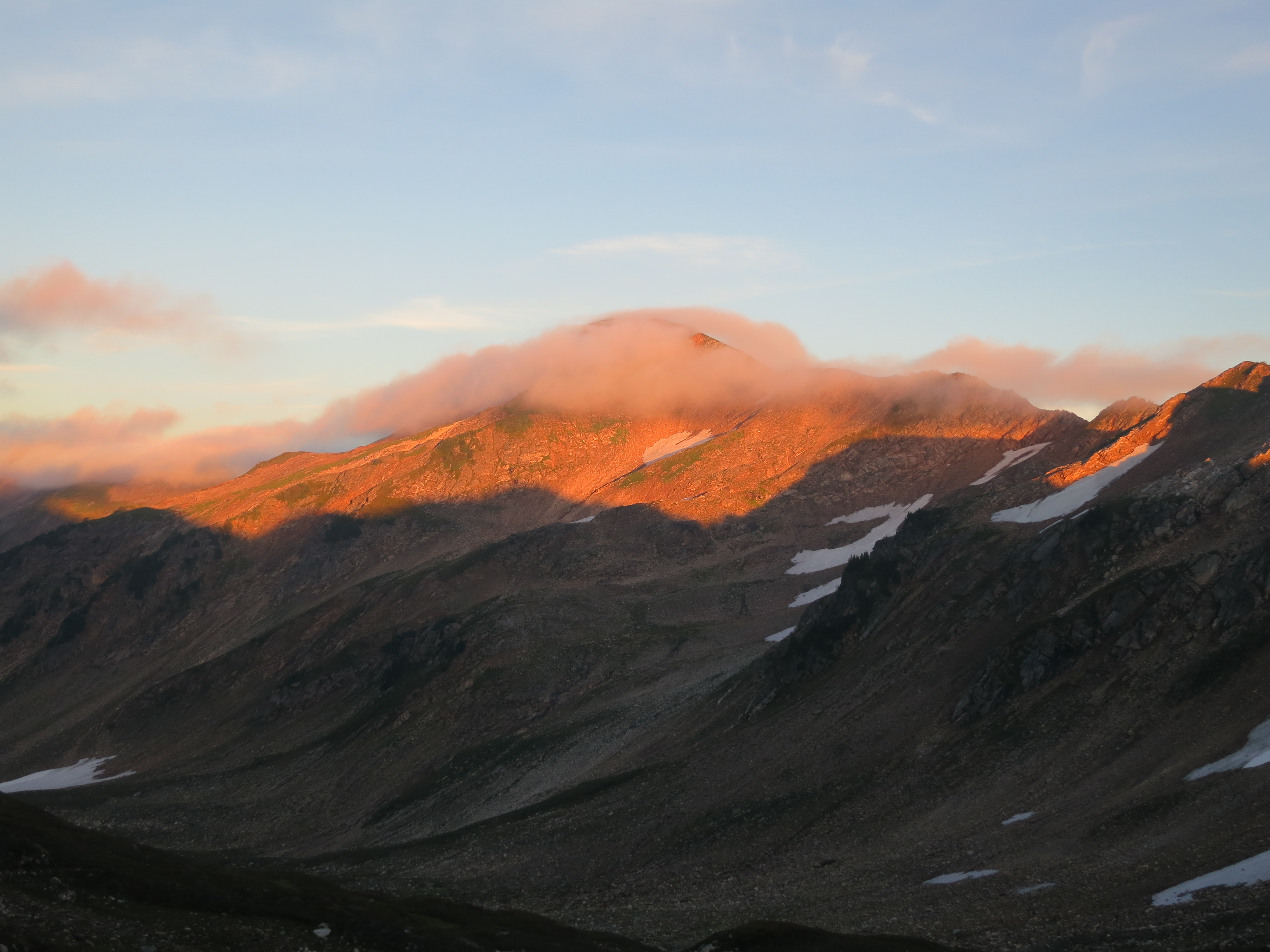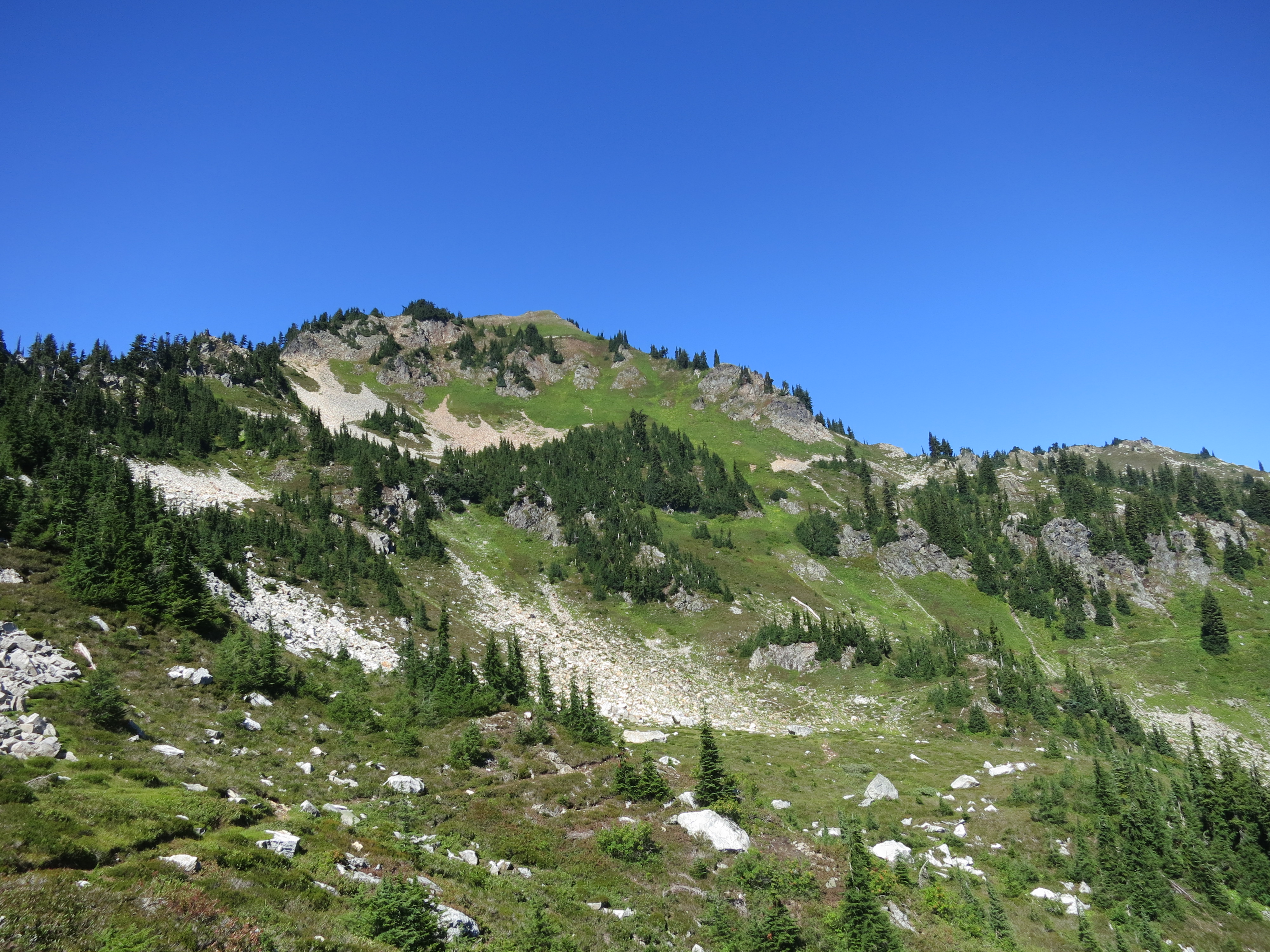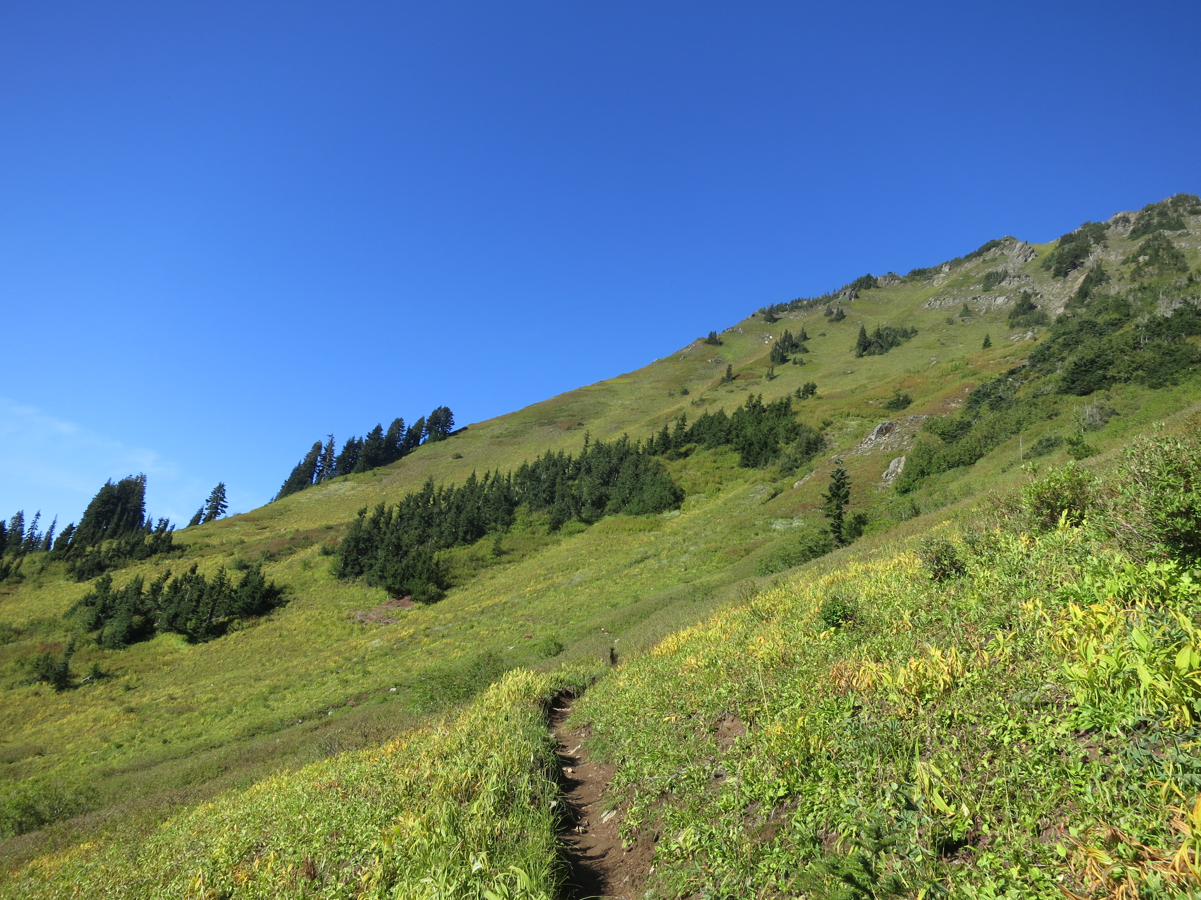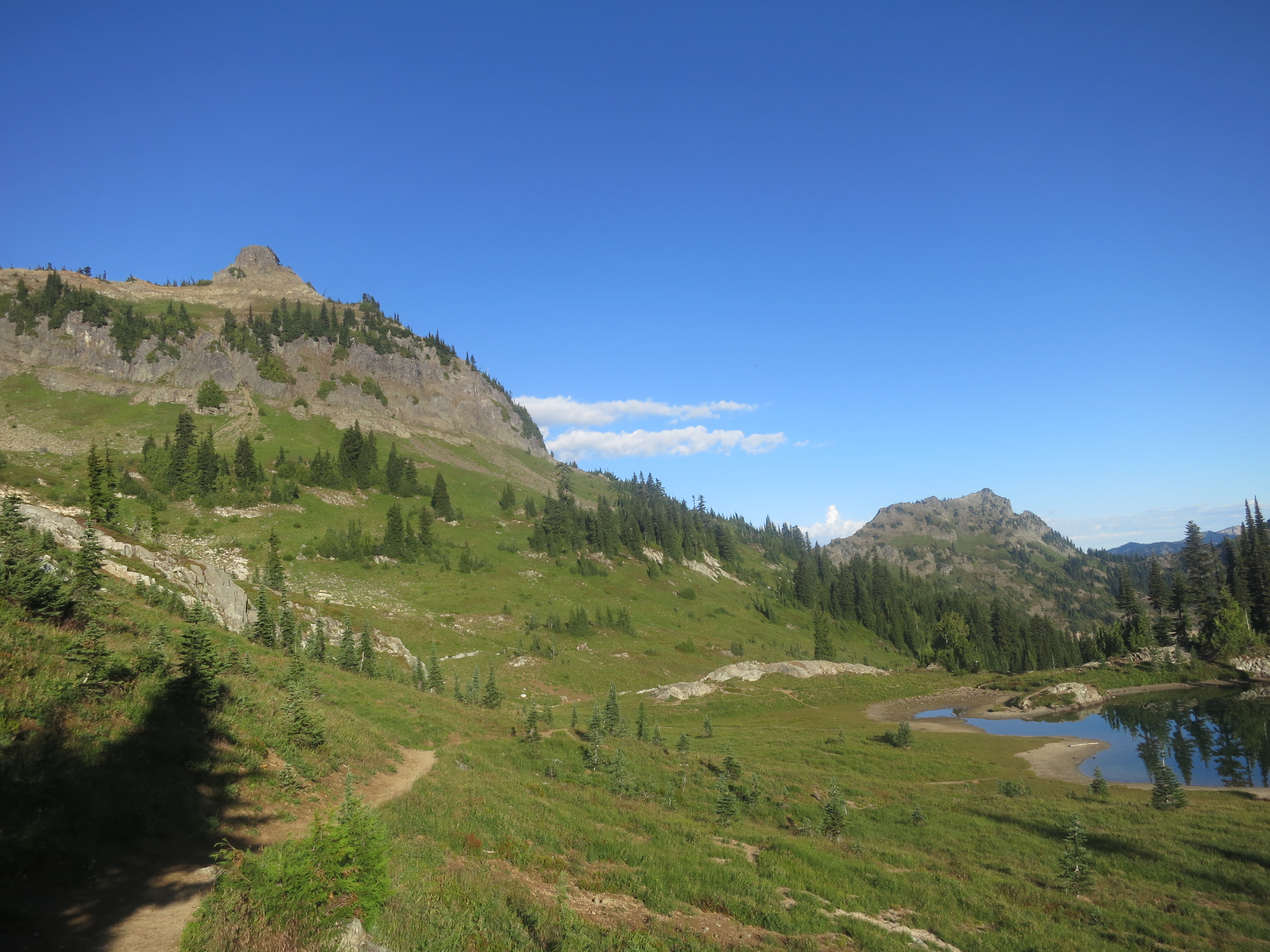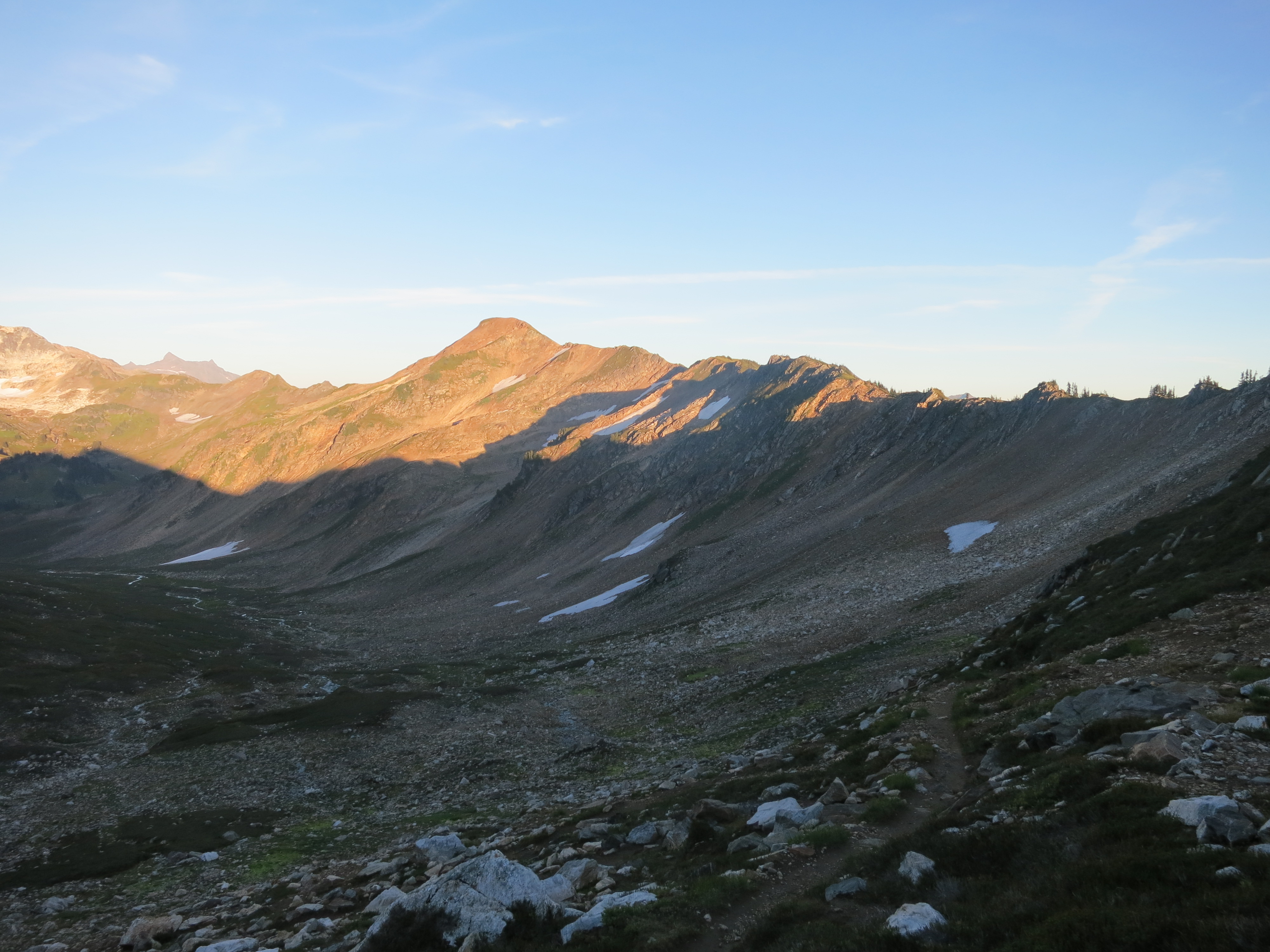 Several minutes later, I met a woman headed south. She said I was the first person she had seen today and told me that she was going to camp at the lake. She asked if I planned on getting over the pass tonight and told me that one of her favorite camping spots was on the other side.