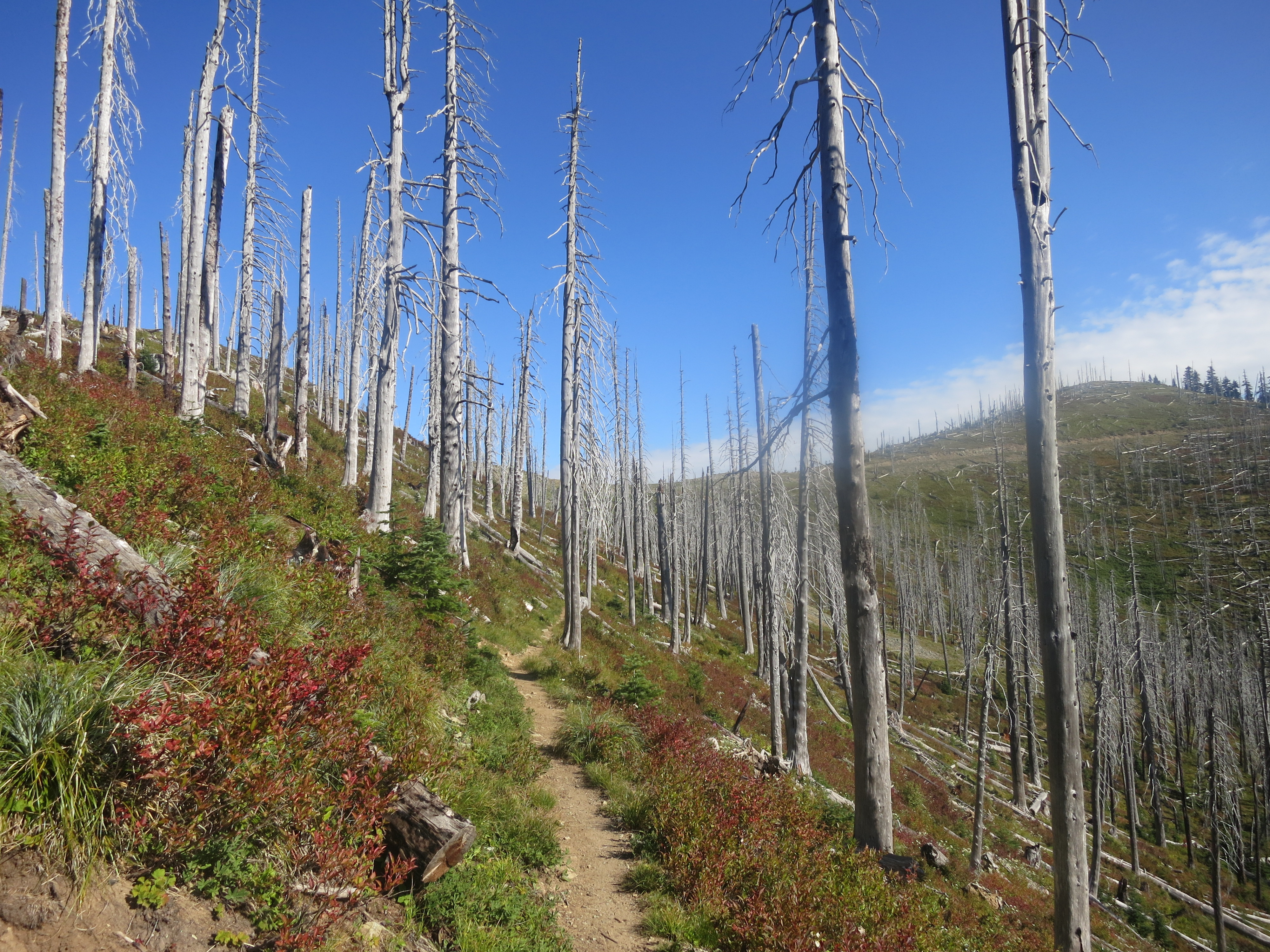 In the evening hours, I found myself on the final 1500 foot ascent of the day. I was tired. Before I reached the most exposed part of the climb, I came across signs warning that camping was not allowed along the ridge. If I went on, I was committing to walking at least 3 more miles. I looked at my watch and knew that I would need to keep moving as rapidly as I could. A man in overalls headed past me in the opposite direction. My shoulders ached and I needed to put my pack down and rest for a couple of minutes before making the final push.
