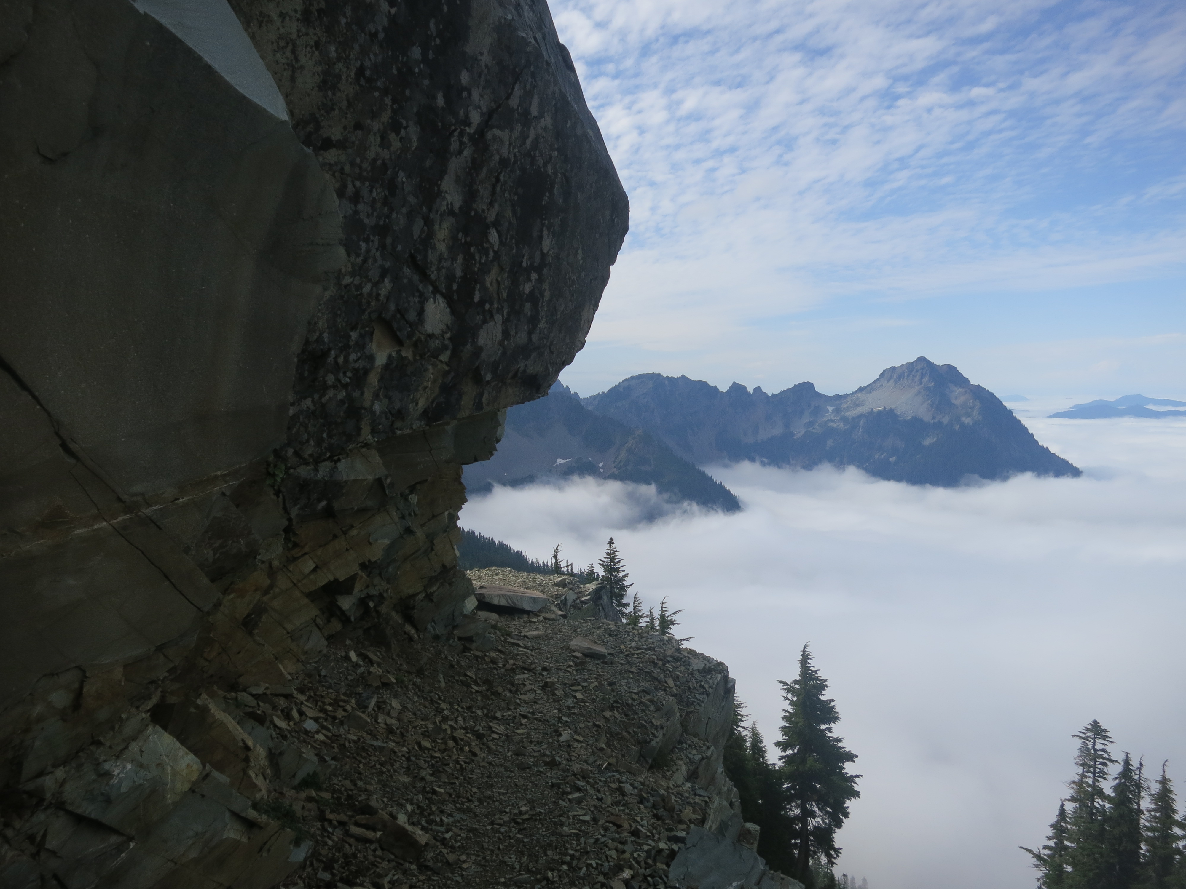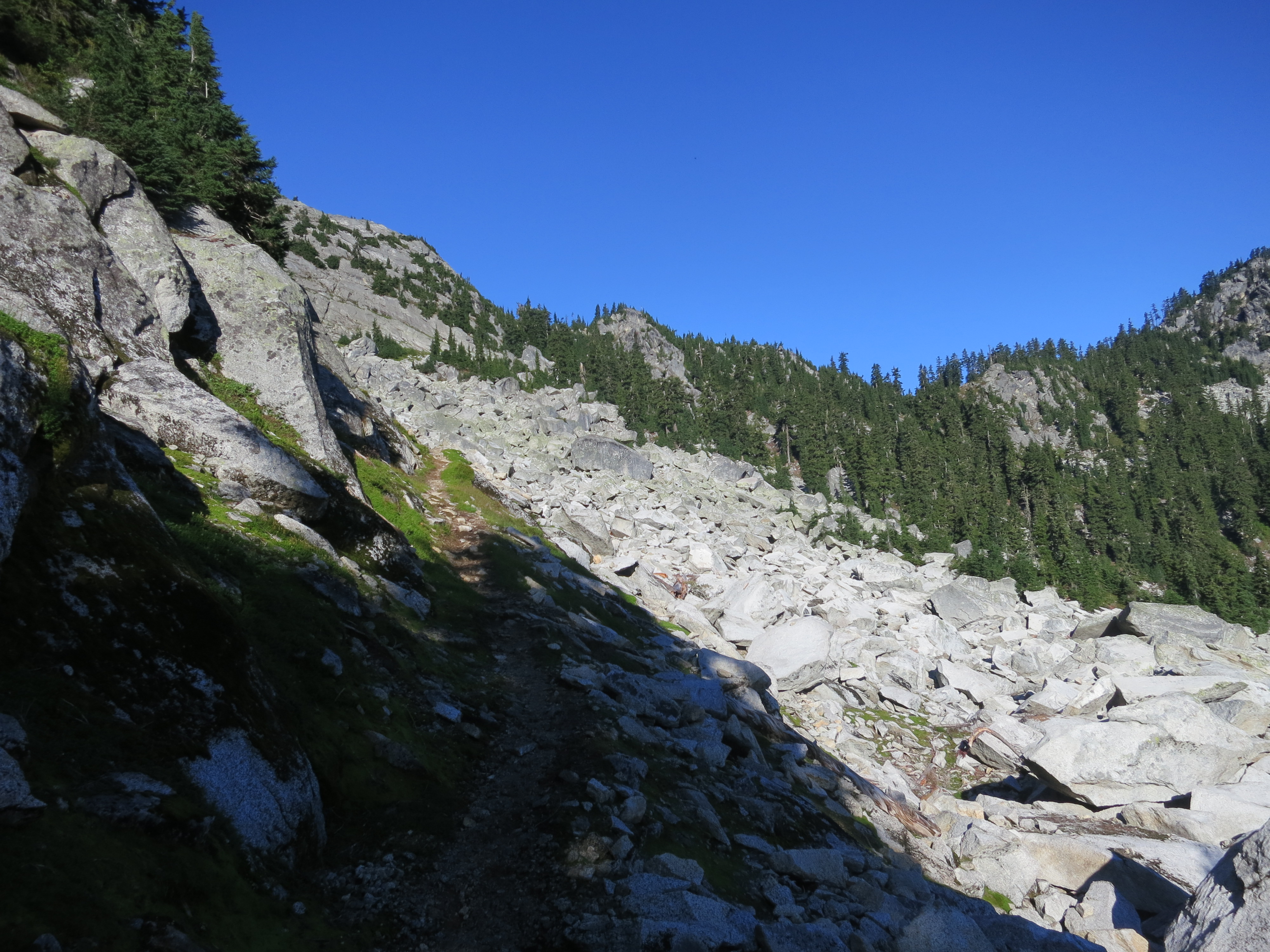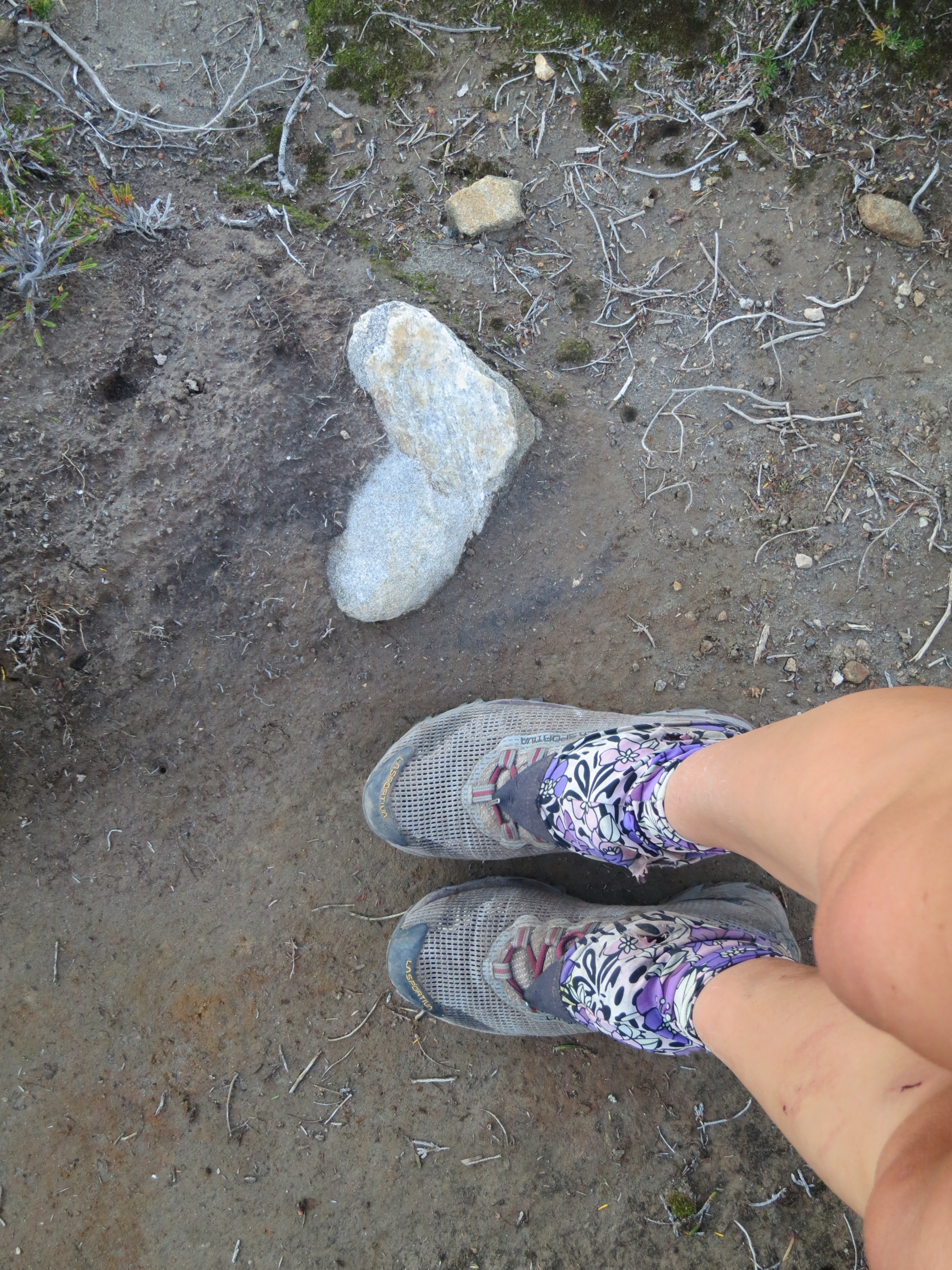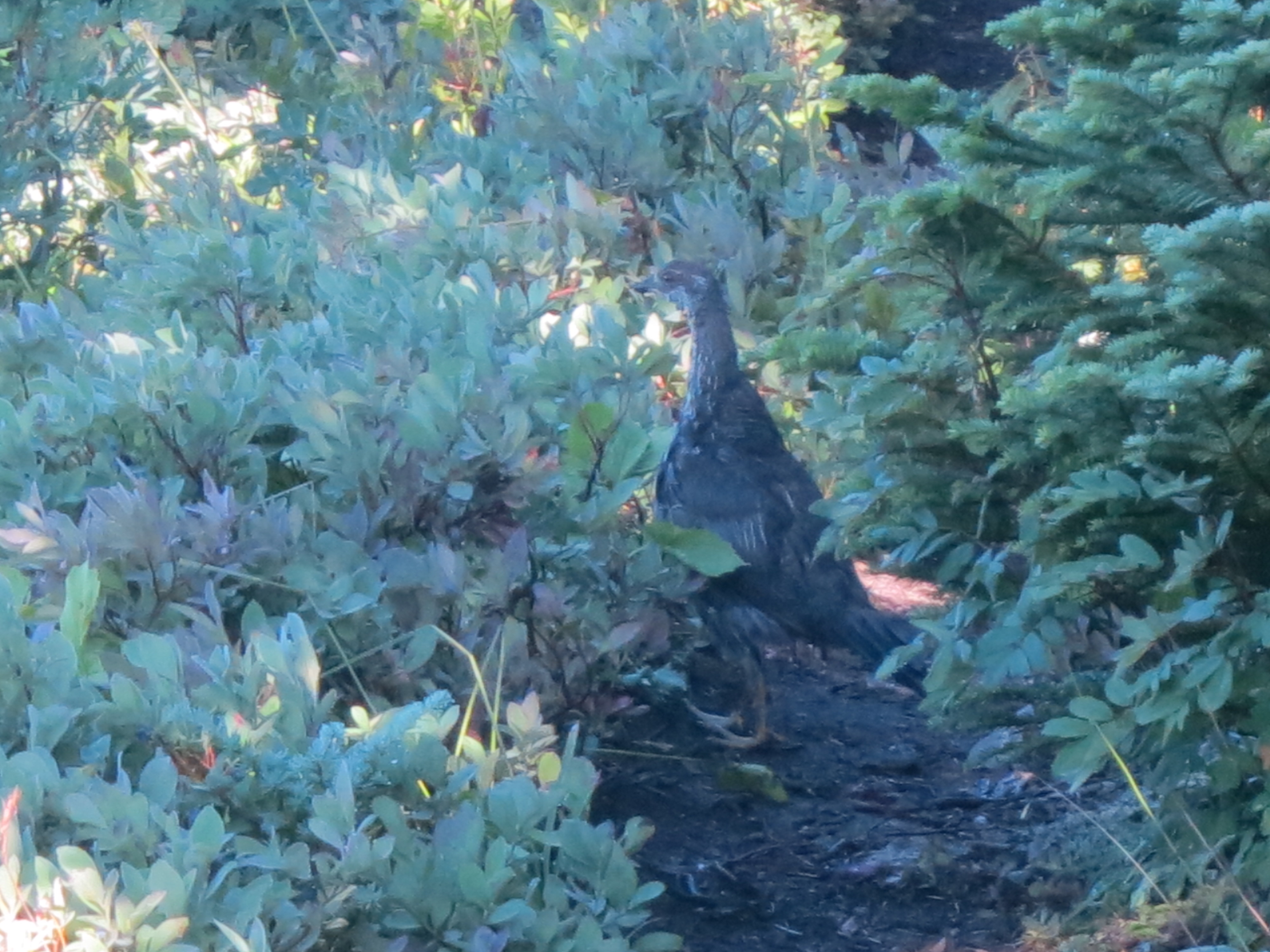 Upon arriving there, I was very happy that I had camped where I did! I didn’t see the camp site here- only mud holes and a distinct lack of sunlight! I climbed back up into the granite boulders and came across a grouse running on the trail in front of me.