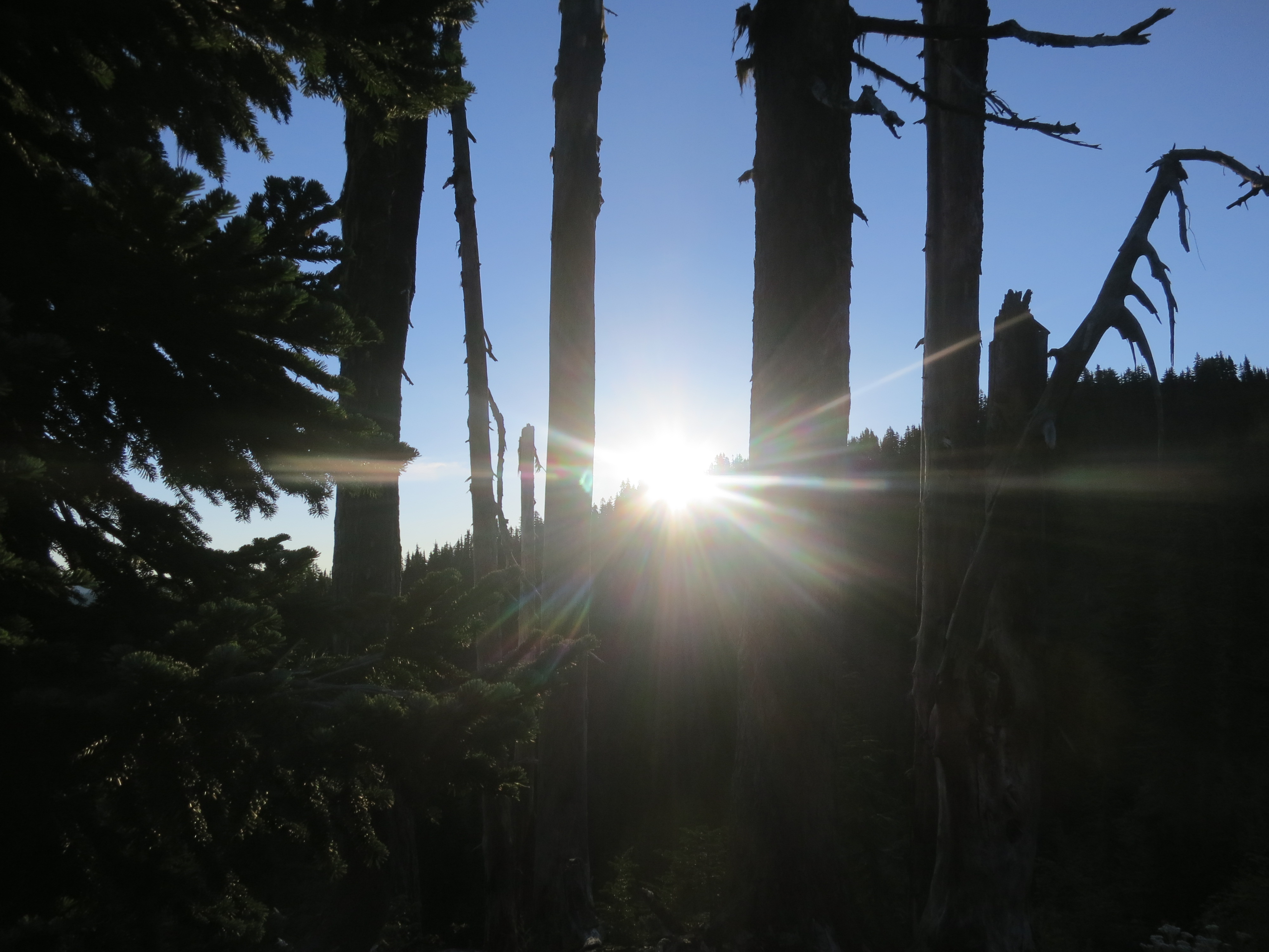 I awoke to the sun rising between the trees in my little campsite. Everything was quiet. Surprisingly, I hadn’t noticed any other hikers passing by.