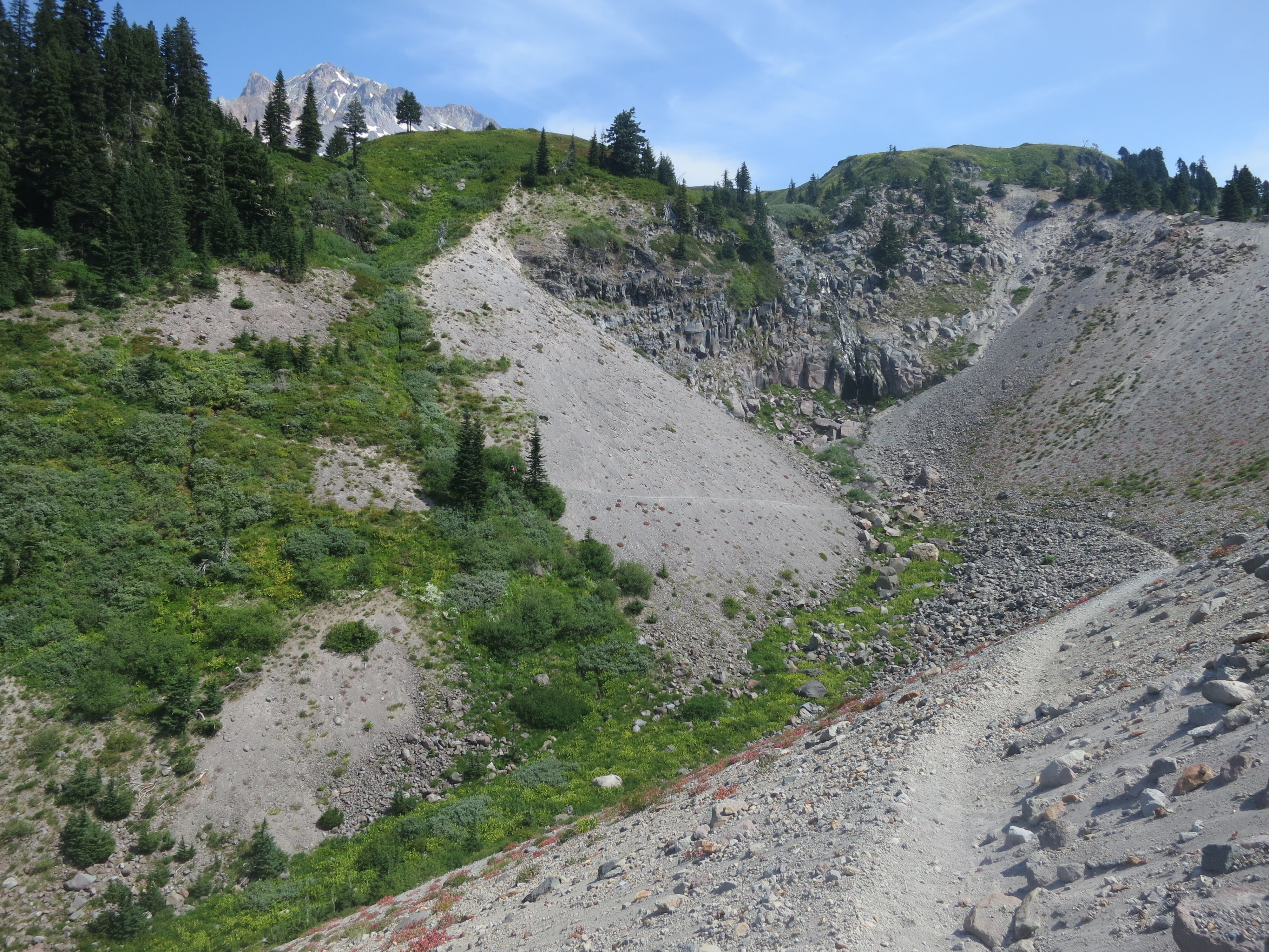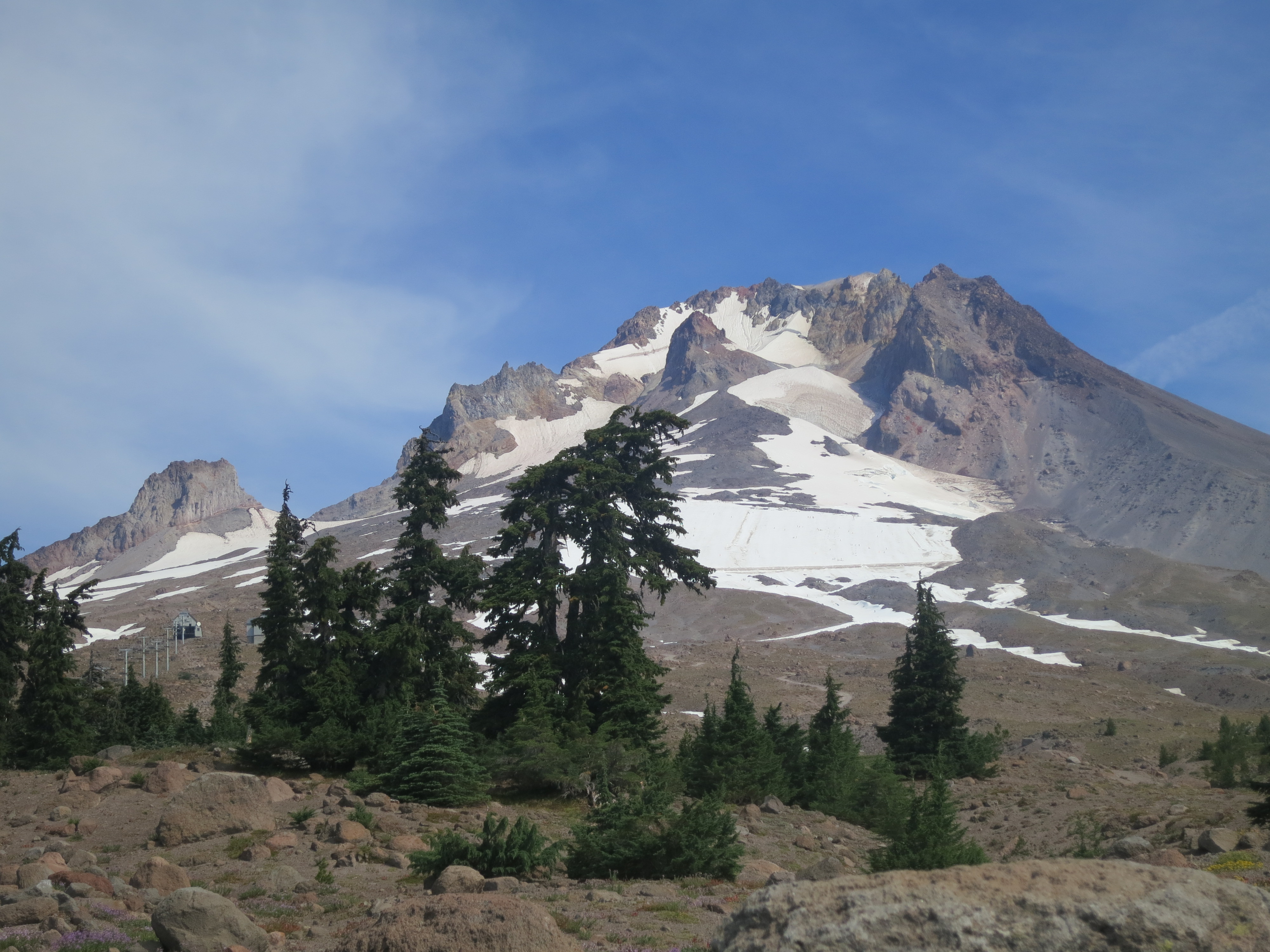 The boys wondered which part of the mountain we would ascend to get to Timberline lodge. As we hiked, I told them how I had been passing time by remembering what had happened at that mile into the hike, in relation to how many miles I had left. Pumas said he had been doing the same thing! “Really?”. I love how we all think and do similar things! They started telling stories about the beginning of the hike such as when they were trying to decide how many nights to spend at the Saufley’s and how many to spend at the Anderson’s, all based on wanting to stay ahead of the “herd”. I laughed, remembering how that was also a big concern for me! “The herd is coming! The herd is coming!”. They talked about hiking with Drama and how they were going to invent a chart app. We talked about why Drama left the trail and his interactions with SunDog and Giggles as he headed back to Tuolemne Meadows. “I’m done with this hiking thing! Possibly forever!”. It was so nice to have a little bit of company again and nice for my brain to get a rest from calculating how many miles I had left to hike over and over and over again!