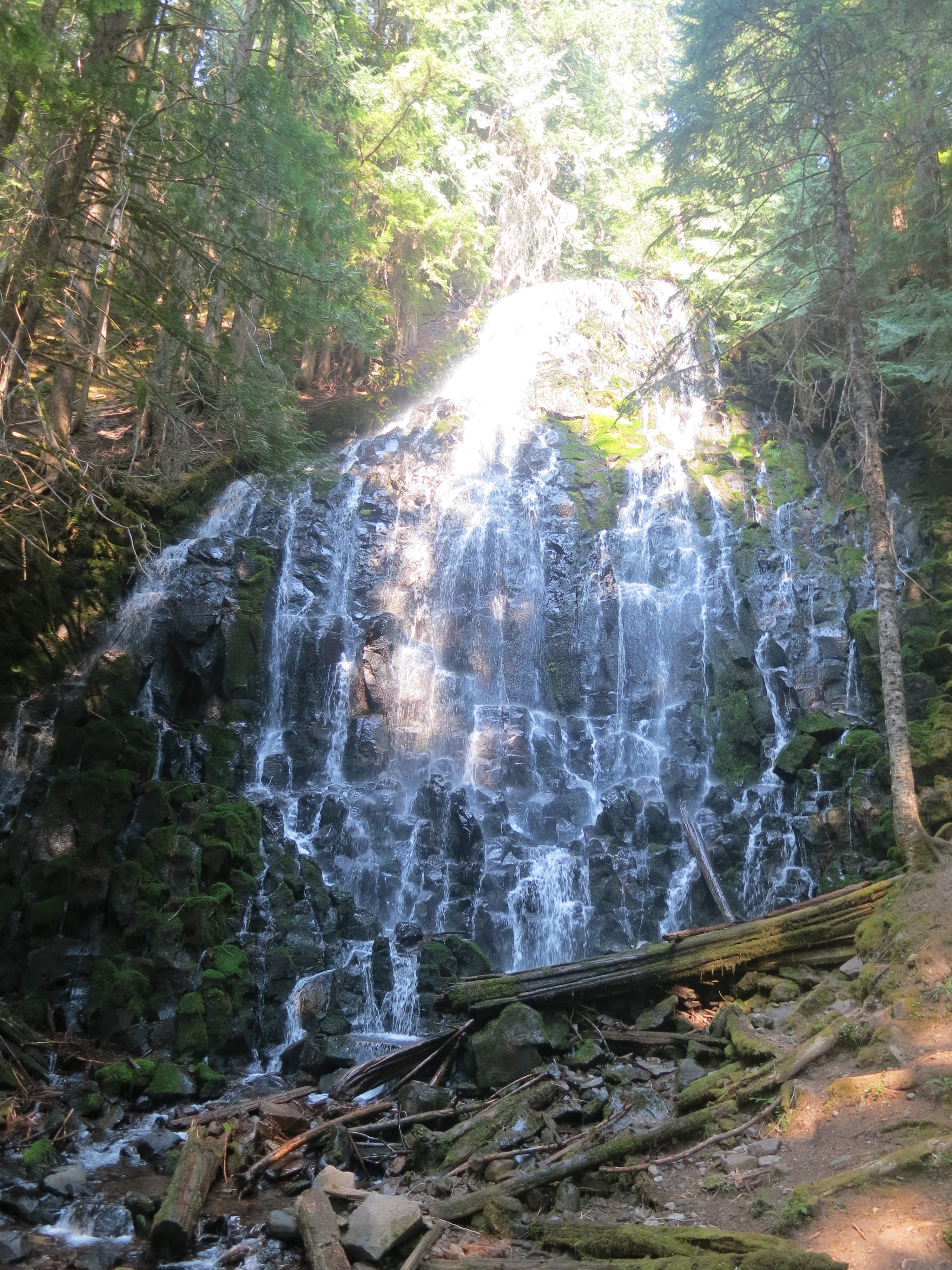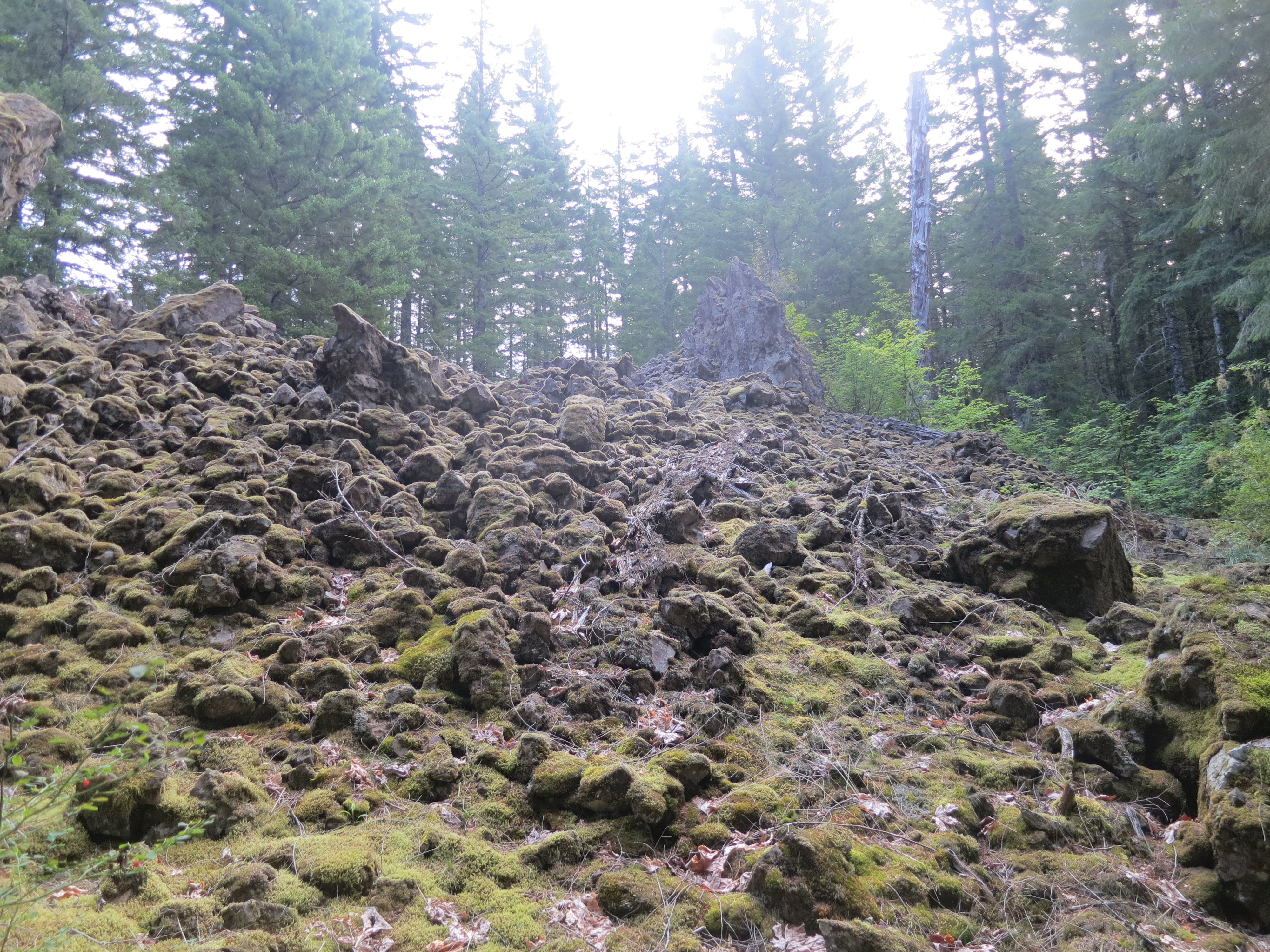 I headed back into the woods and found a nice alcove to take a pack break. There, I found a text message from my high school friend asking when I would be arriving at Timberline. She was trying to make plans. My stomach twisted. I was going to have to tell her that I needed some space. I let her know that I was extremely exhausted, planned to eat, do my laundry, shower, sort through my resupply, and sleep, and journal a little if I had any extra time. I also told her that I needed to hike the 48 miles to Cascade Locks in 1 3/4 days. But I told her she was welcome to join me for dinner at the lodge if she really wanted to come out. As I was typing, I looked up to see a bicycle whiz down the trail. I felt bewildered and stared at it. Then, a second and third one went by.