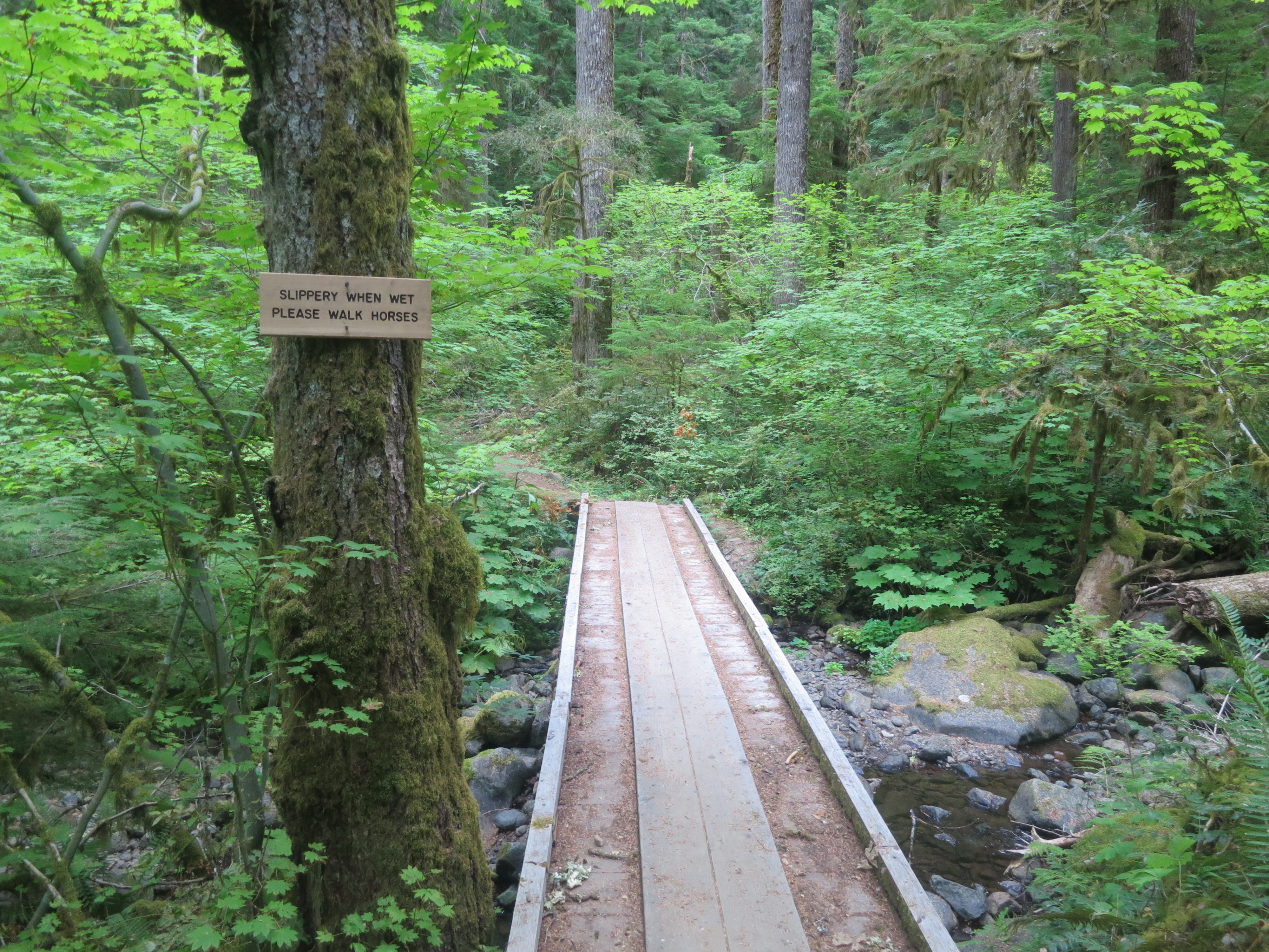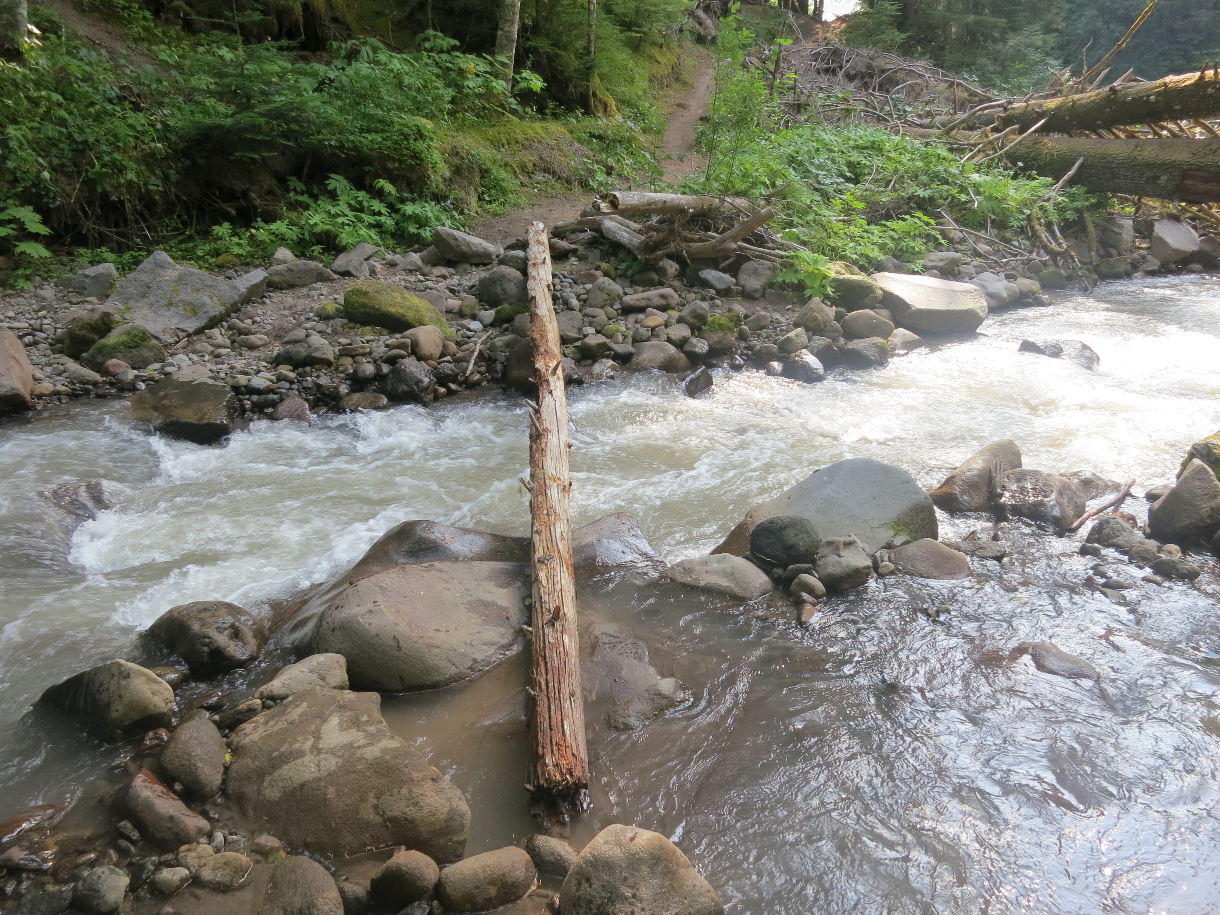 When I reached a little river, I decided to take an extended break to have my ice coffee and a snack. The sun was burning down strongly and I had to keep shifting to find a bit of shade under a tree. A family on horses, who I saw preparing on the road, trotted by me. Then, Tumbleweed came along and wanted to know if I had seen Puma. I hadn’t since he walked through my campsite but assumed he must be ready for a break anytime now! Peter Pan followed Tumbleweed as he continued on. He planned on eating lunch at Timothy Lake.