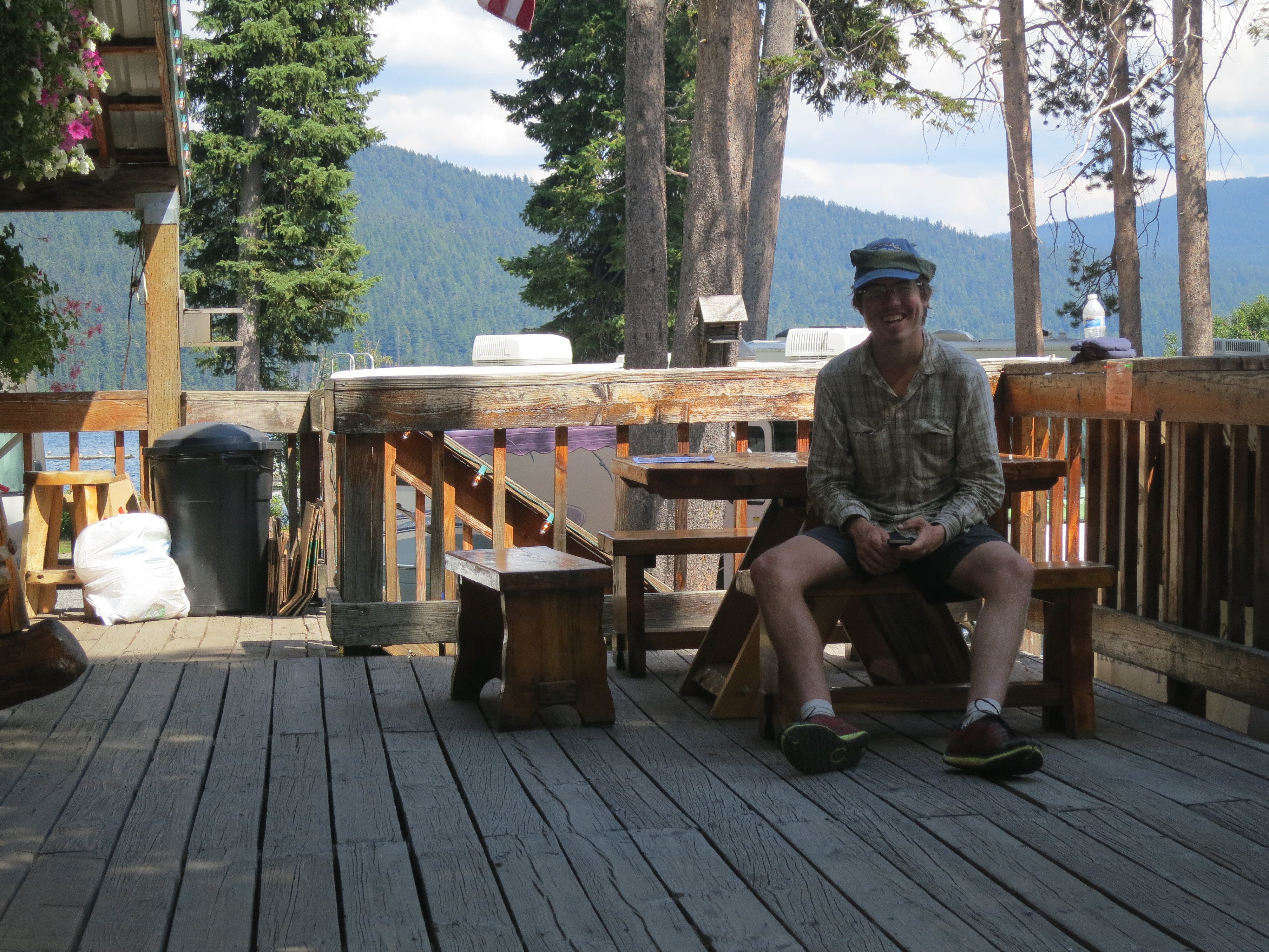 On my way out, I said hi to Puma and he told me about the jam session they had had with the two other guys. Someone had already told them about Puma and Tumbleweed, so it did not turn out to be such a big surprise, which disappointed Tumbleweed. I told them it wasn’t me! Then, I mentioned how the word “jamboree” had popped into my head, which greatly amused me. I told them I needed to go lie down because I was in so much pain! But first, I needed to go pick up my resupply box at the store.