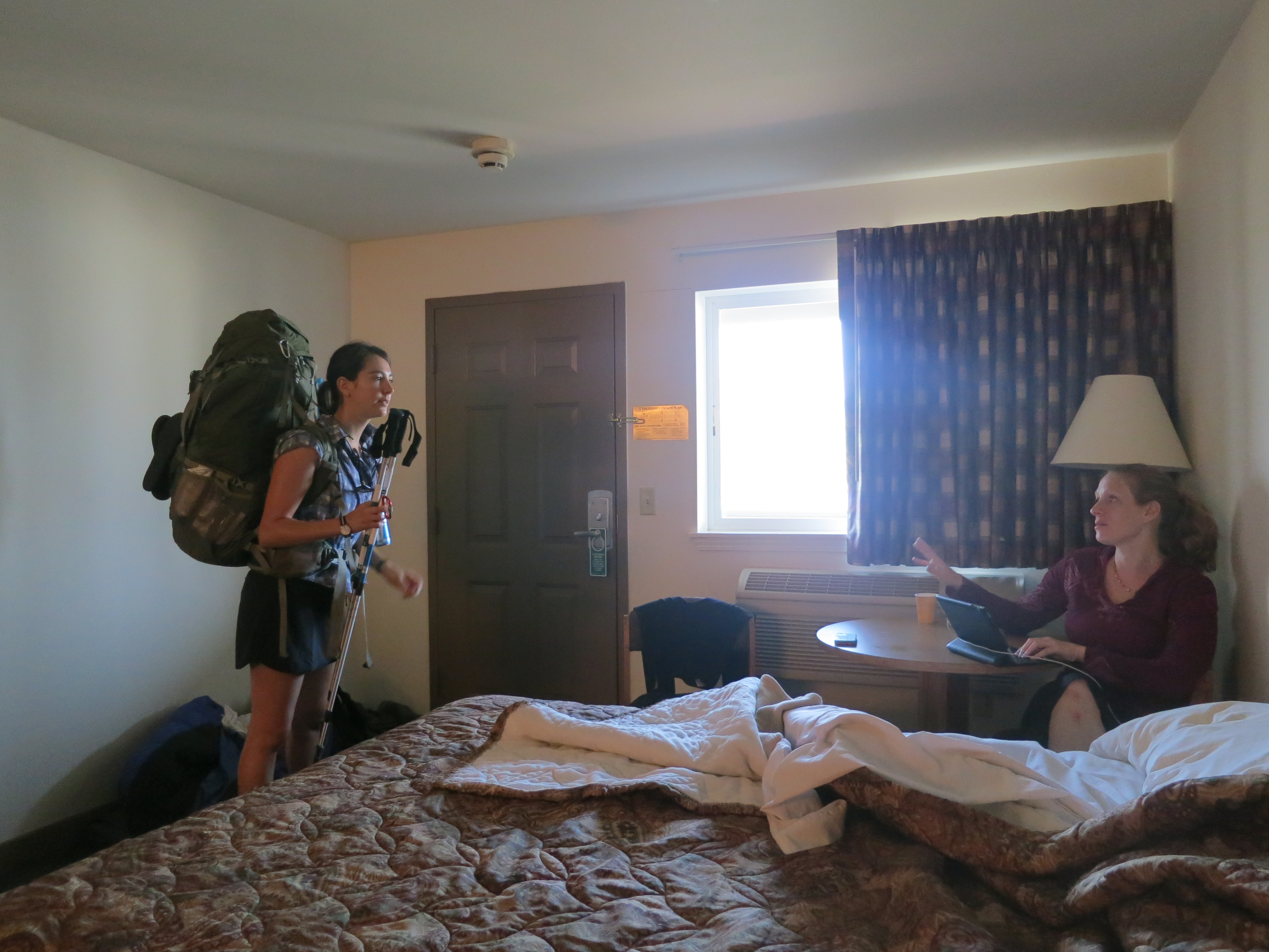 After dessert, I went back to the dryer to collect my clothes and then returned to my room to do an initial sort of my food. I discovered that one of my socks was missing! Someone had taken my clothes out of the dryer and now I didn’t know where my sock was! This was a big deal as now I only had two pairs! Finally, I climbed into bed. The room was not at all soundproof and I heard employees walking up and down the hallways and then people loudly arguing above me, which made my body tense. Although it was a generally nice place, all of the noise and commotion made me long to be back out in the woods, where everything was much more peaceful.