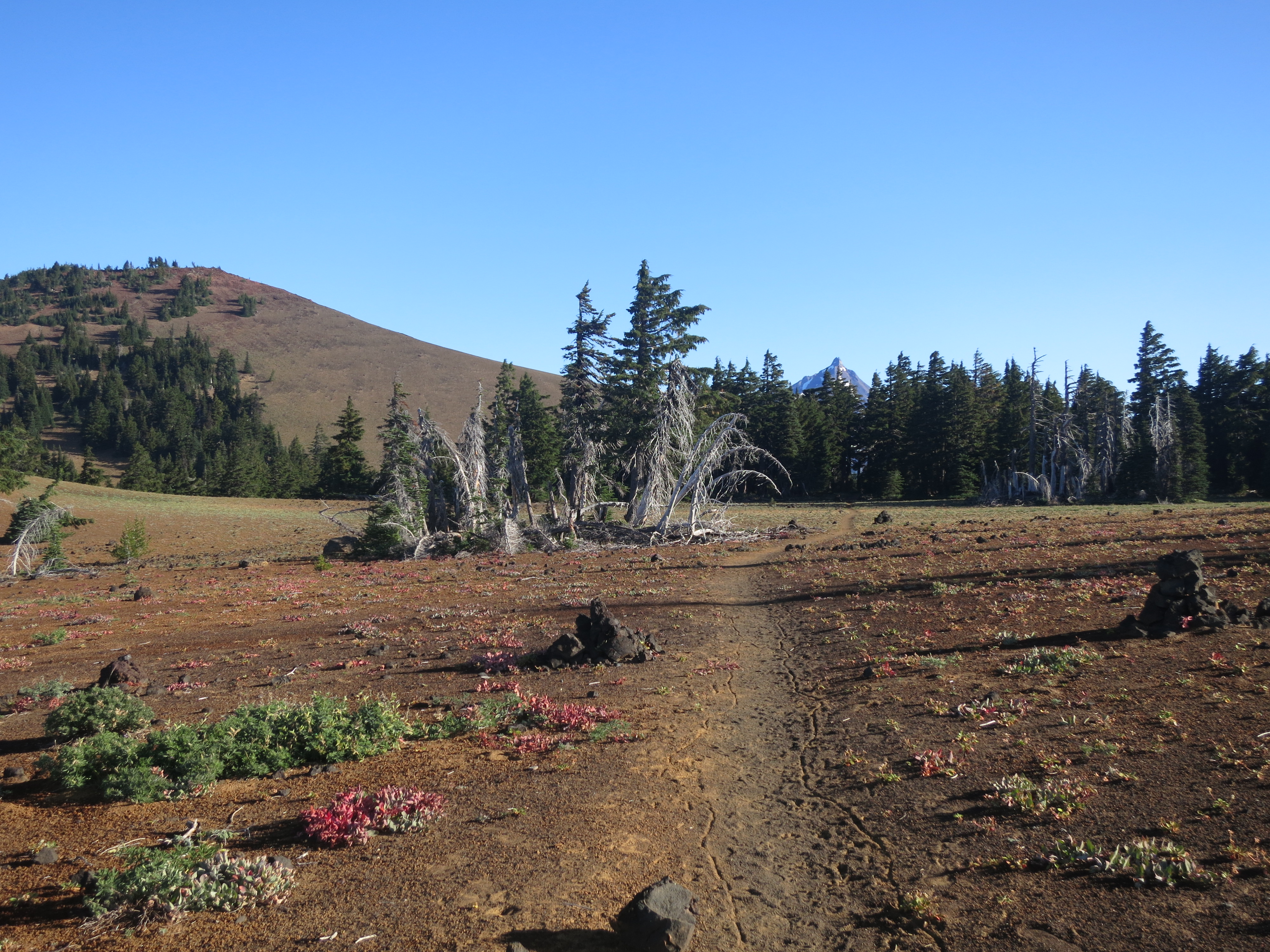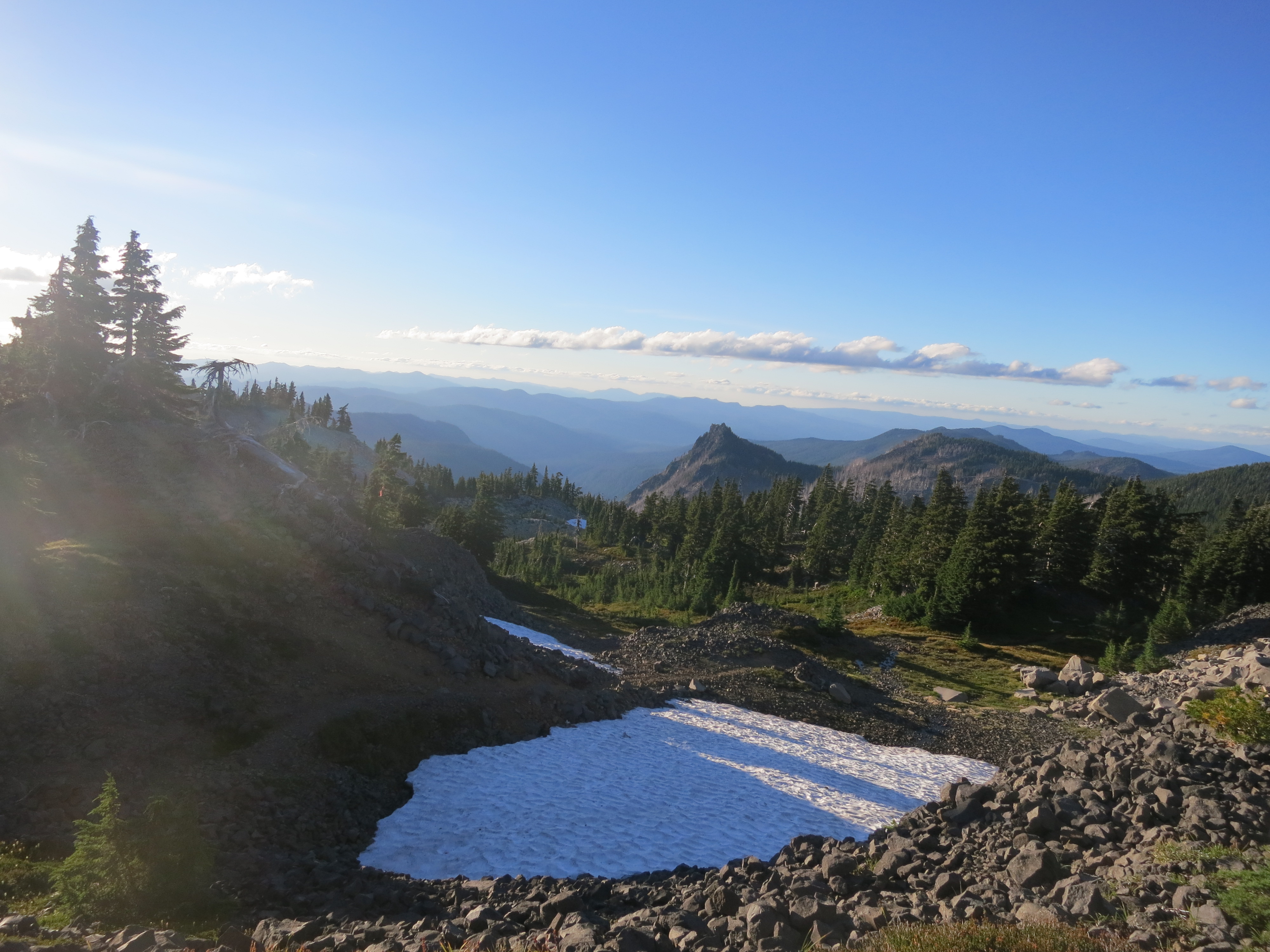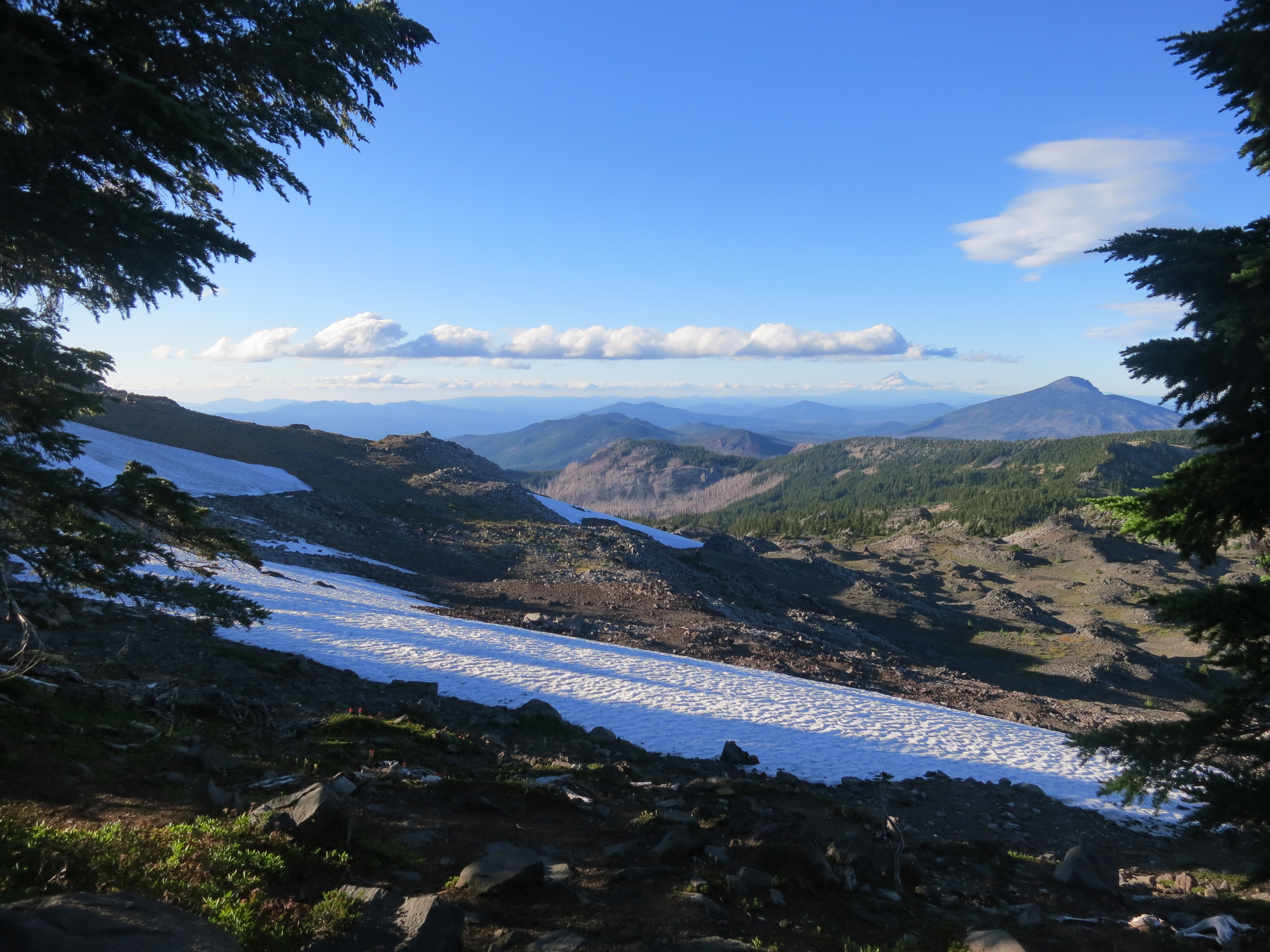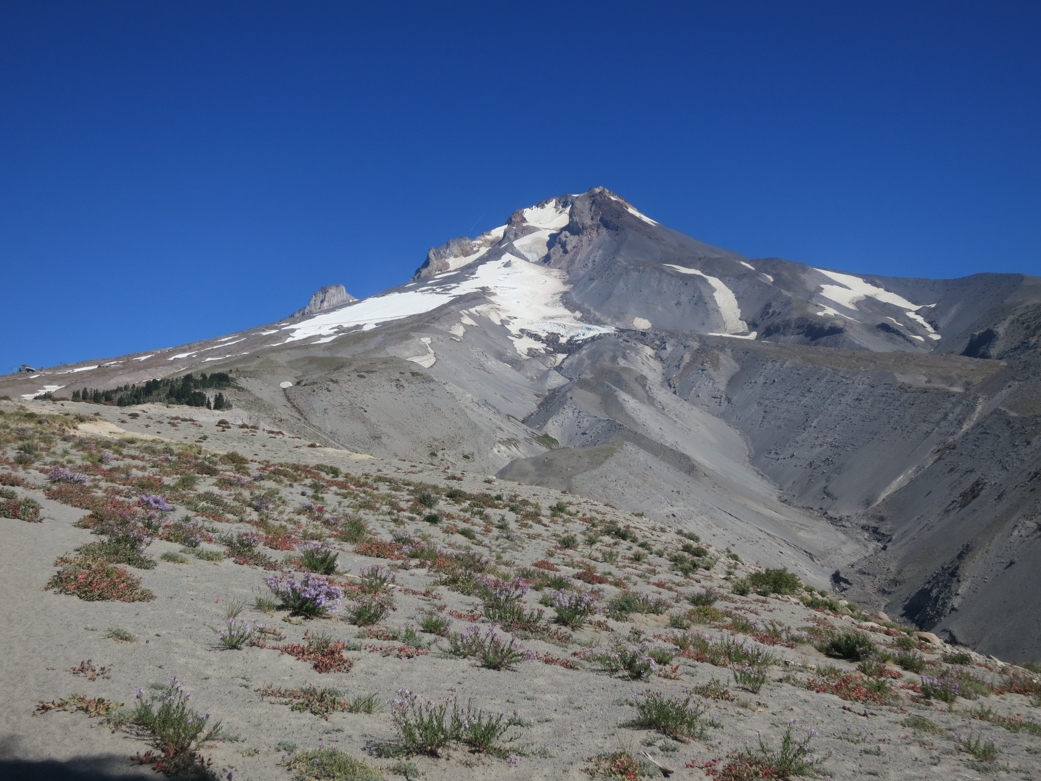 As I got closer, I met a woman on her way down the mountain. She asked if I was hiking the PCT and we chatted for a few minutes. She had stayed in the bunkroom with several other thruhikers the night before. She encouraged me to go to a clinic in Portland and told me that starting next January, everyone would be able to get free health care. Her son was now snowboarding on Mt. Hood and she had to hurry so she could get back in time to meet him.