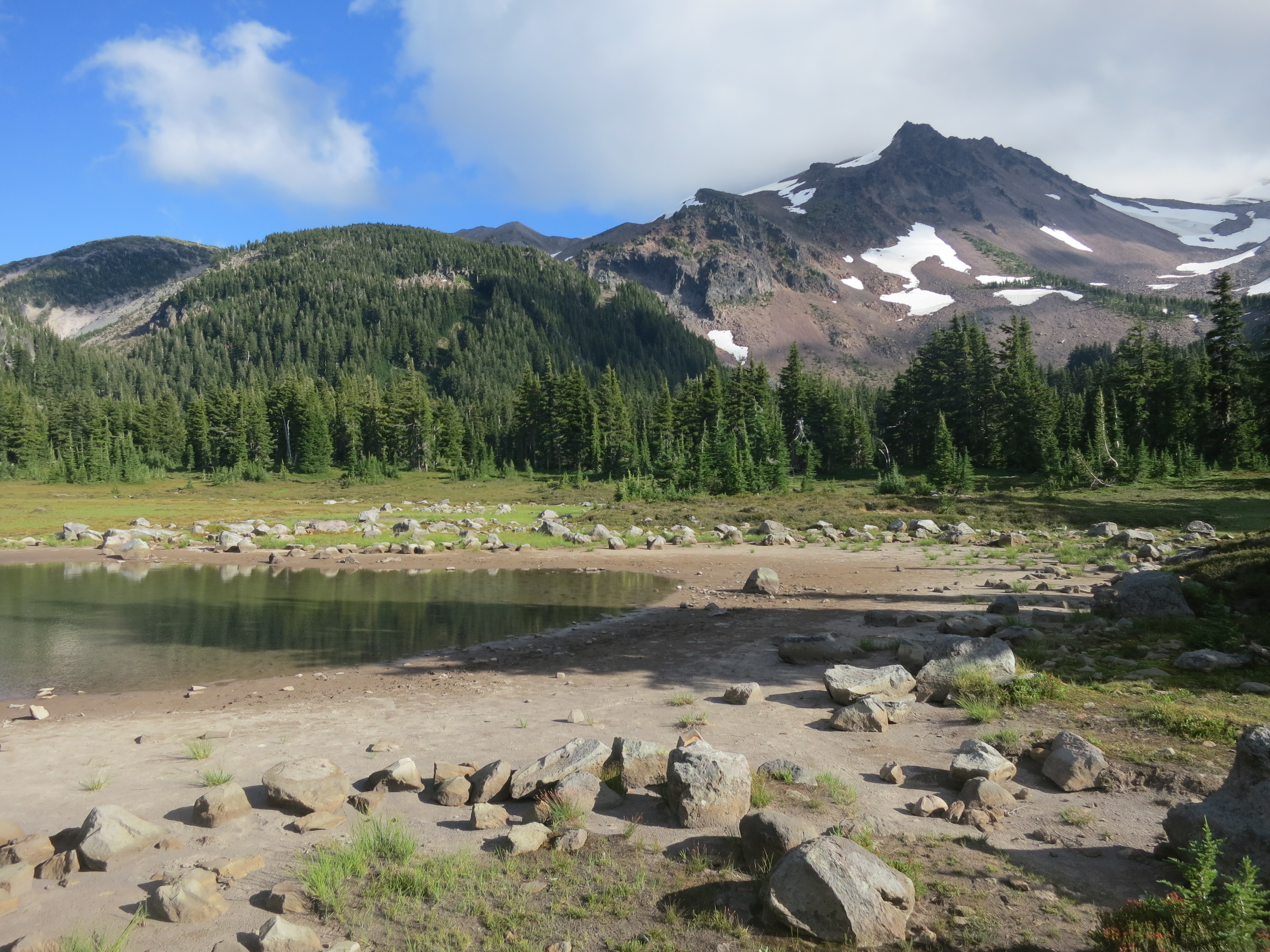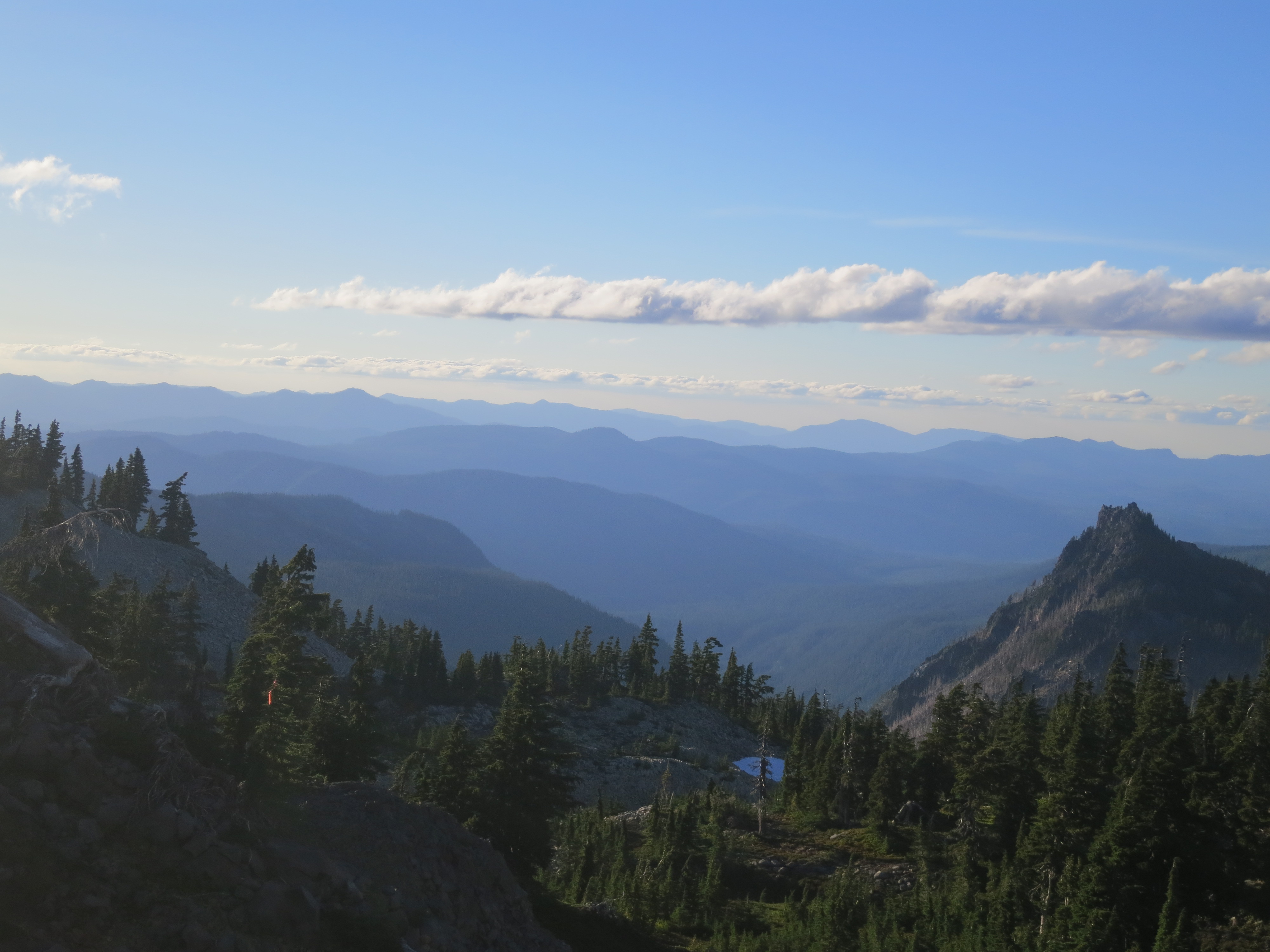 I continued to climb. Soon after, I stepped to the side of the trail so four people could pass by, also on their way down. After they all passed, I looked back and saw the last person looking back at me. We both noticed each other’s packs! He asked if I was thru-hiking and told me that he had hiked the PCT 2 years ago. Then, he was the first person to congratulate me on almost making it to the state of Washington!