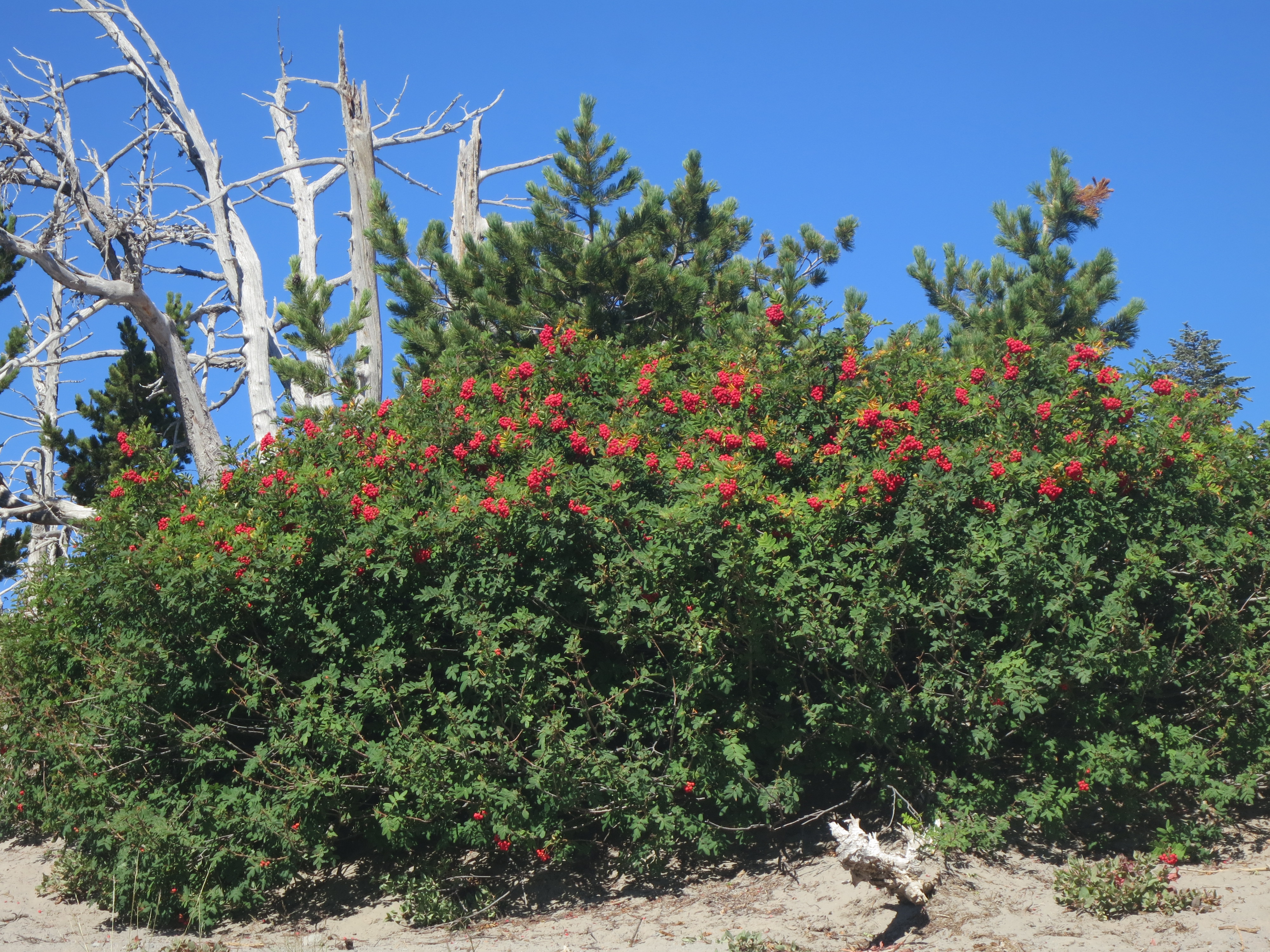 I was struck by the amazing red color of the berries on the bushes alongside of me.