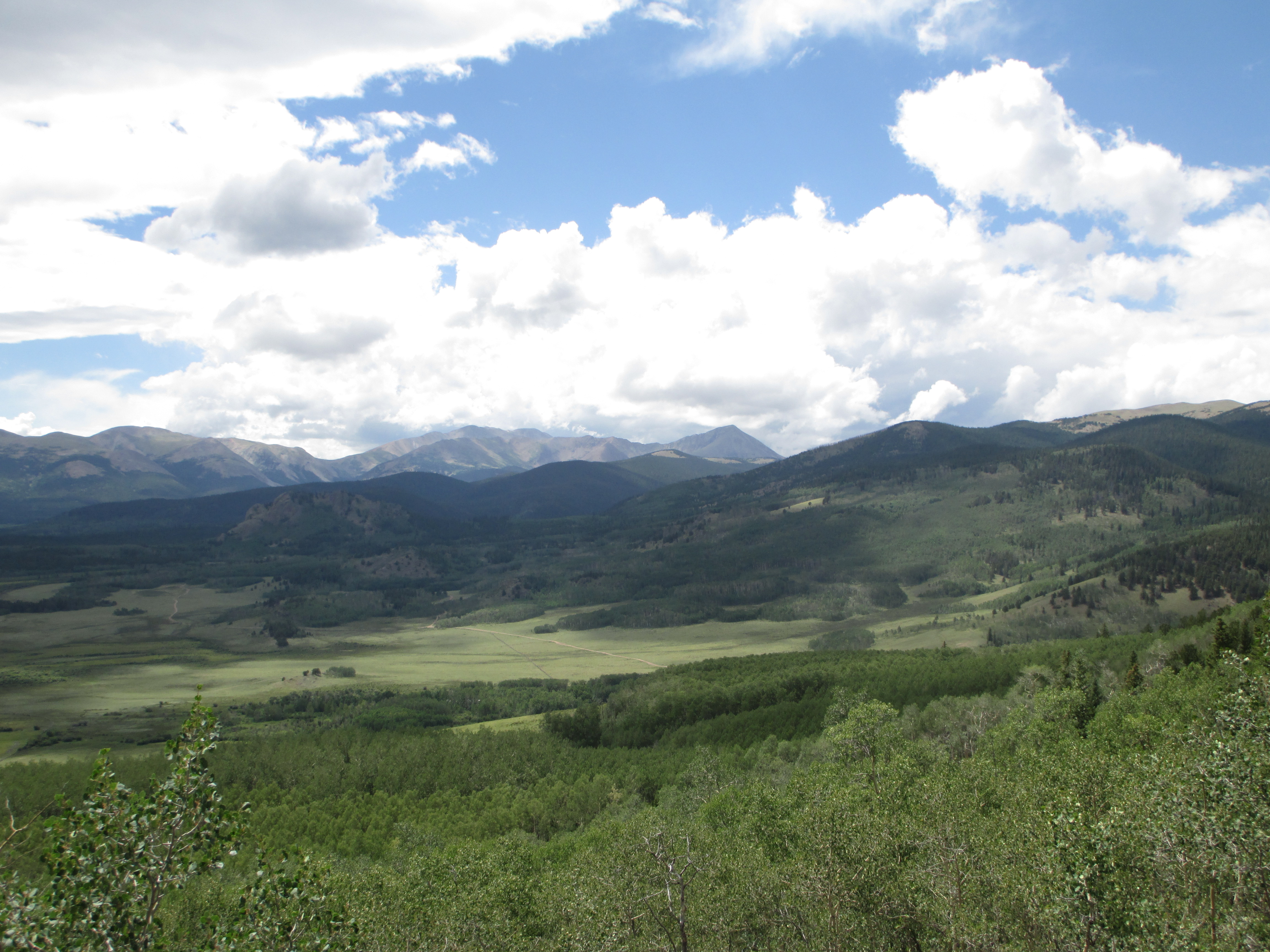 I climbed a hill, descended the other side, and then could see the intersection to Creede!