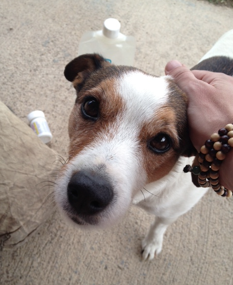 I sat outside and sorted through my food, deciding what I wanted to send home and what I wanted to throw away. Lily, the dog of the housekeeper, kept me company.