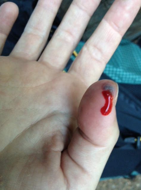I put a piece of duct tape over it to try to contain the damage. I brought everything inside my tent, and set up my stove right outside my tent door to cook dinner. The rain let up enough for me to go outside to pee and brush my teeth. Then, it started coming down even more heavily! Lightning was striking everywhere around me! It continued for a couple of hours, and my adrenaline was on alert. So much for a good night’s rest after a long, hard day…