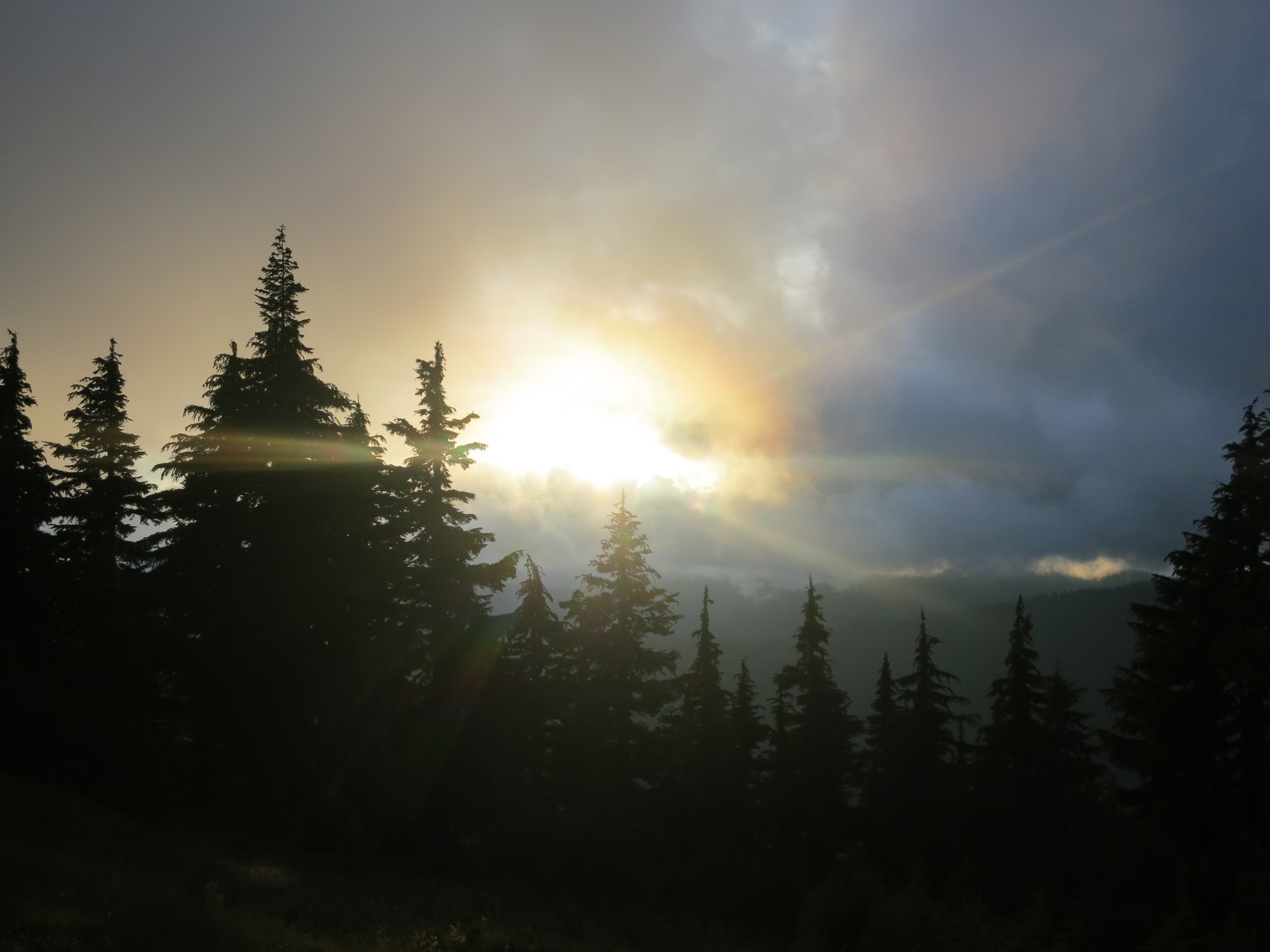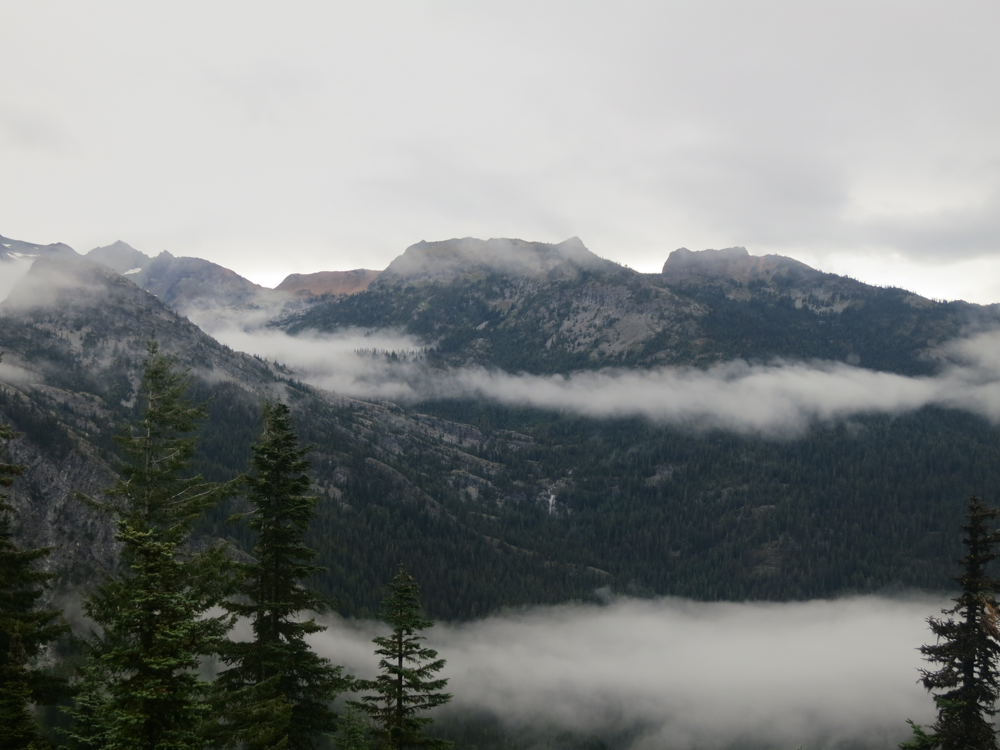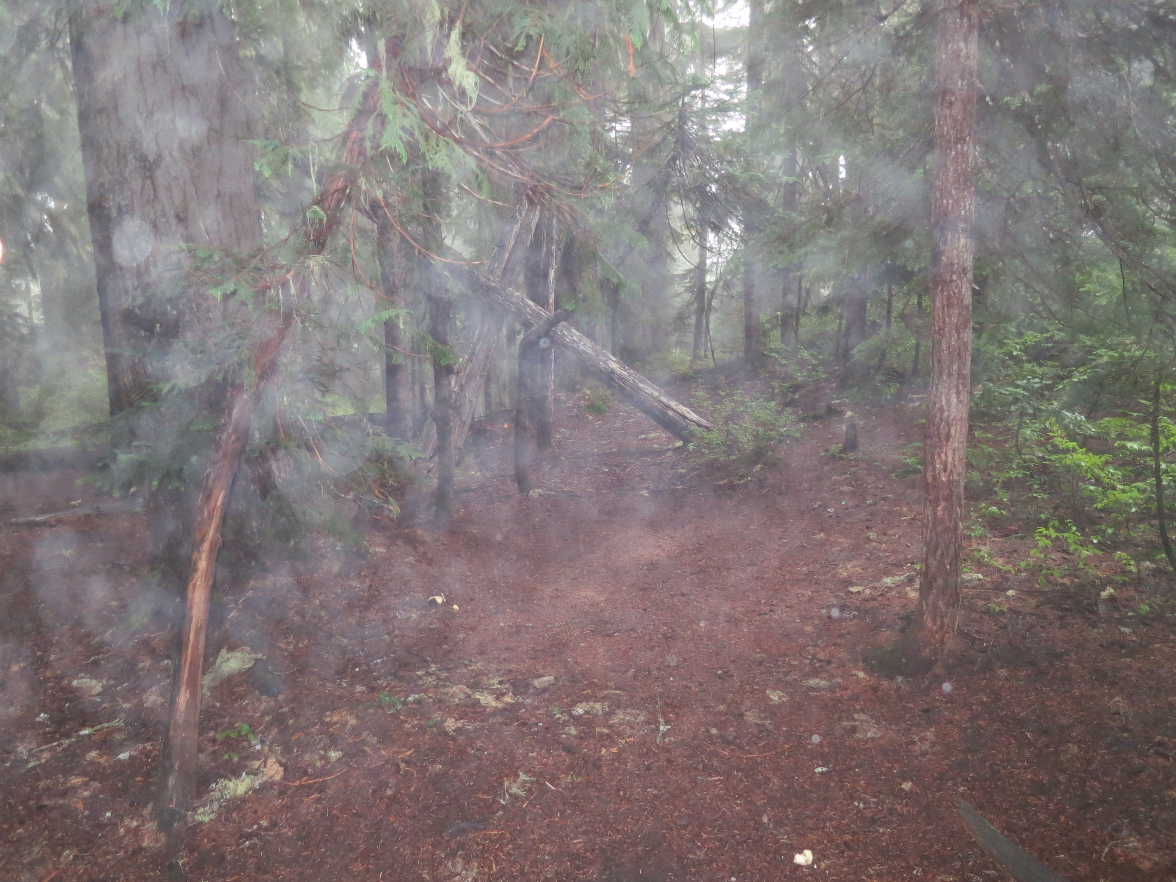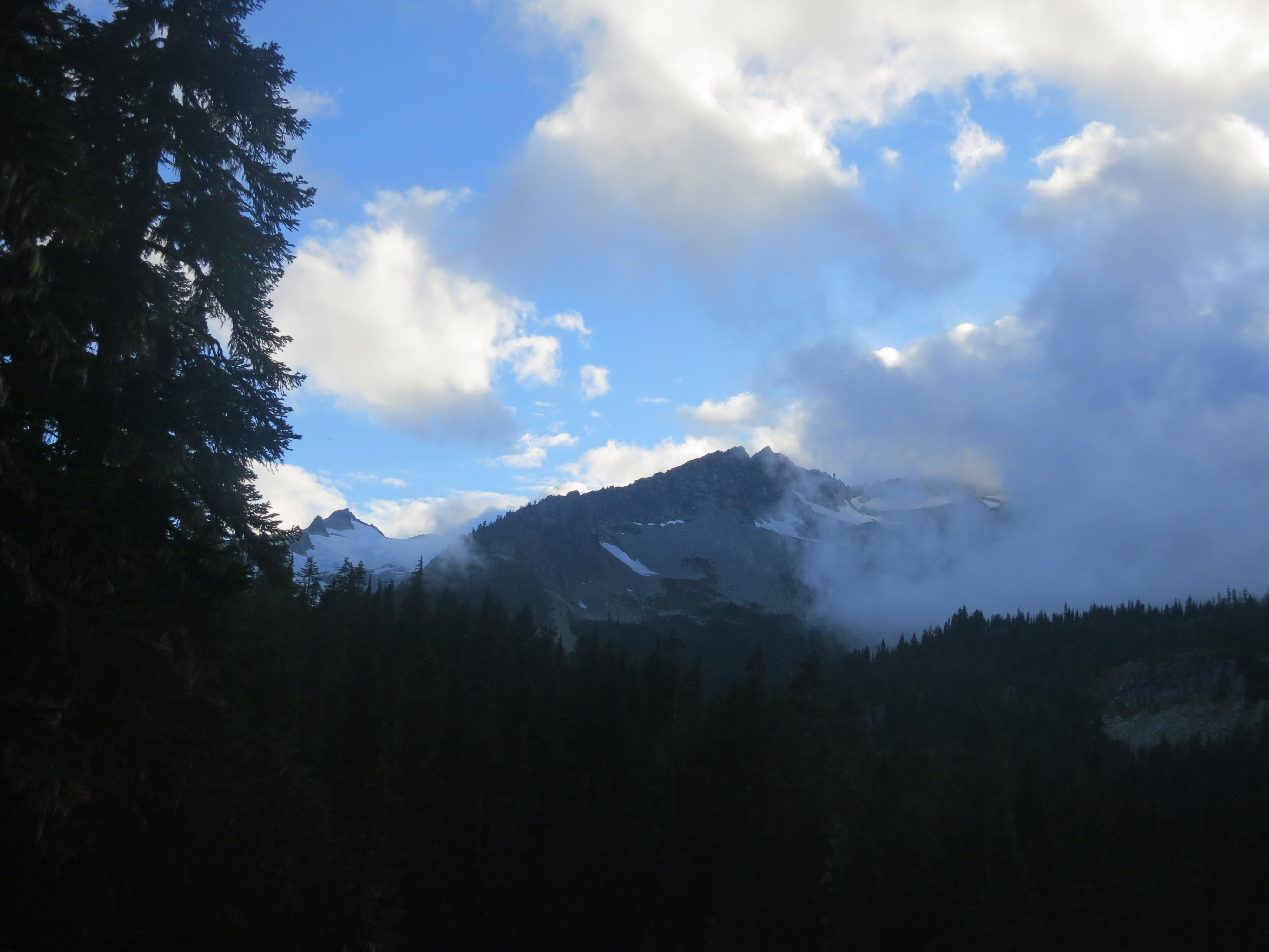 While outside my tent, I noticed some miniature frogs hopping around and was instantly amused. They were the tiniest frogs I had ever seen! I had to take some pictures. I looked up at the sky and noticed the clouds coming in. They weren’t looking so good… I joined Inger in front of her tent and realized that she was the hiker that had waved to me the night before. She had come out here to hike the Washington part of the PCT. She had planned on hiking with a friend, but she had backed out at the last minute. It was probably for the best, as the friend had never backpacked before and got stressed extremely easily. Inger said she wouldn’t have been able to deal with the fact that there was no water at the last source. She talked about a section of the trail in northern Washington that had been washed out due to some heavy storms earlier in the month and it took me awhile to realize that this had happened this year! It was the first I had heard of this situation. She said she had watched a video of a hiker’s sleeping bag roll down the mountain in that section and terrifying accounts of people trying to get through it. There had been a call put out for trail crews to come out and work on it, but she didn’t know the current state of it. A highway near the area had also been shut down! I learned that Inger was originally from Norway and that she owned an independent travel agency.