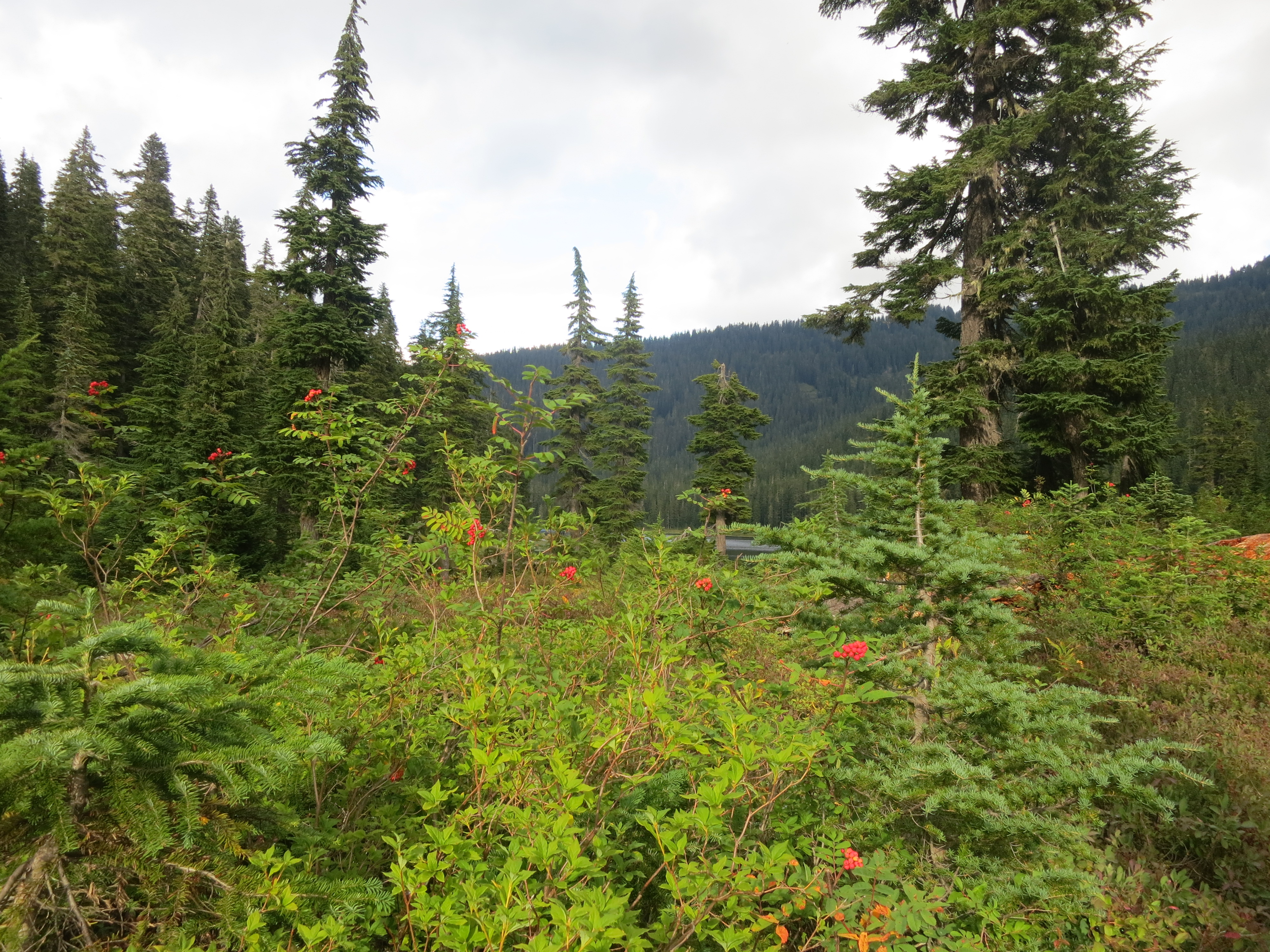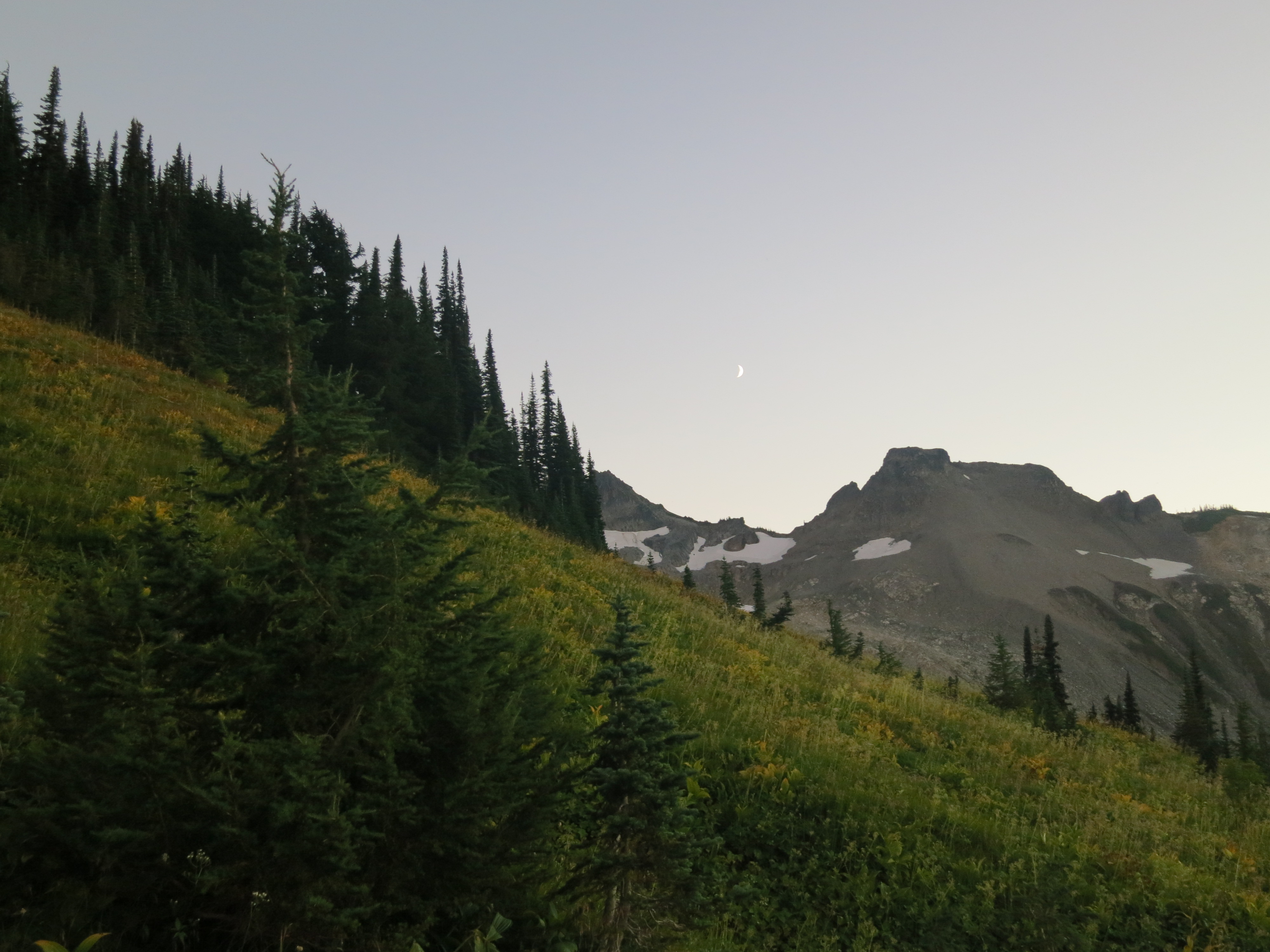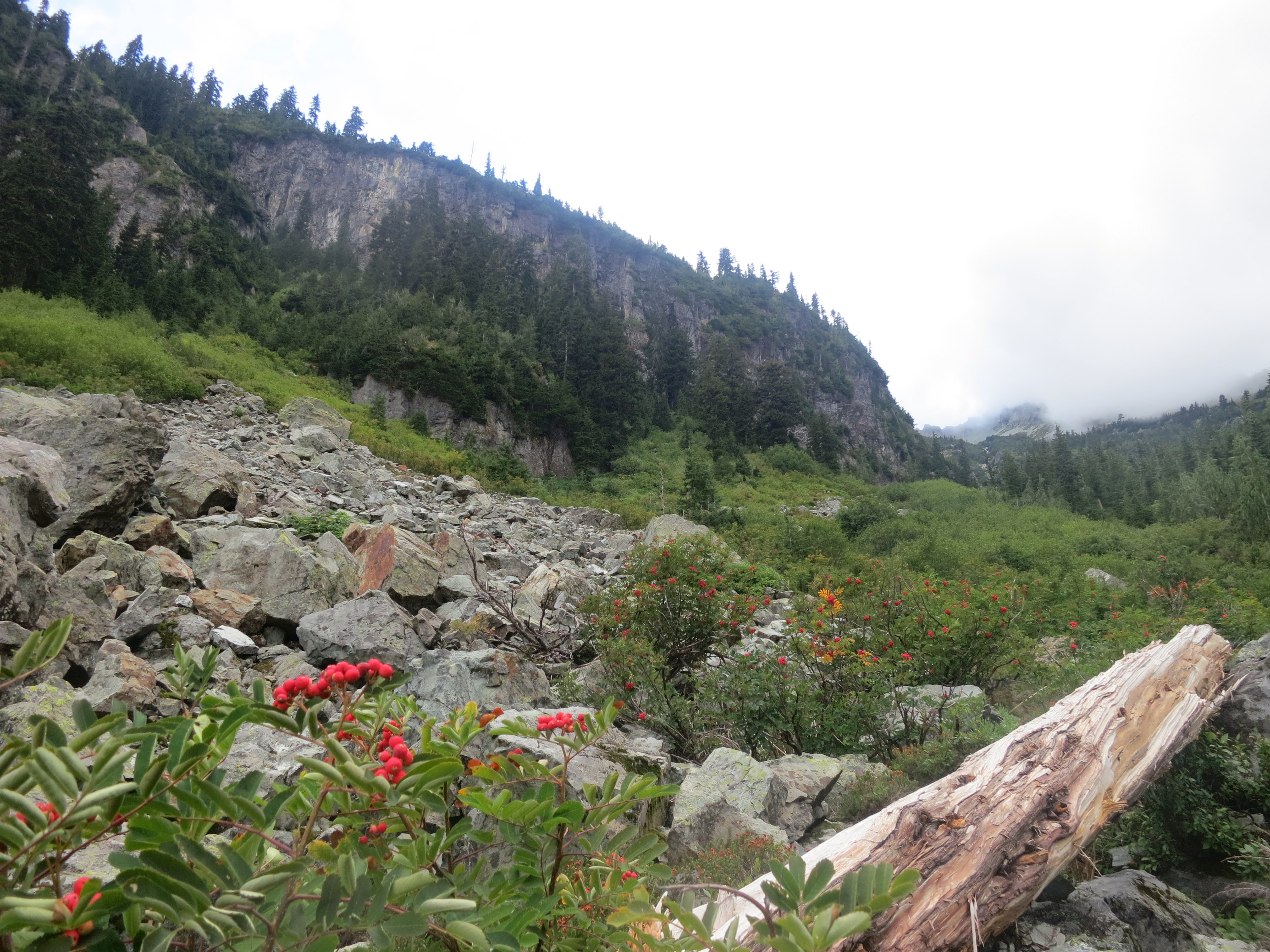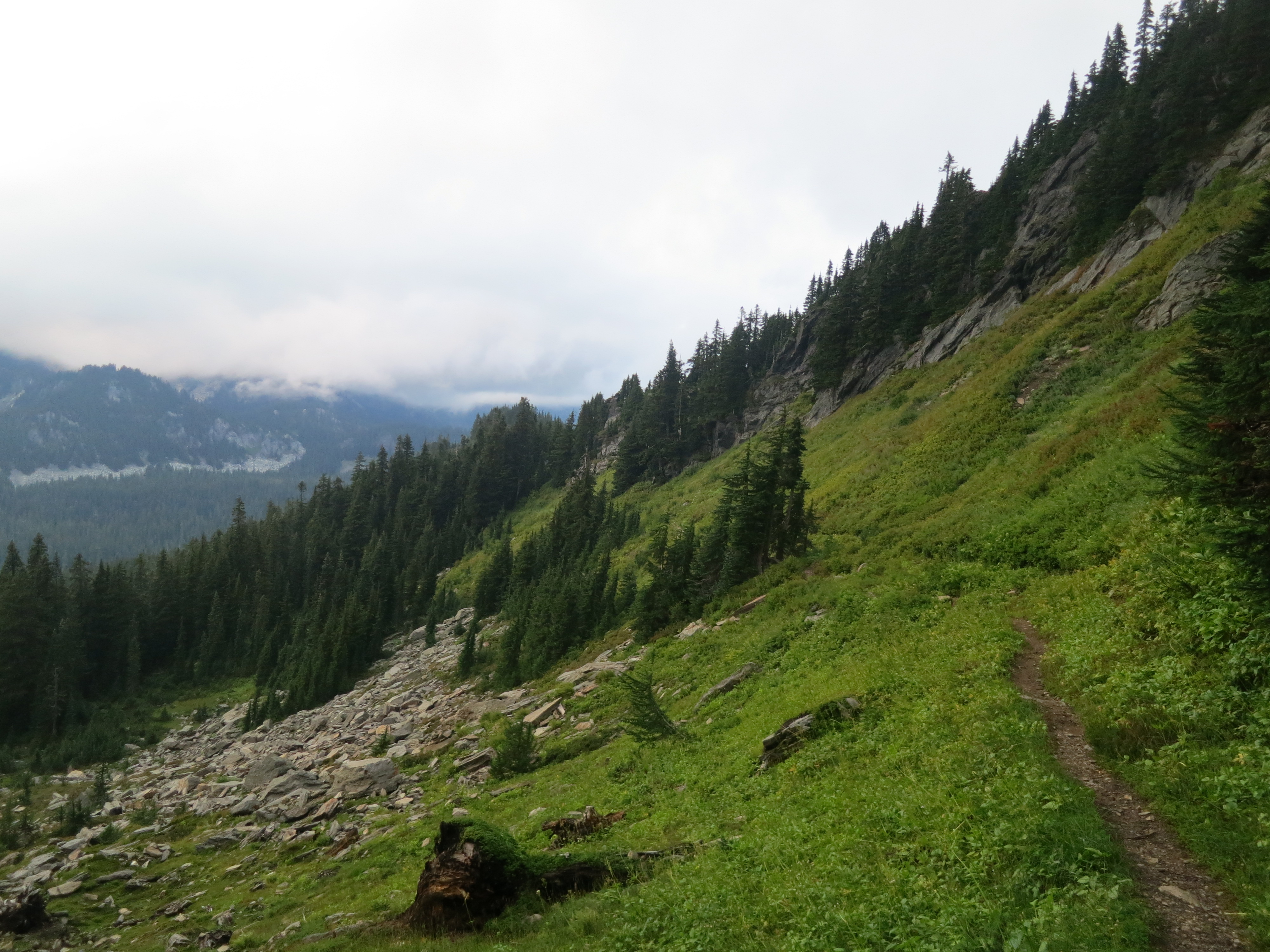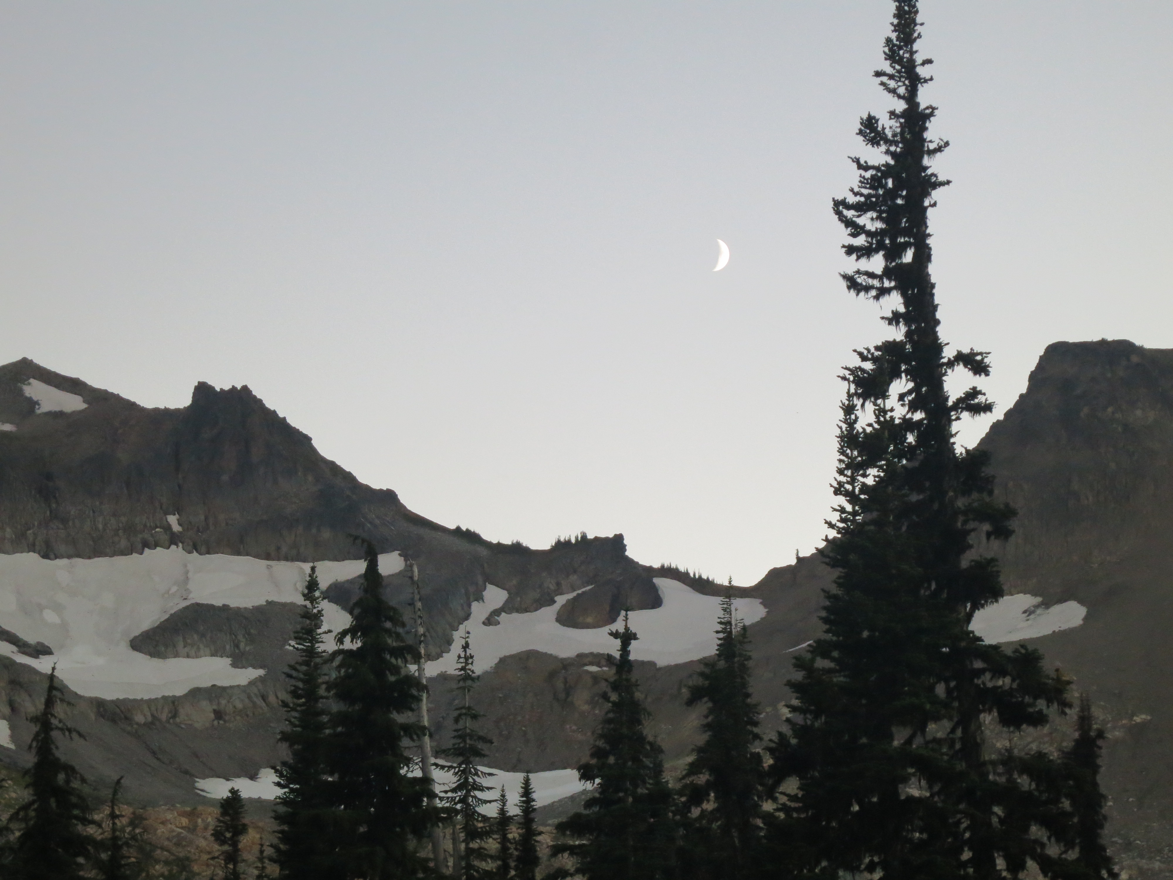 While outside my tent, I noticed some miniature frogs hopping around and was instantly amused. They were the tiniest frogs I had ever seen! I had to take some pictures. I looked up at the sky and noticed the clouds coming in. They weren’t looking so good… I joined Inger in front of her tent and realized that she was the hiker that had waved to me the night before. She had come out here to hike the Washington part of the PCT. She had planned on hiking with a friend, but she had backed out at the last minute. It was probably for the best, as the friend had never backpacked before and got stressed extremely easily. Inger said she wouldn’t have been able to deal with the fact that there was no water at the last source. She talked about a section of the trail in northern Washington that had been washed out due to some heavy storms earlier in the month and it took me awhile to realize that this had happened this year! It was the first I had heard of this situation. She said she had watched a video of a hiker’s sleeping bag roll down the mountain in that section and terrifying accounts of people trying to get through it. There had been a call put out for trail crews to come out and work on it, but she didn’t know the current state of it. A highway near the area had also been shut down! I learned that Inger was originally from Norway and that she owned an independent travel agency.