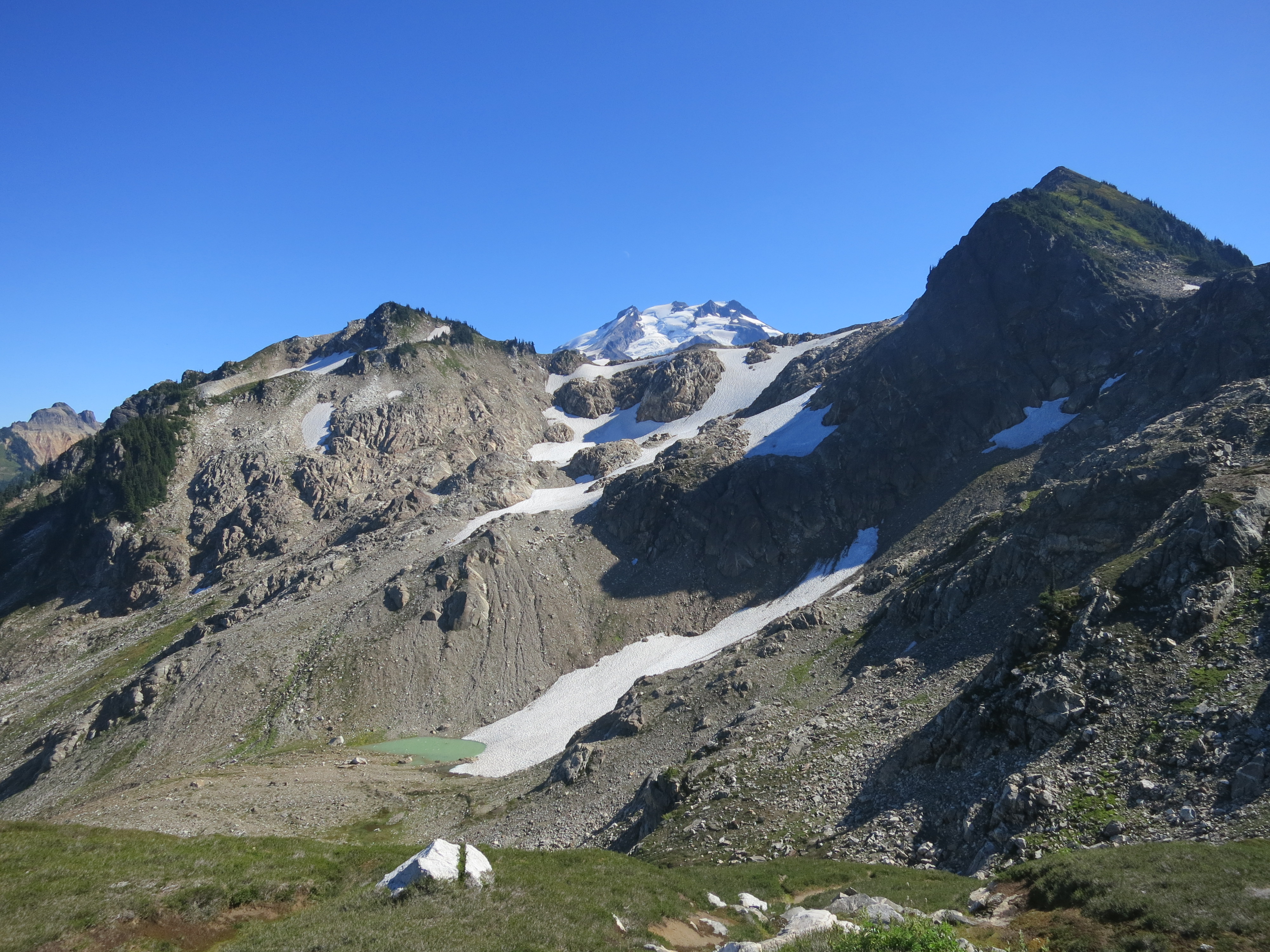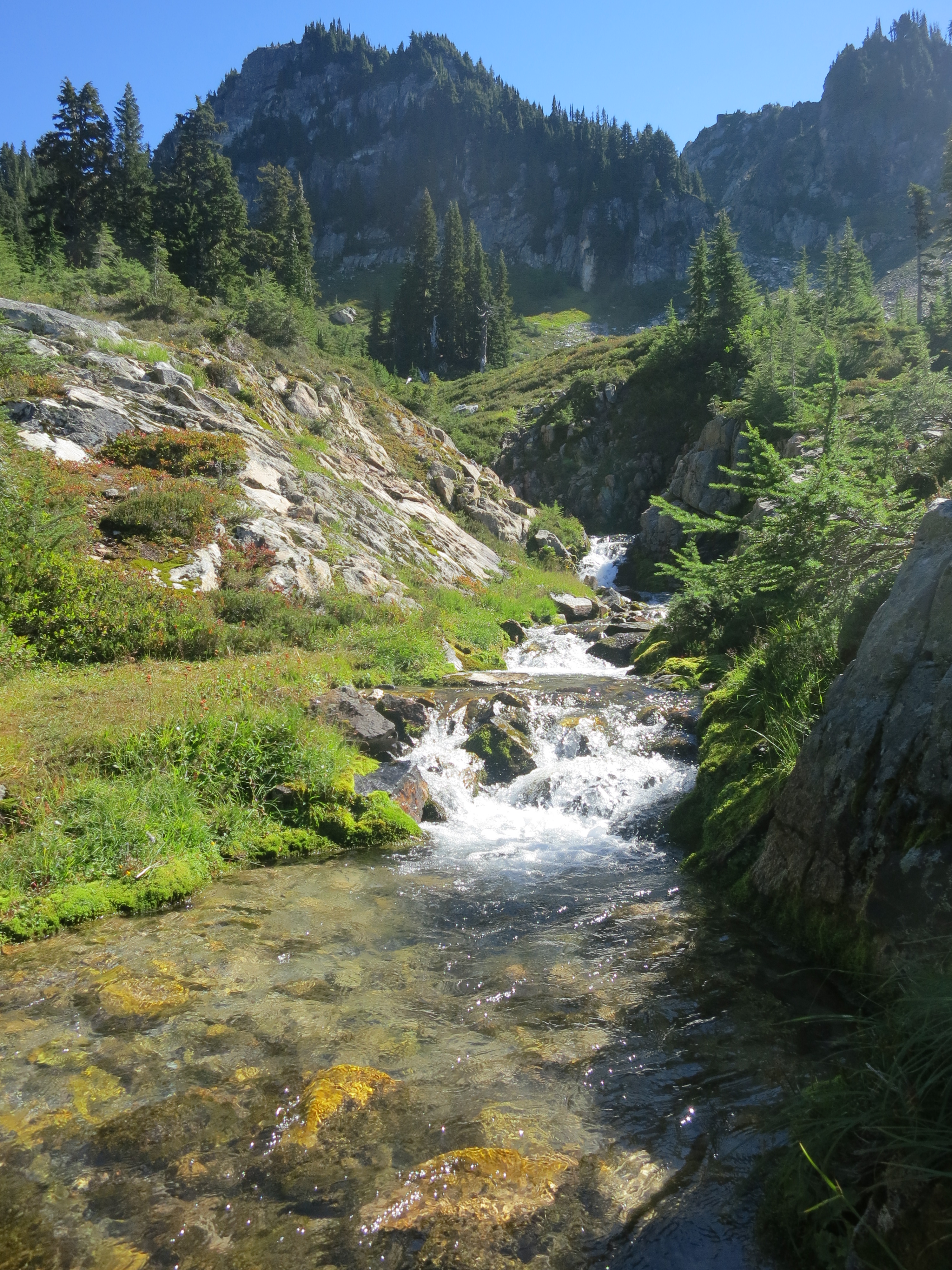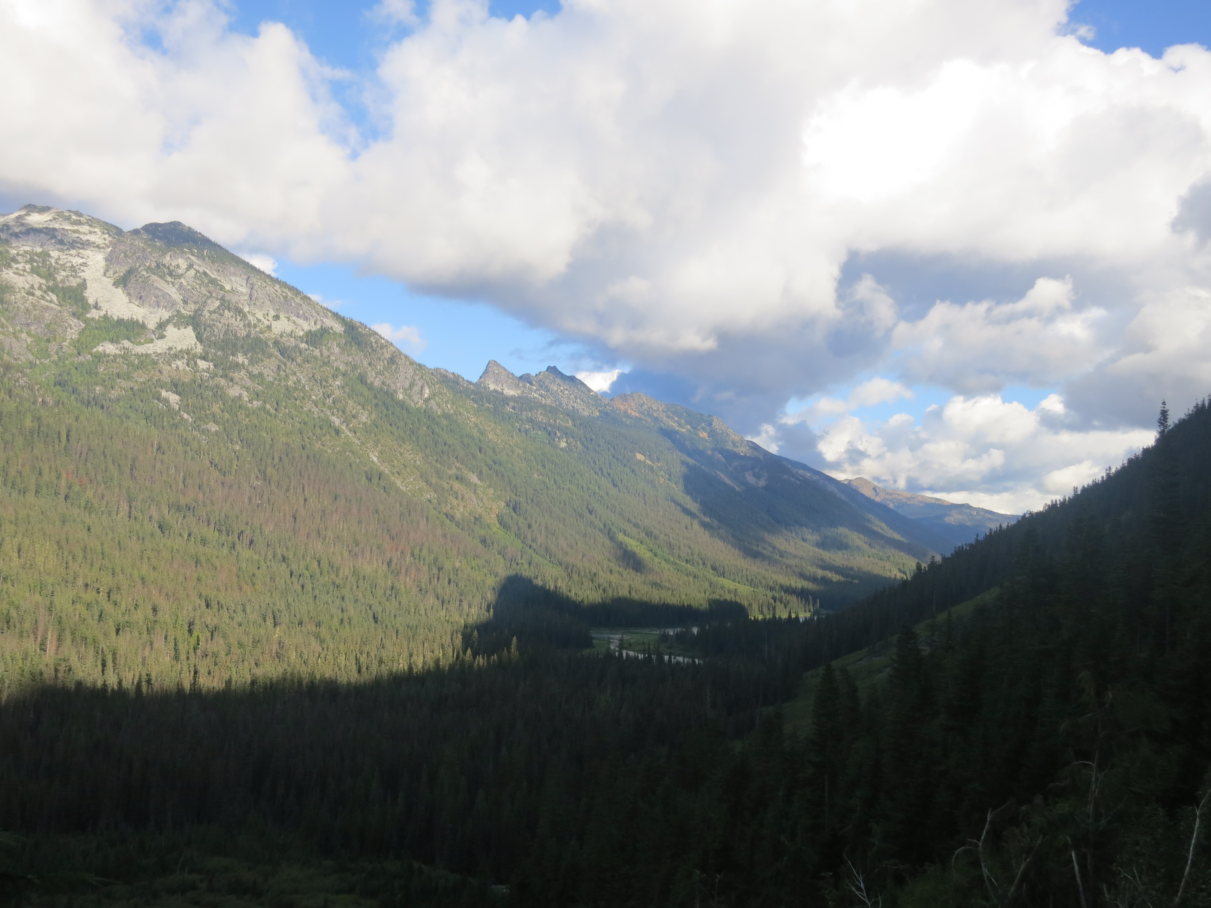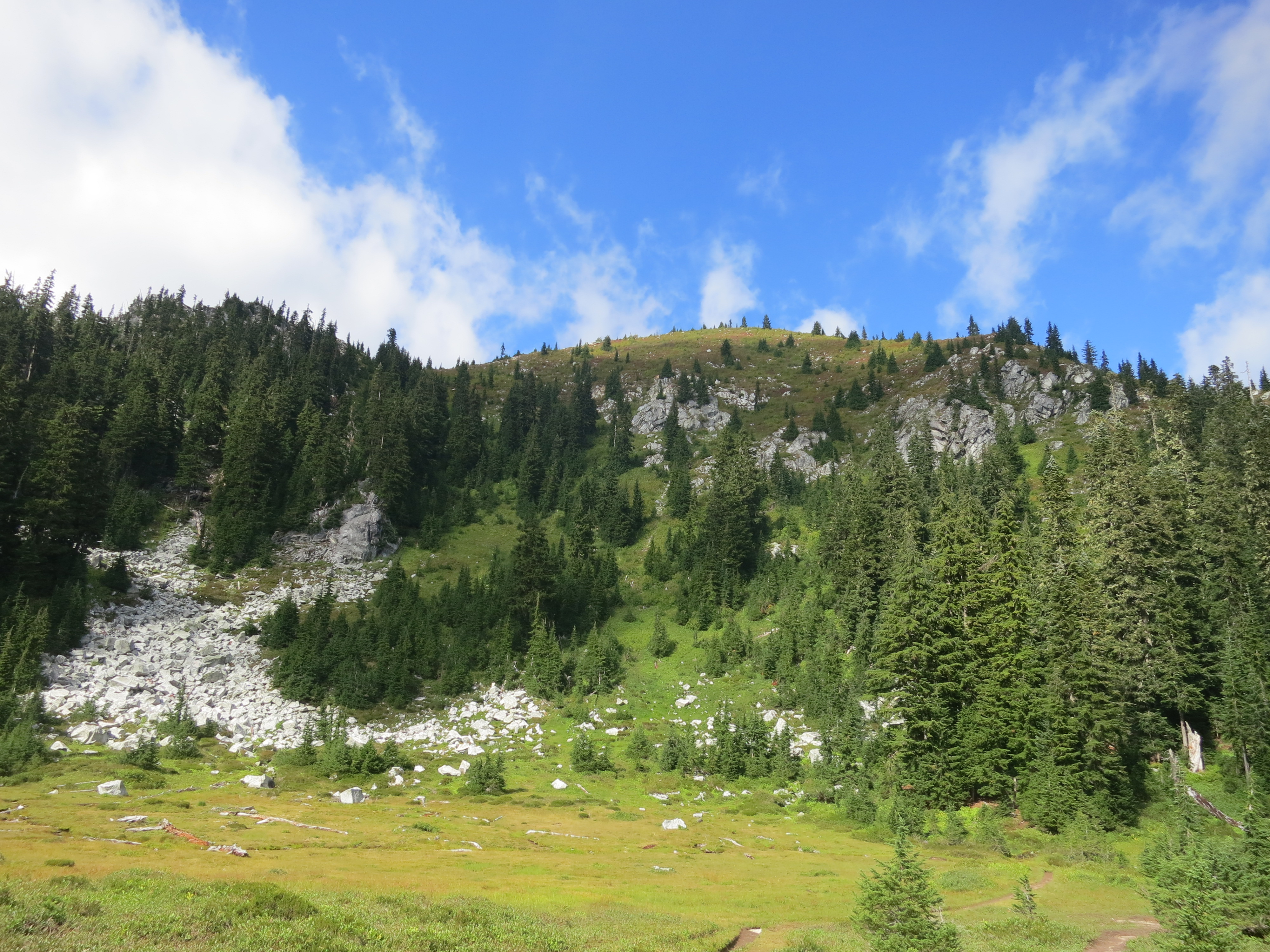 While outside my tent, I noticed some miniature frogs hopping around and was instantly amused. They were the tiniest frogs I had ever seen! I had to take some pictures. I looked up at the sky and noticed the clouds coming in. They weren’t looking so good… I joined Inger in front of her tent and realized that she was the hiker that had waved to me the night before. She had come out here to hike the Washington part of the PCT. She had planned on hiking with a friend, but she had backed out at the last minute. It was probably for the best, as the friend had never backpacked before and got stressed extremely easily. Inger said she wouldn’t have been able to deal with the fact that there was no water at the last source. She talked about a section of the trail in northern Washington that had been washed out due to some heavy storms earlier in the month and it took me awhile to realize that this had happened this year! It was the first I had heard of this situation. She said she had watched a video of a hiker’s sleeping bag roll down the mountain in that section and terrifying accounts of people trying to get through it. There had been a call put out for trail crews to come out and work on it, but she didn’t know the current state of it. A highway near the area had also been shut down! I learned that Inger was originally from Norway and that she owned an independent travel agency.