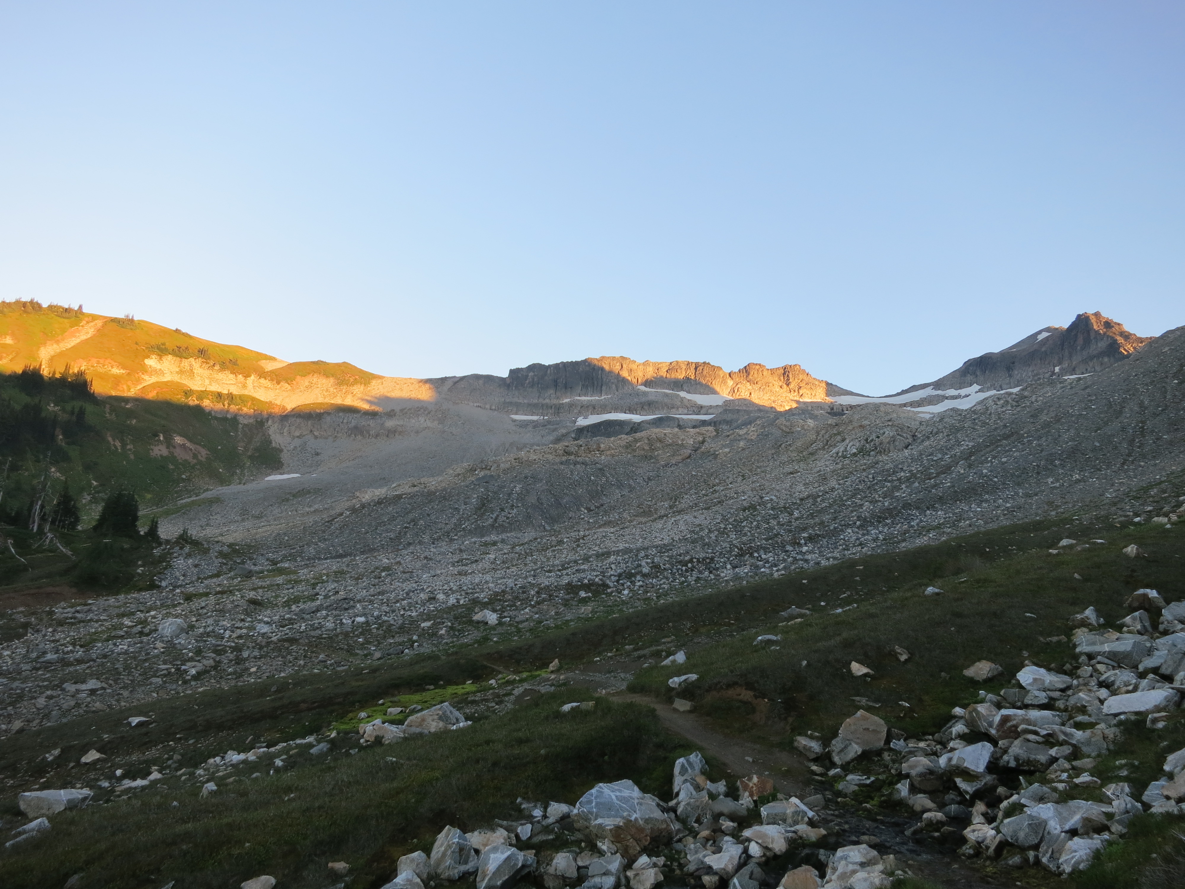 She mentioned the lack of water at the last spring and that she had planned on collecting water from there. Her guidebook had made it seem as if it was a sure source. Mine did, as well! I told her that I was carrying a lot and offered her some of mine, but she declined. She said she would just have to hike to Sheep Lake. I knew that that would take her into the night…